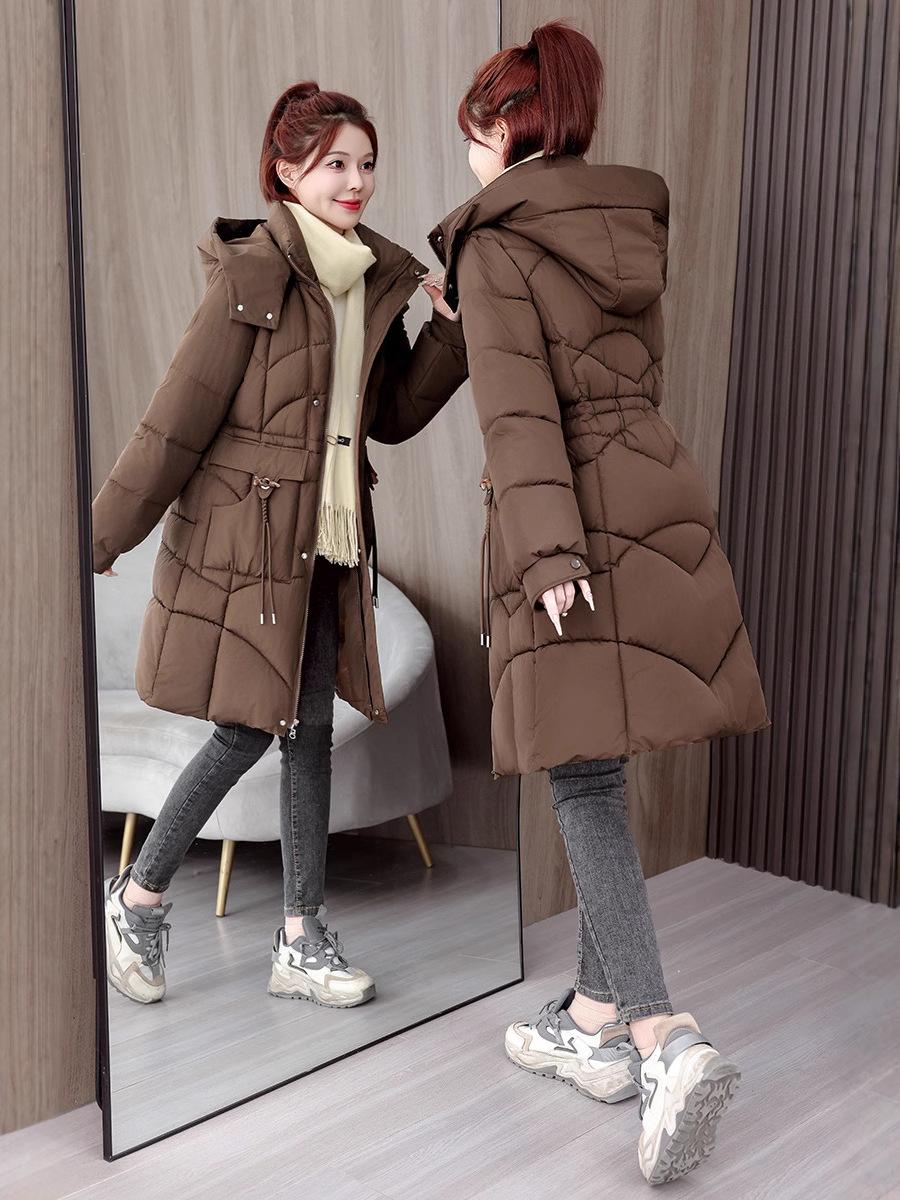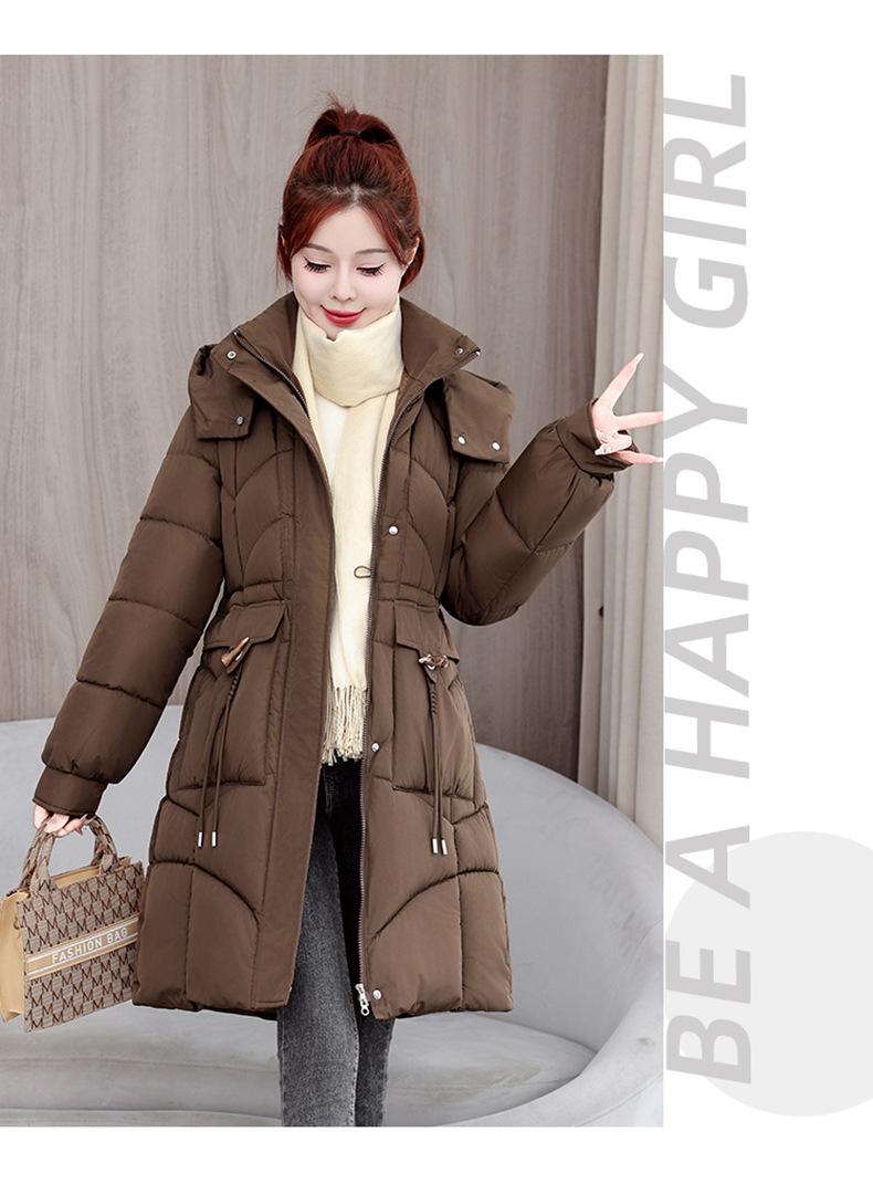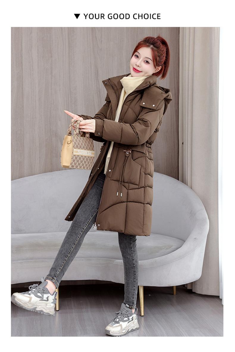 Abrigo de Algodón para Mujer 2025 Invierno Nuevo Abrigo de Algodón para Mujer Casual Largo Medio Cintura Engrosado Cálido Abrigo de Algodón Chaqueta Europea y Americana