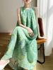 Vestido Satén Cuello Redondo Tirantes Sin Mangas Mujer 2025 Verano Nuevo Corte Borla Diseño Suelto Falda Larga