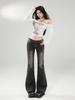 Jeans microacampanados elásticos negro-gris mujer otoño 2025 tiro bajo alta gama American spicy girl pantalones acampanados
