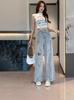 Diseño de Primavera y Verano Jeans Vintage con Cordones Desgastados para Mujer 2025 Cintura Alta Lavados Rectos Pierna Ancha Venta al por Mayor
