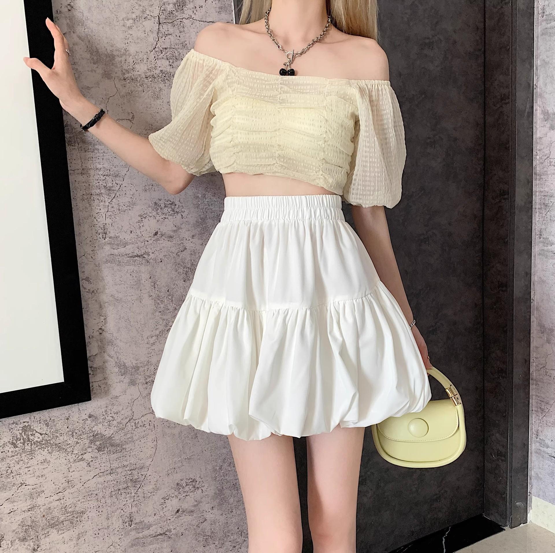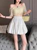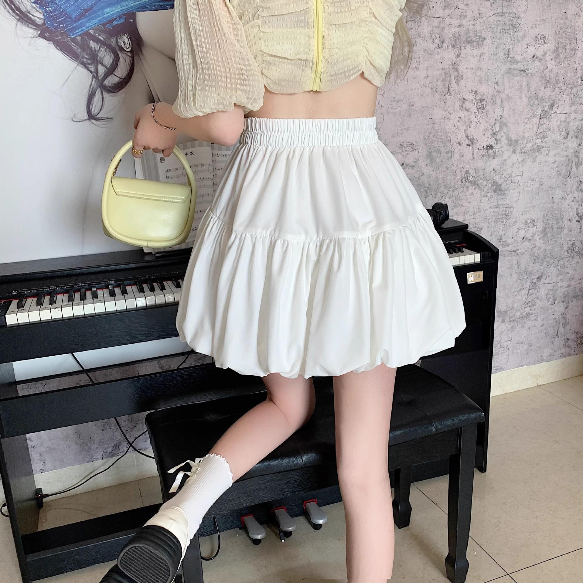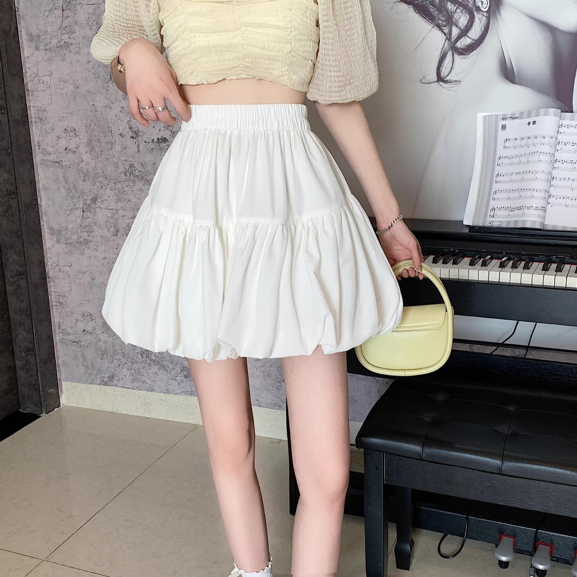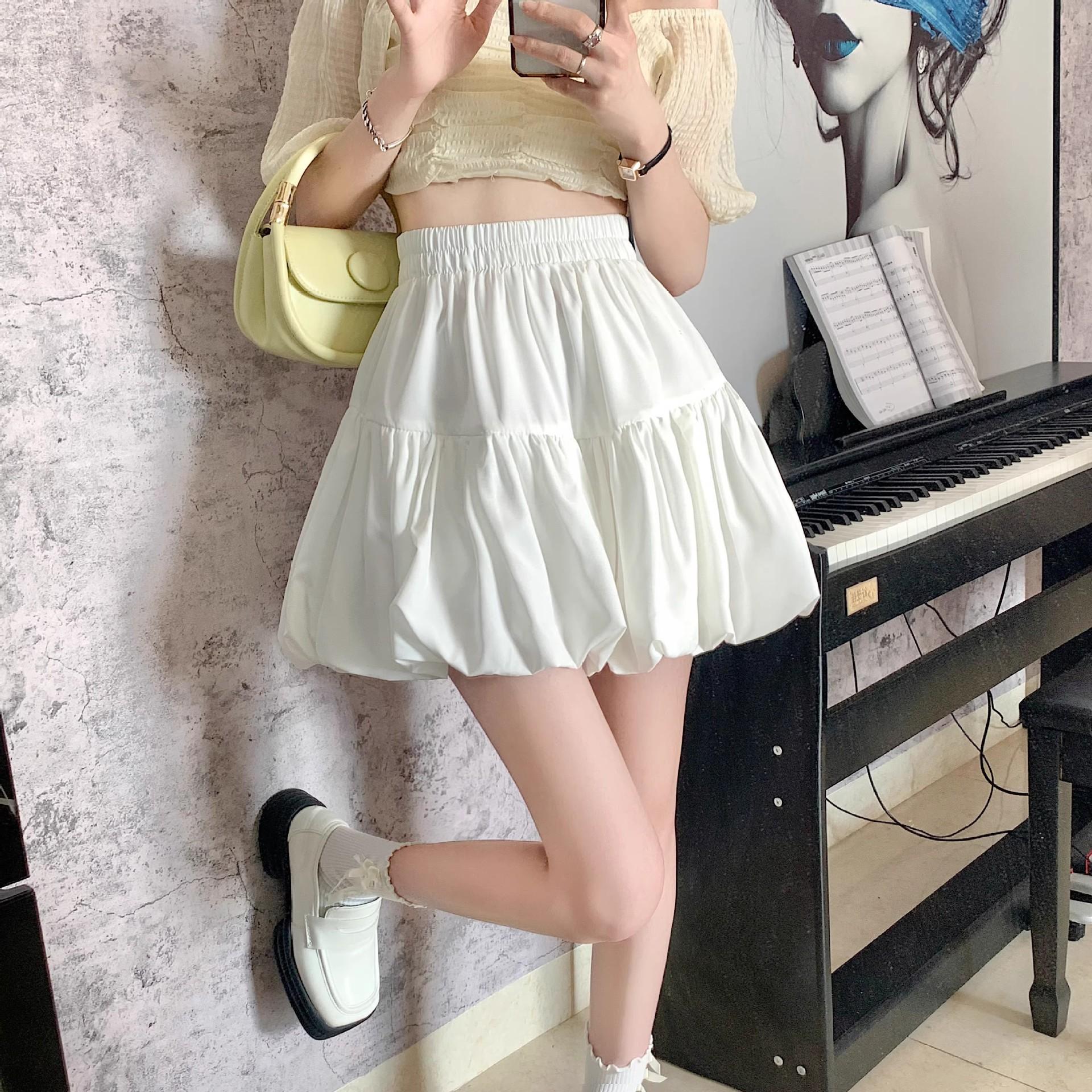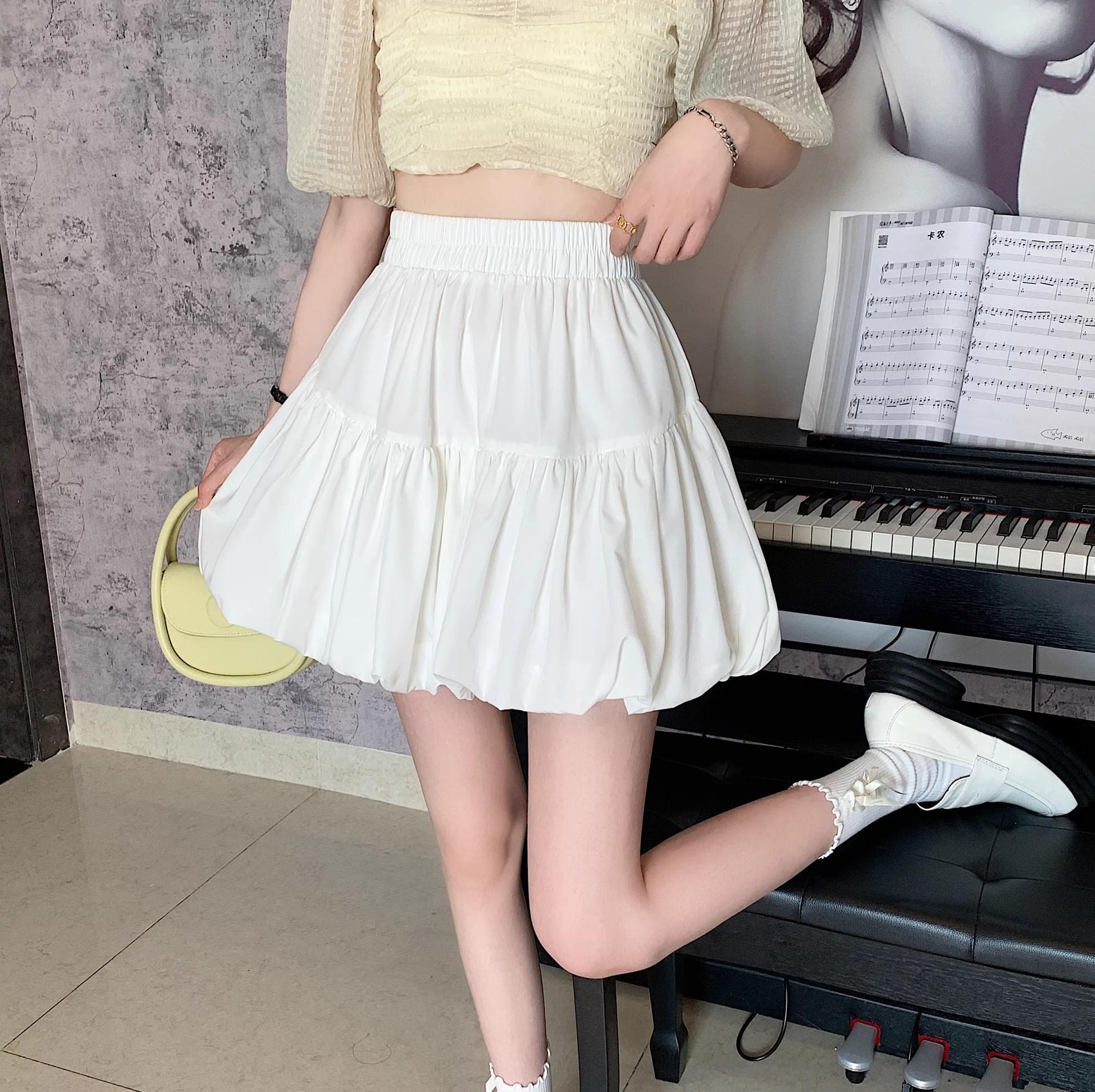 Falda Midi Dulce Blanca Plisada Talla Grande A-line Ajustada a la Cadera para Mujer Verano Gordita MM Cintura Alta Adelgazante Esponjosa Tulipán Corta