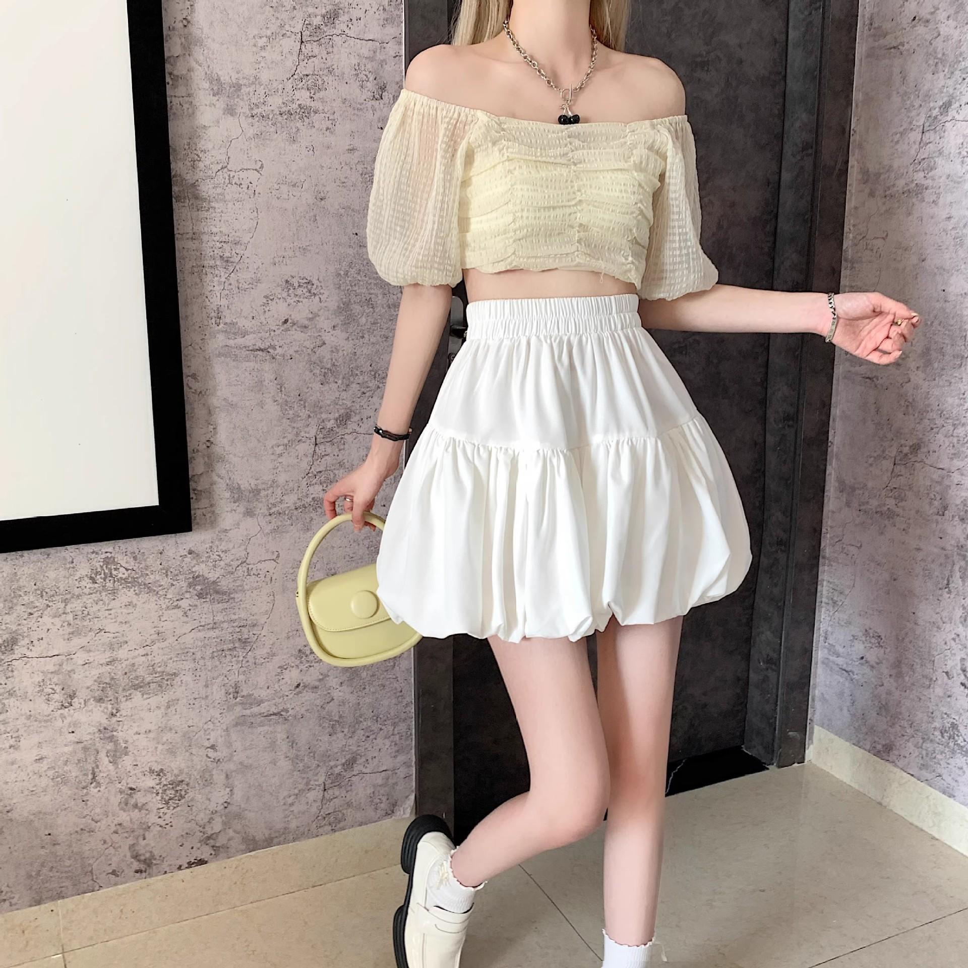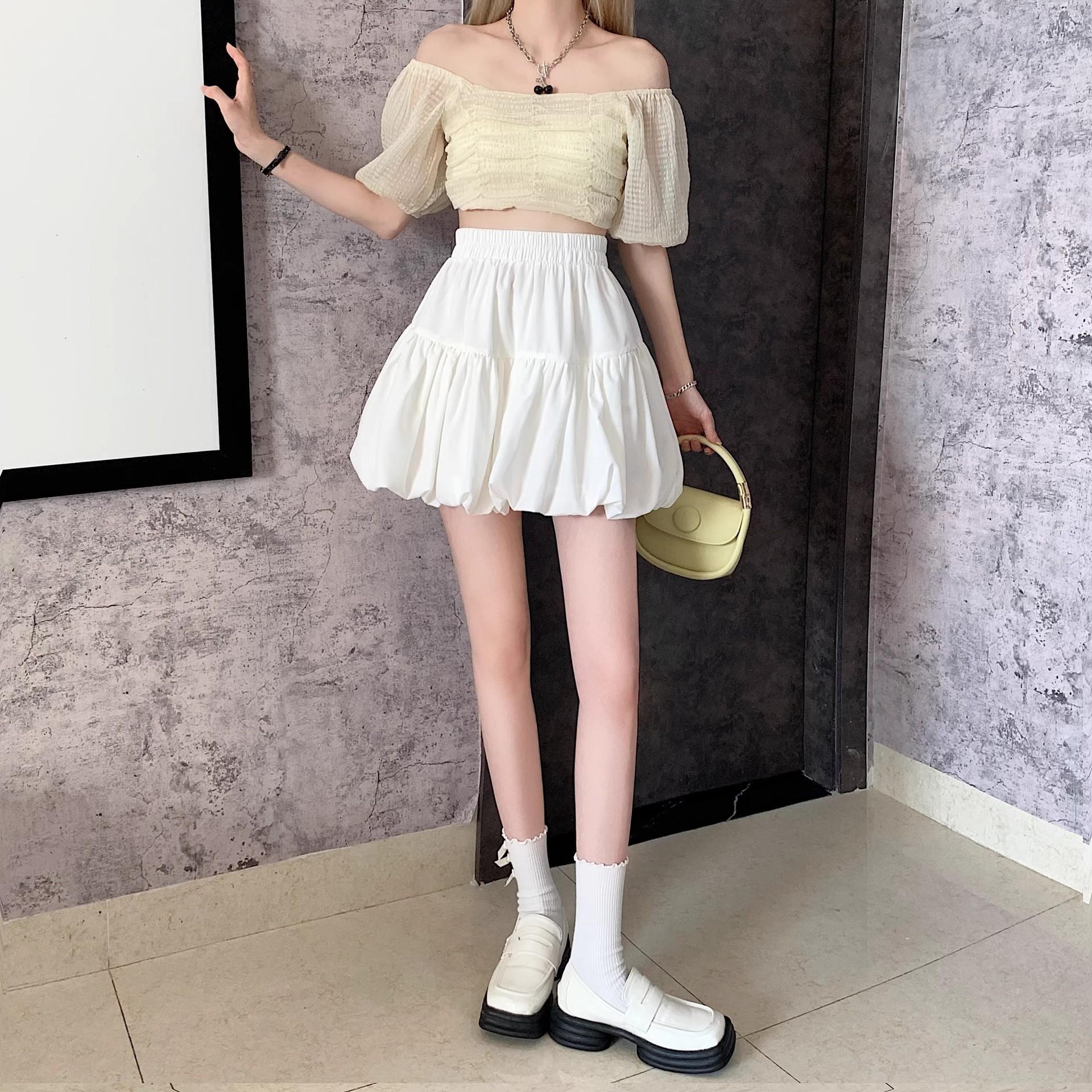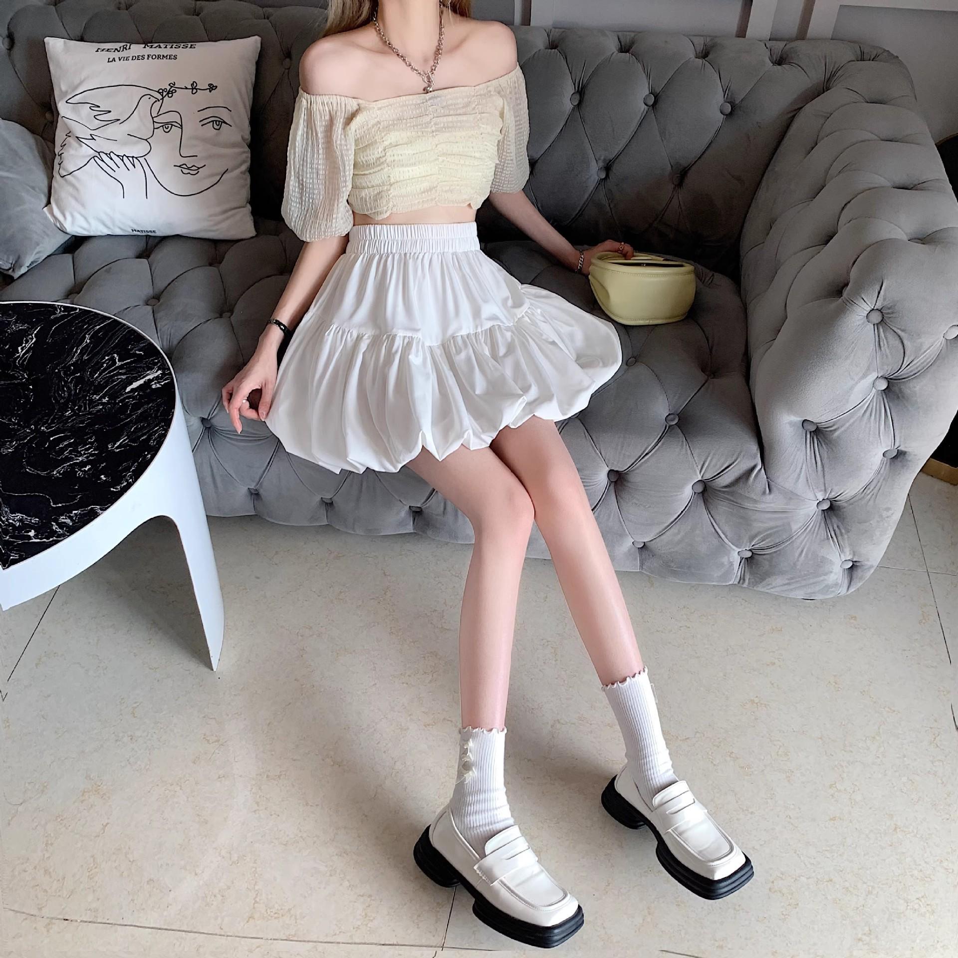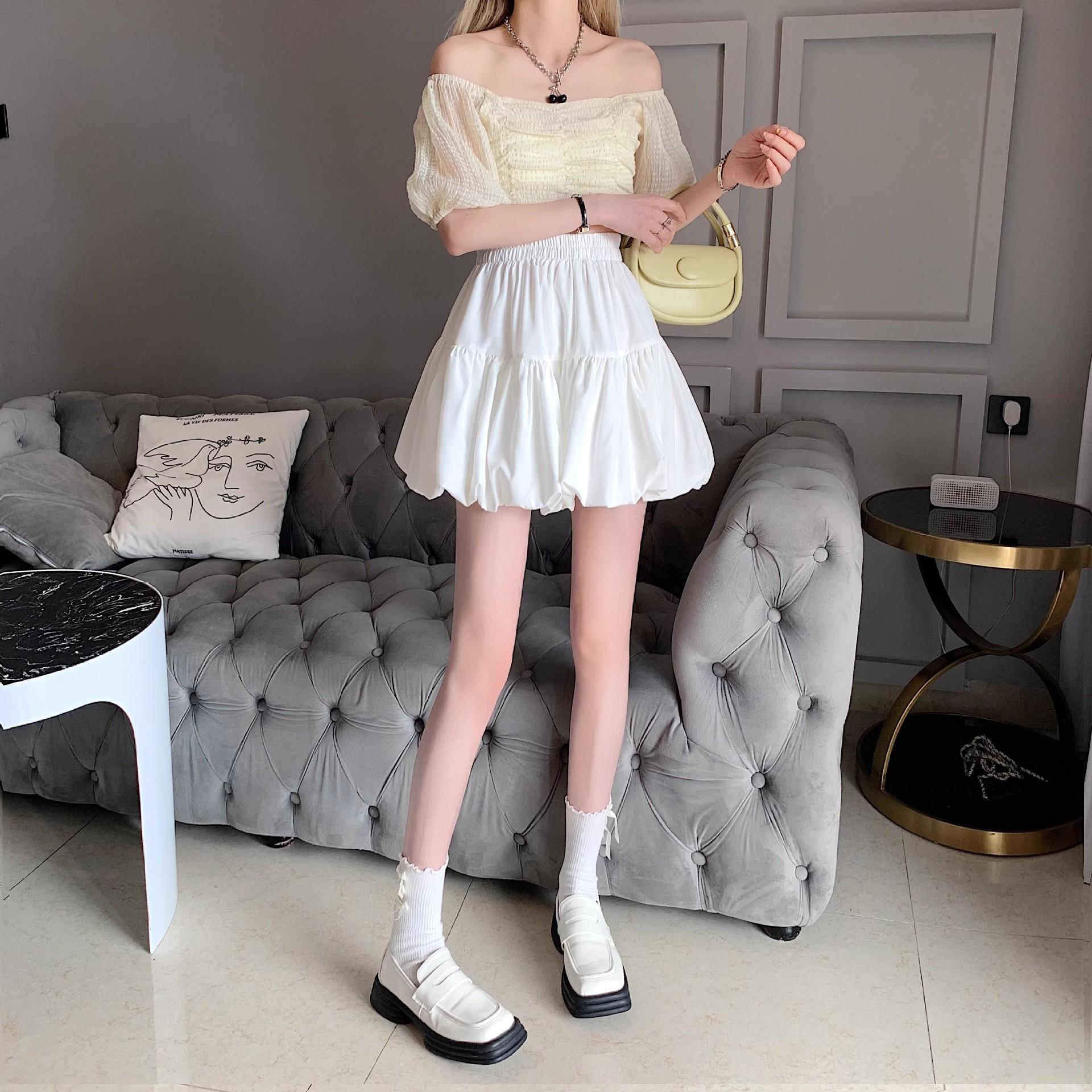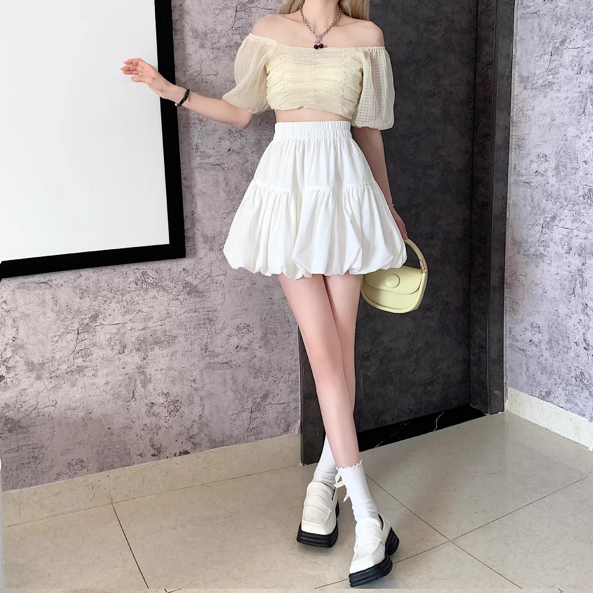 Falda Midi Dulce Blanca Plisada Talla Grande A-line Ajustada a la Cadera para Mujer Verano Gordita MM Cintura Alta Adelgazante Esponjosa Tulipán Corta