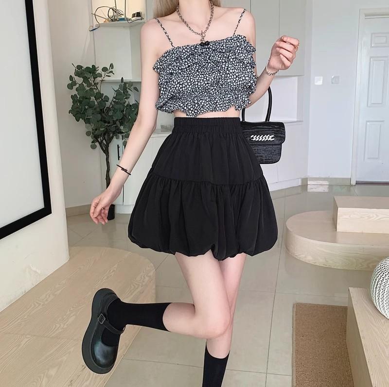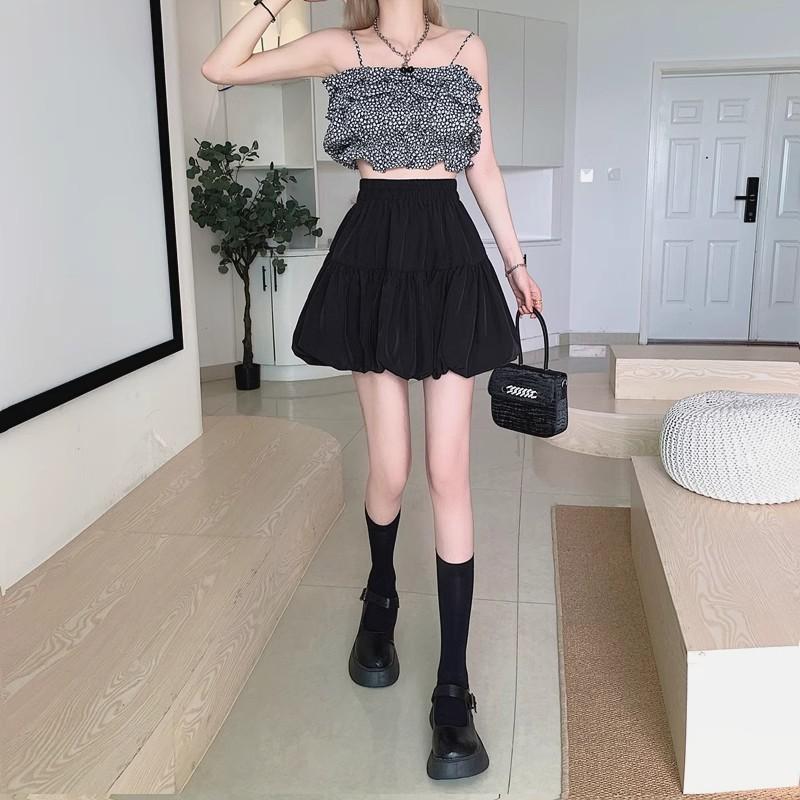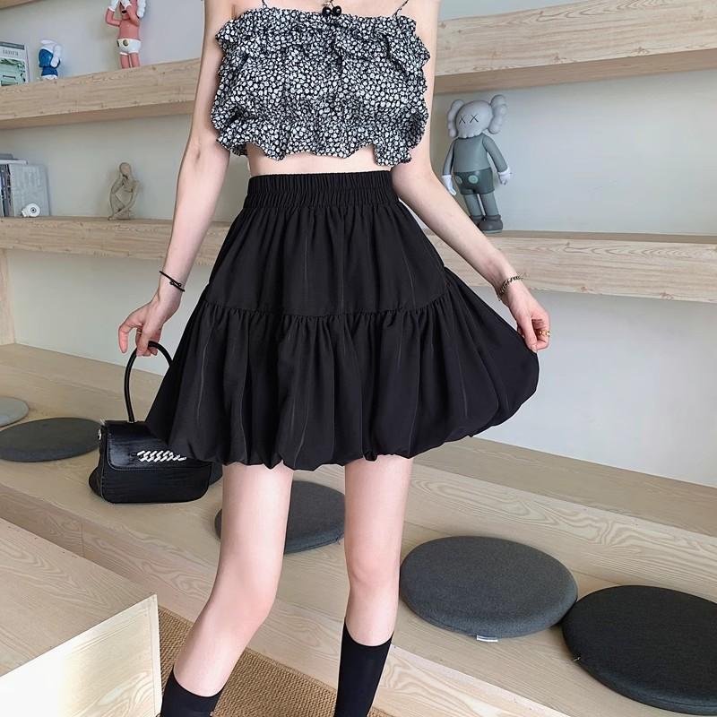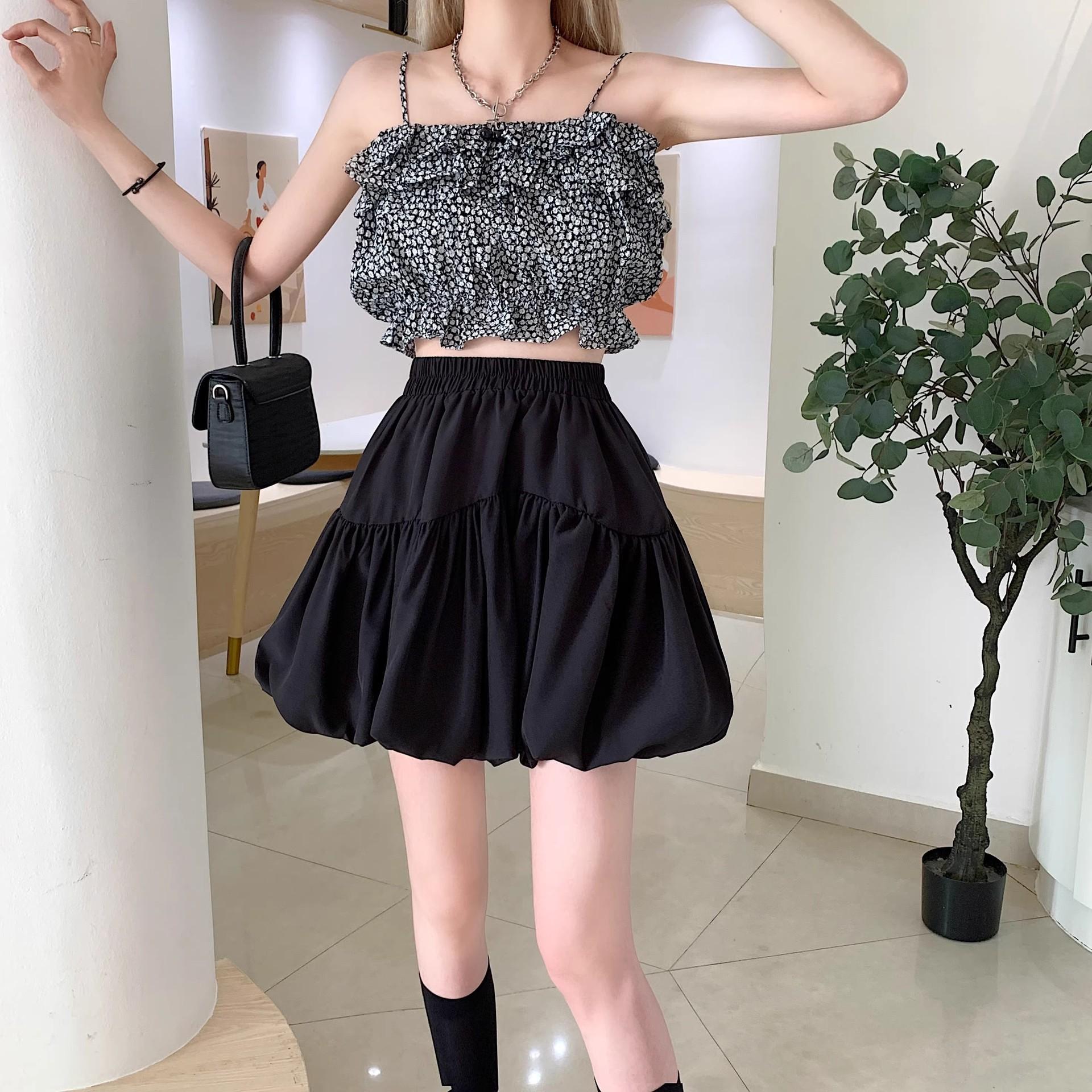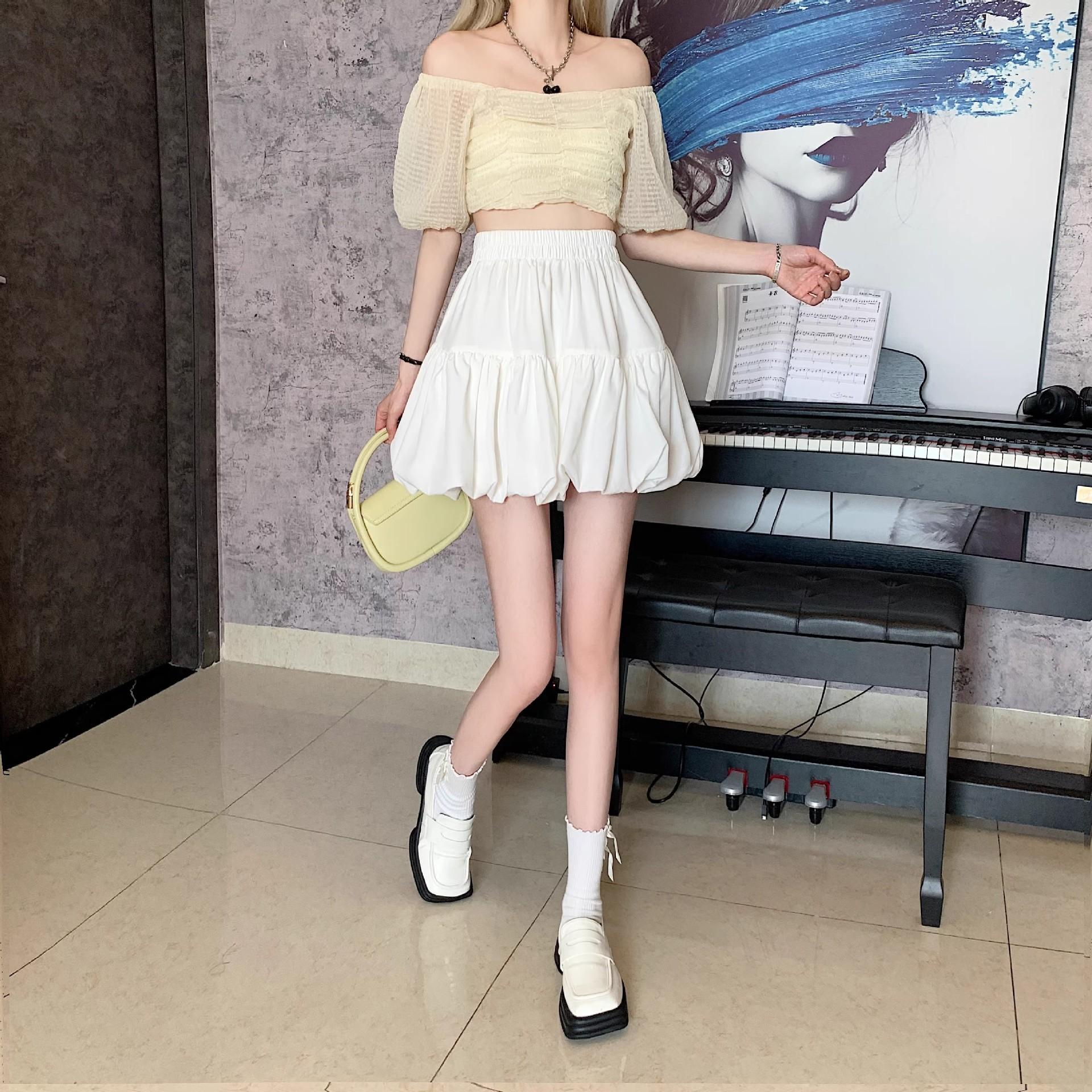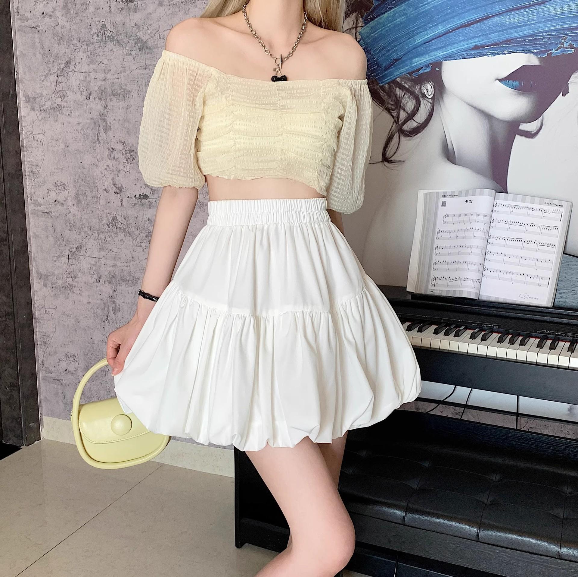 Falda Midi Dulce Blanca Plisada Talla Grande A-line Ajustada a la Cadera para Mujer Verano Gordita MM Cintura Alta Adelgazante Esponjosa Tulipán Corta