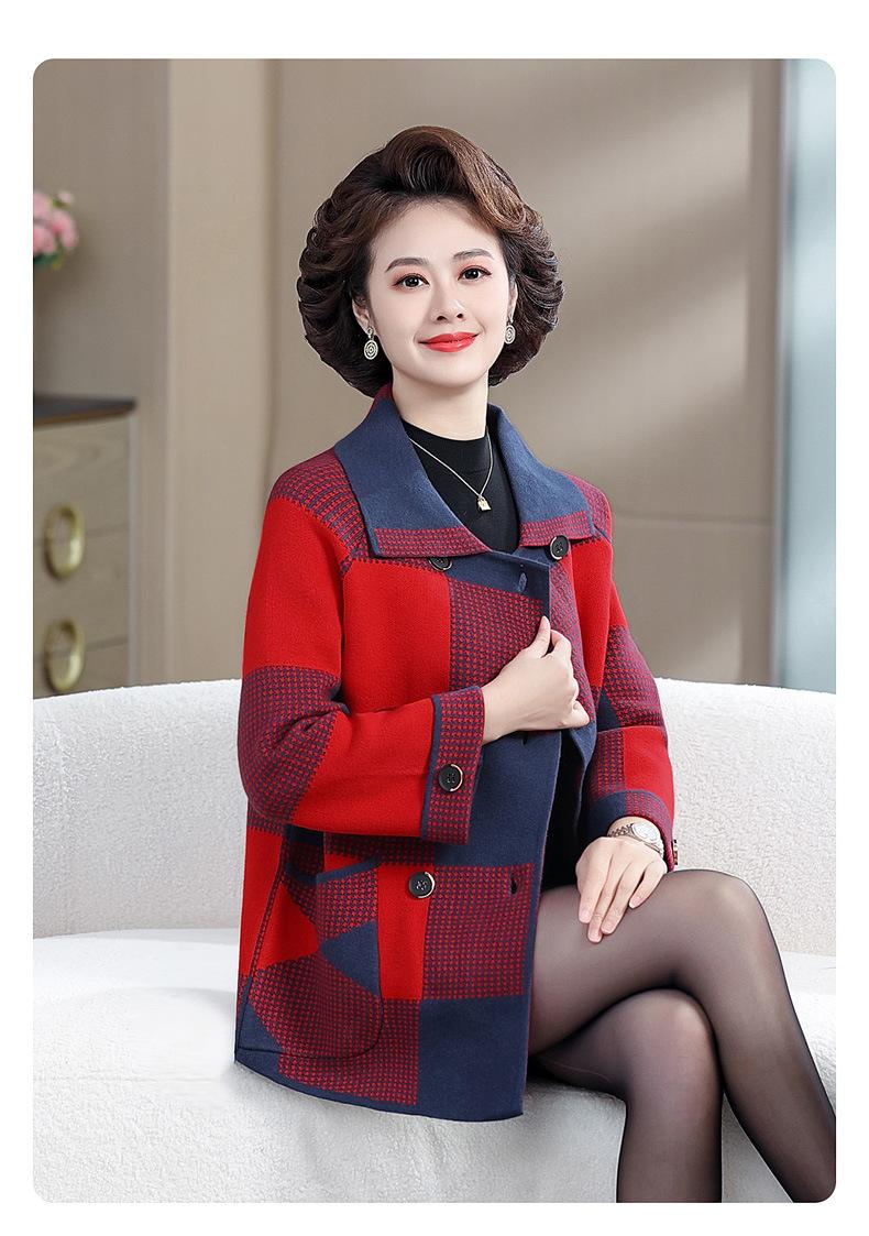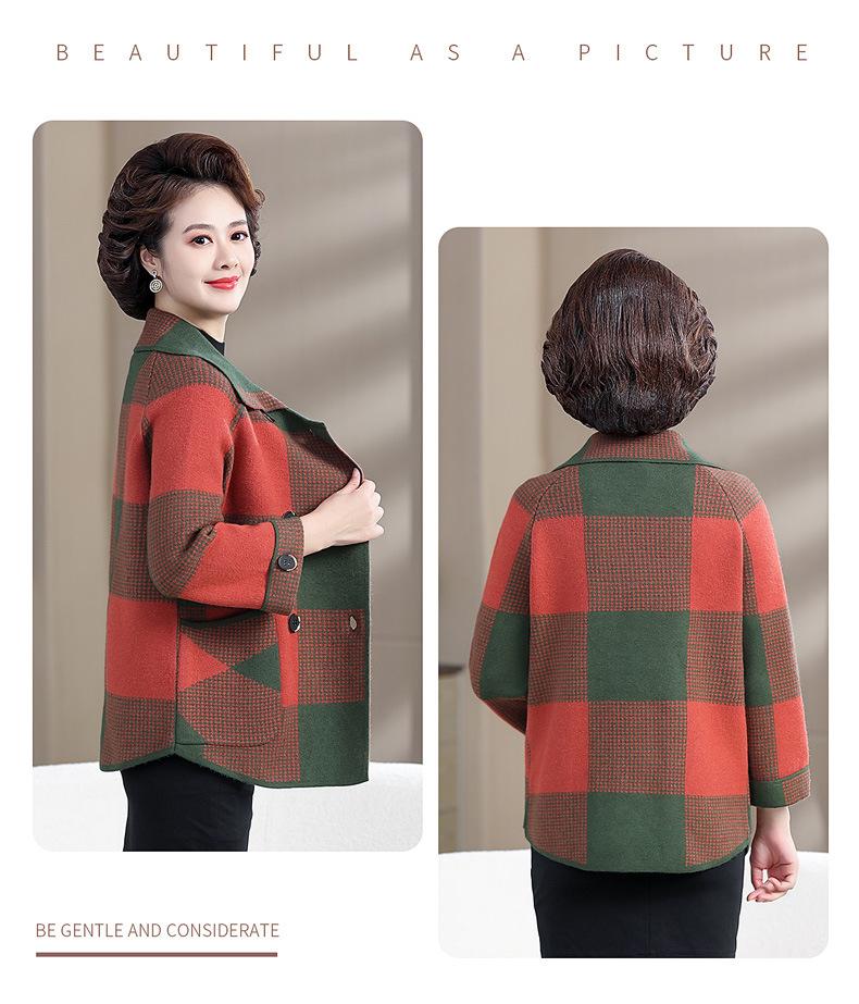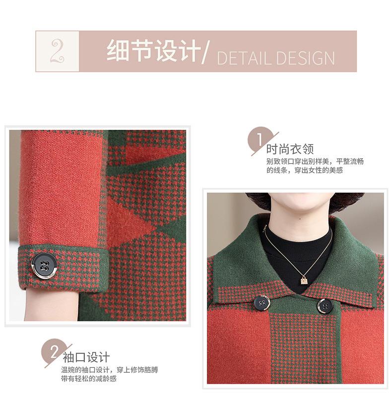 Ropa de Mamá Primavera, Otoño e Invierno Nuevo Estilo Cárdigan de Punto de Mediana Edad Suéter Holgado Versátil Estilo Extranjero Chaqueta Elegante Gruesa