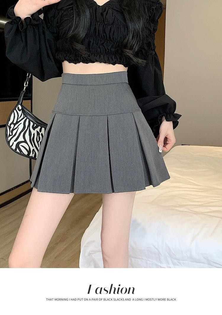 Falda Plisada Gris para Mujer Primavera y Otoño 2025 Nueva Falda A-Line Anti-Exposición Look Adelgazante Cintura Alta Falda Paraguas Esponjosa