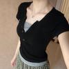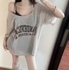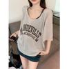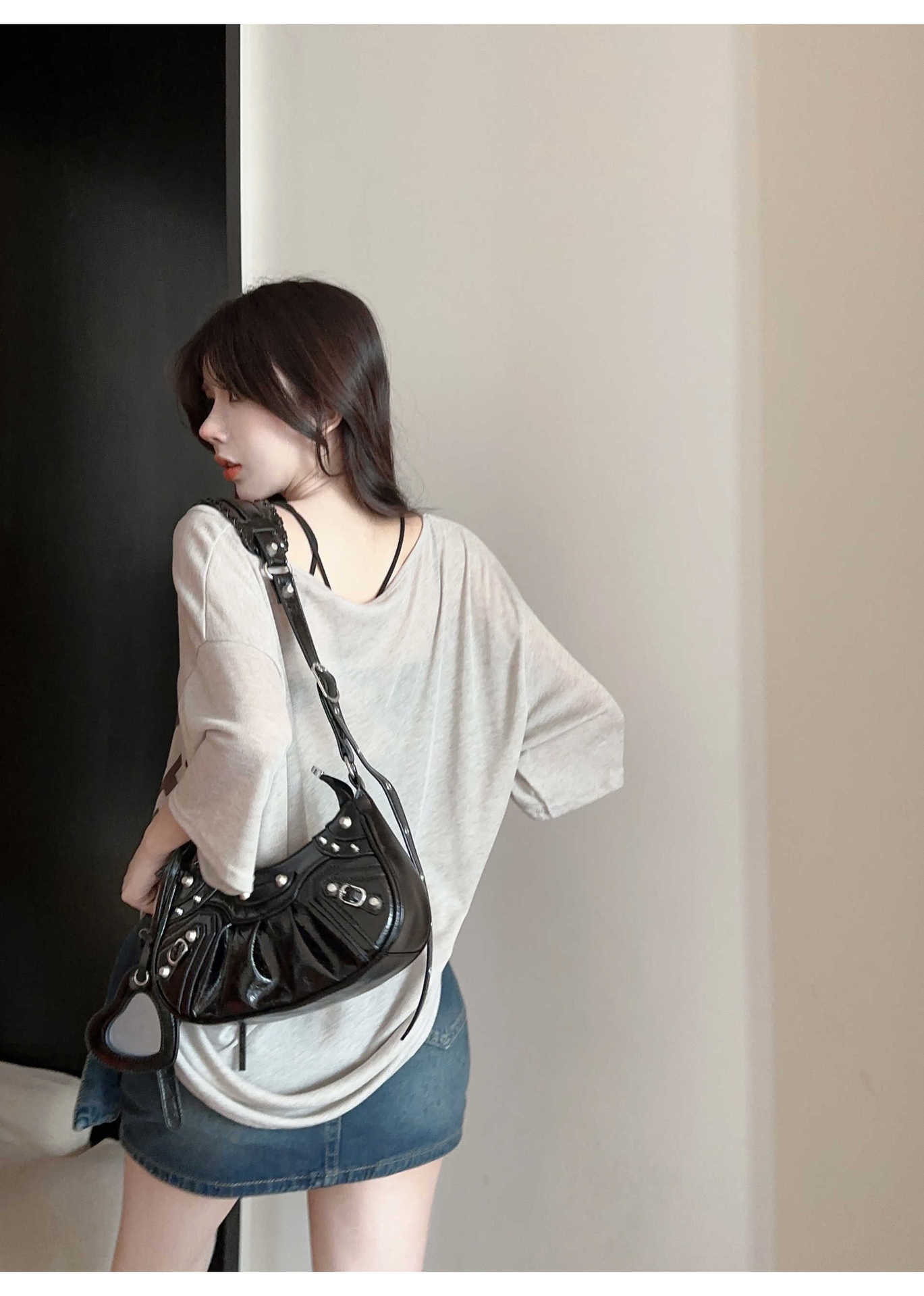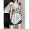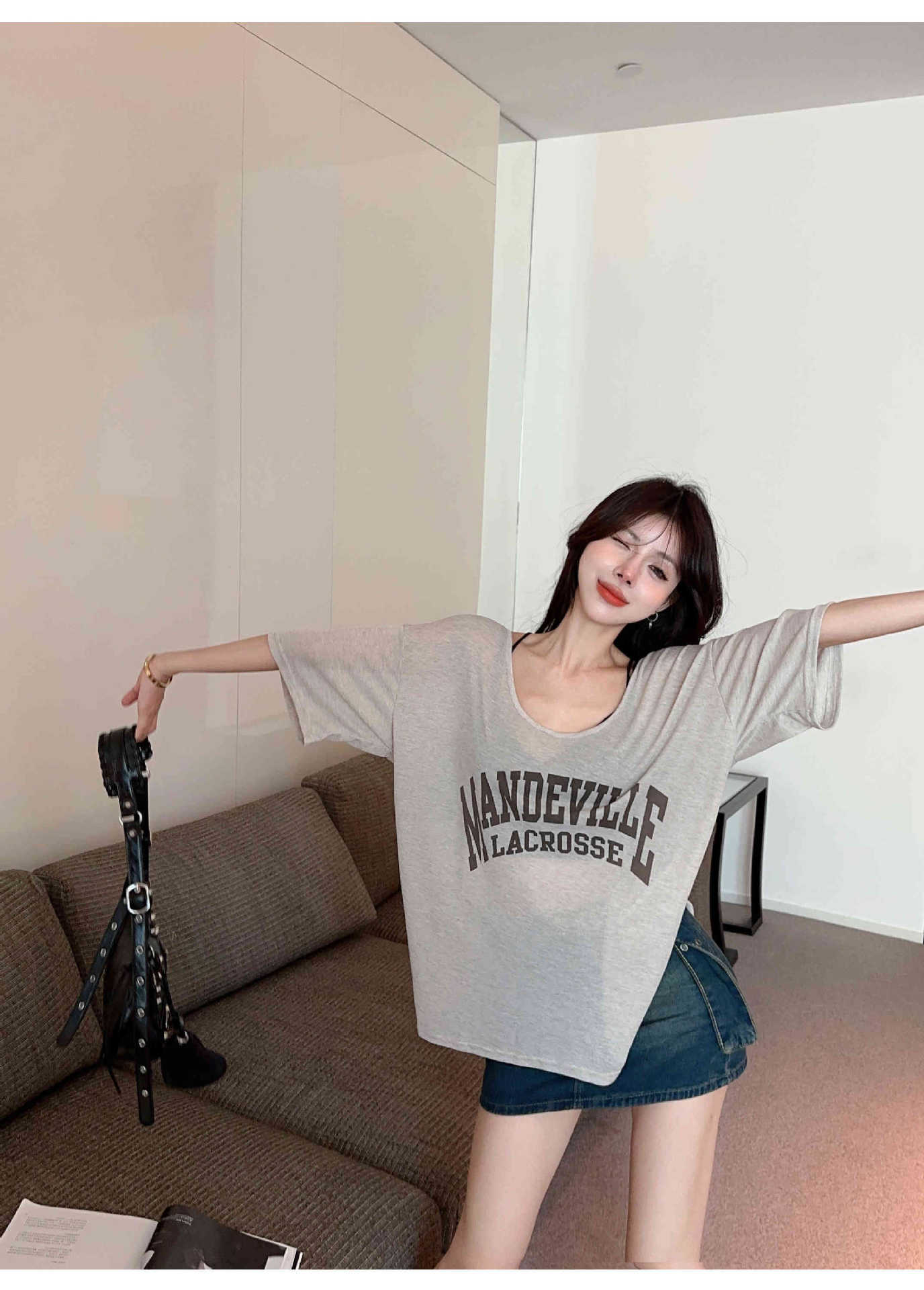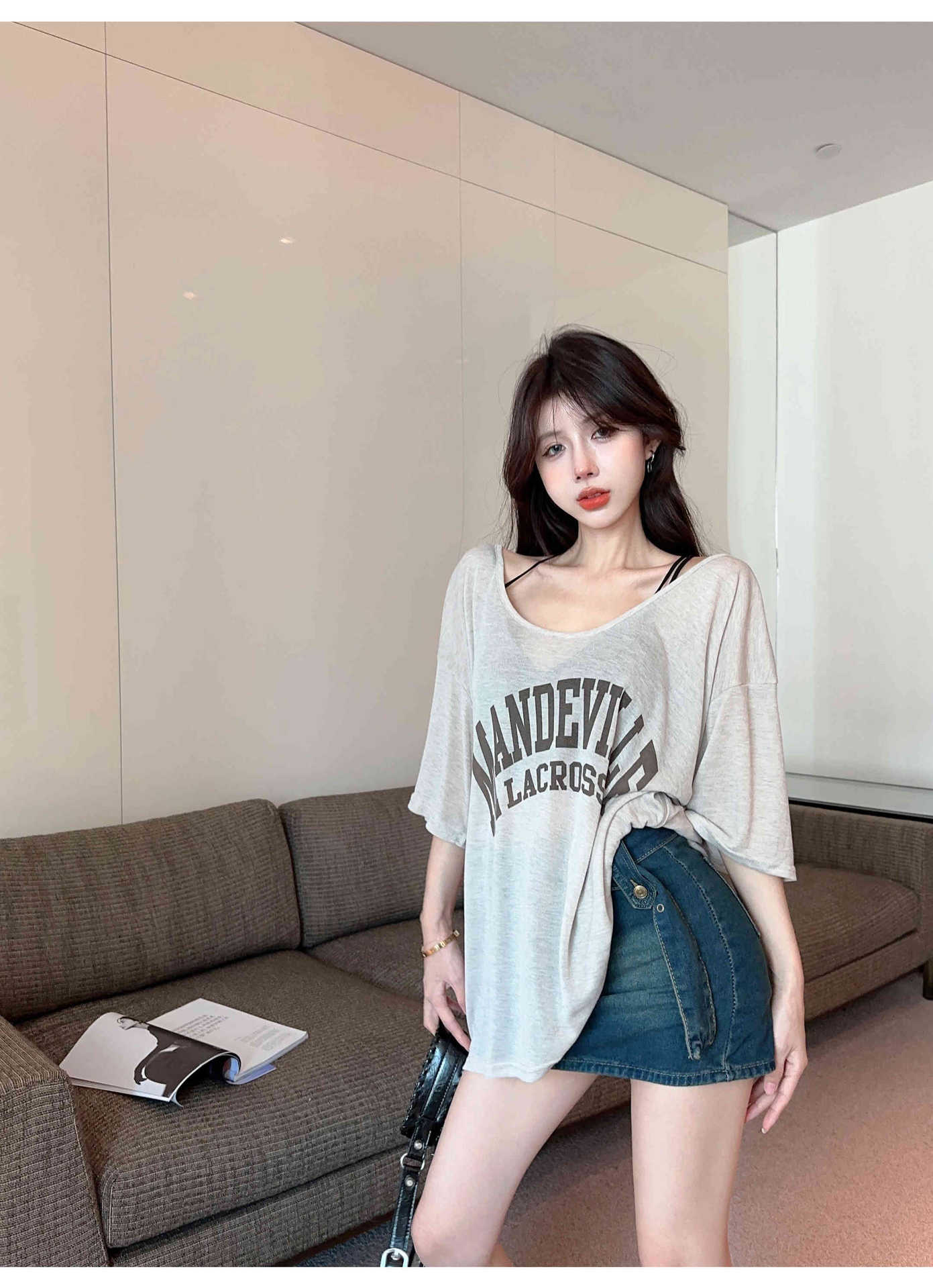Playera de manga corta de dos formas con un hombro descubierto para mujer, estilo coreano, estampada, para cubrirse, verano, nicho, holgada, adelgazante, top de chica hot