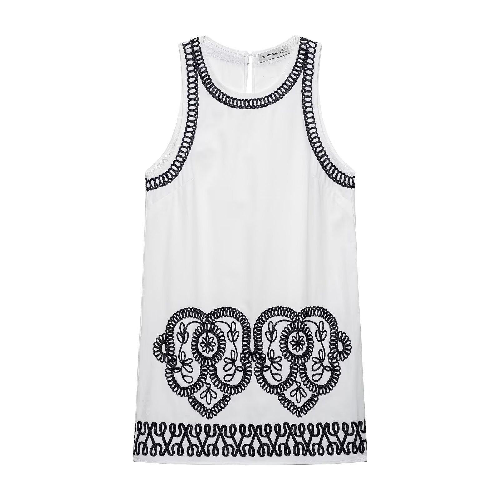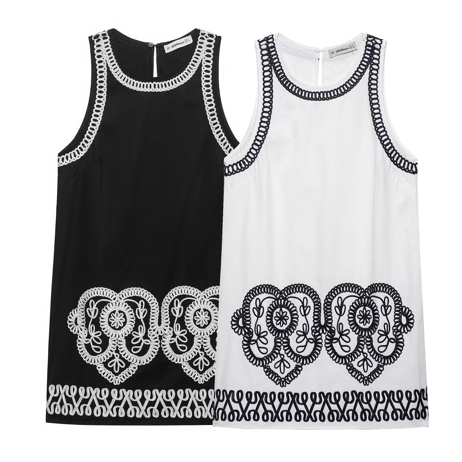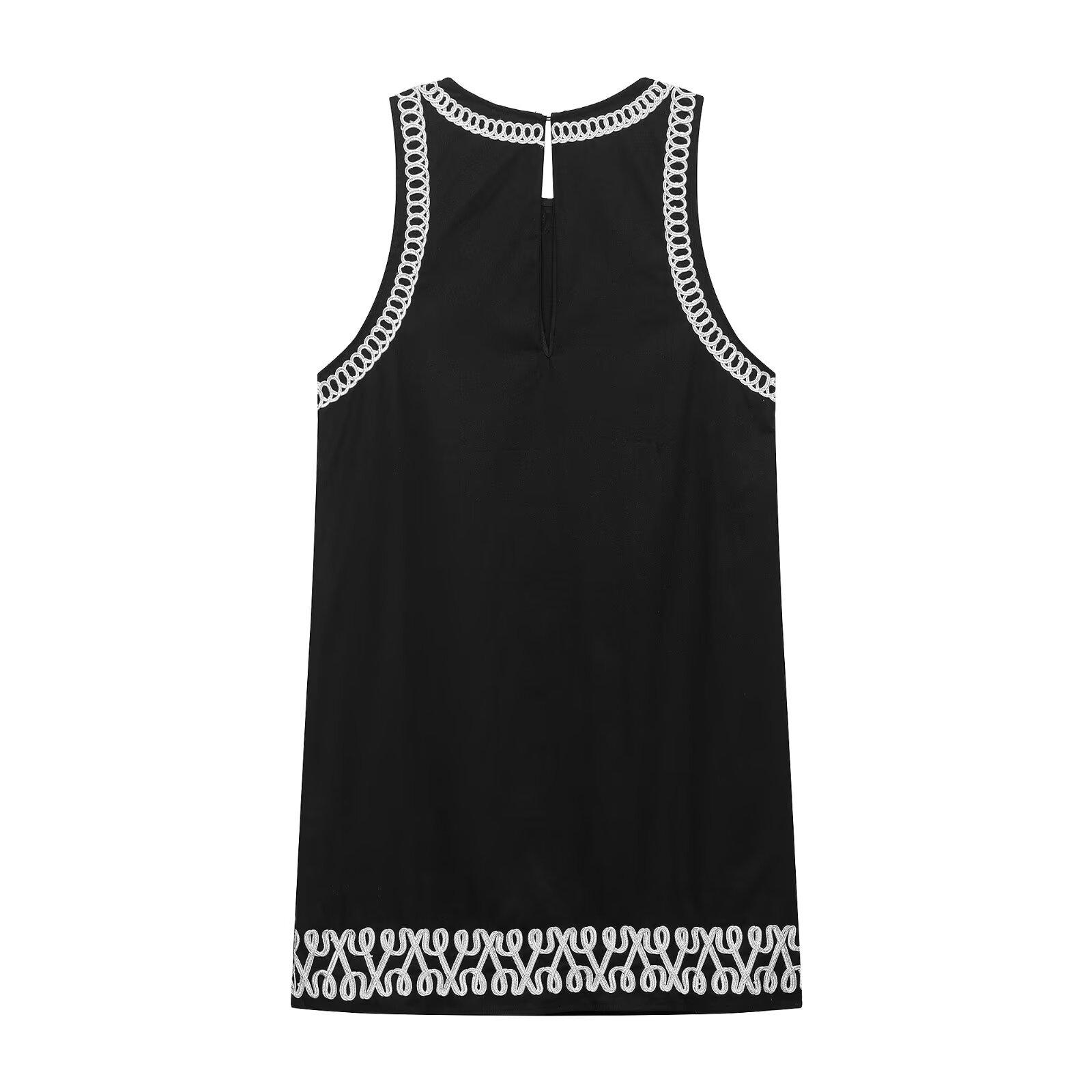 Venta al por mayor de comercio exterior transfronterizo 2025 Verano Nuevo Estilo Europeo y Americano Vestido Chaleco sin Mangas de Cuello Redondo Bordado Retro para Mujer