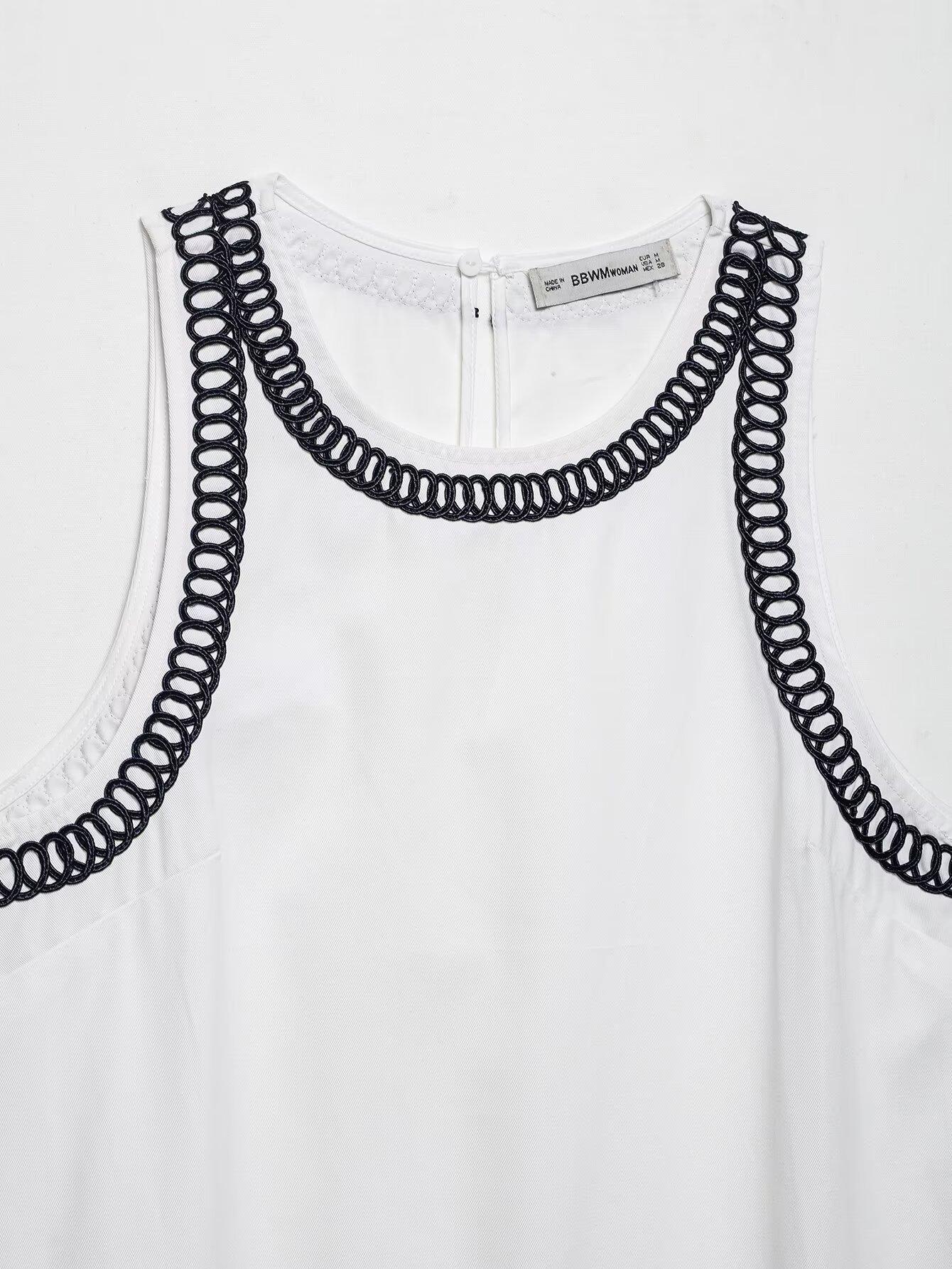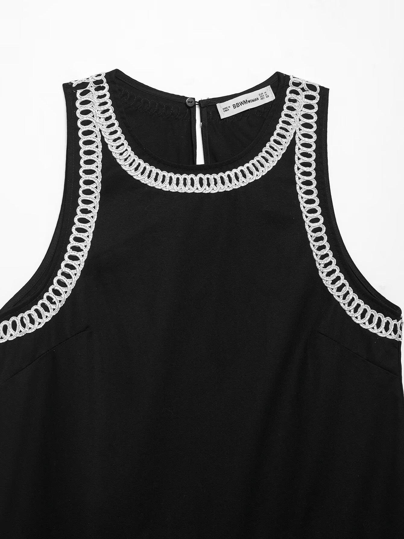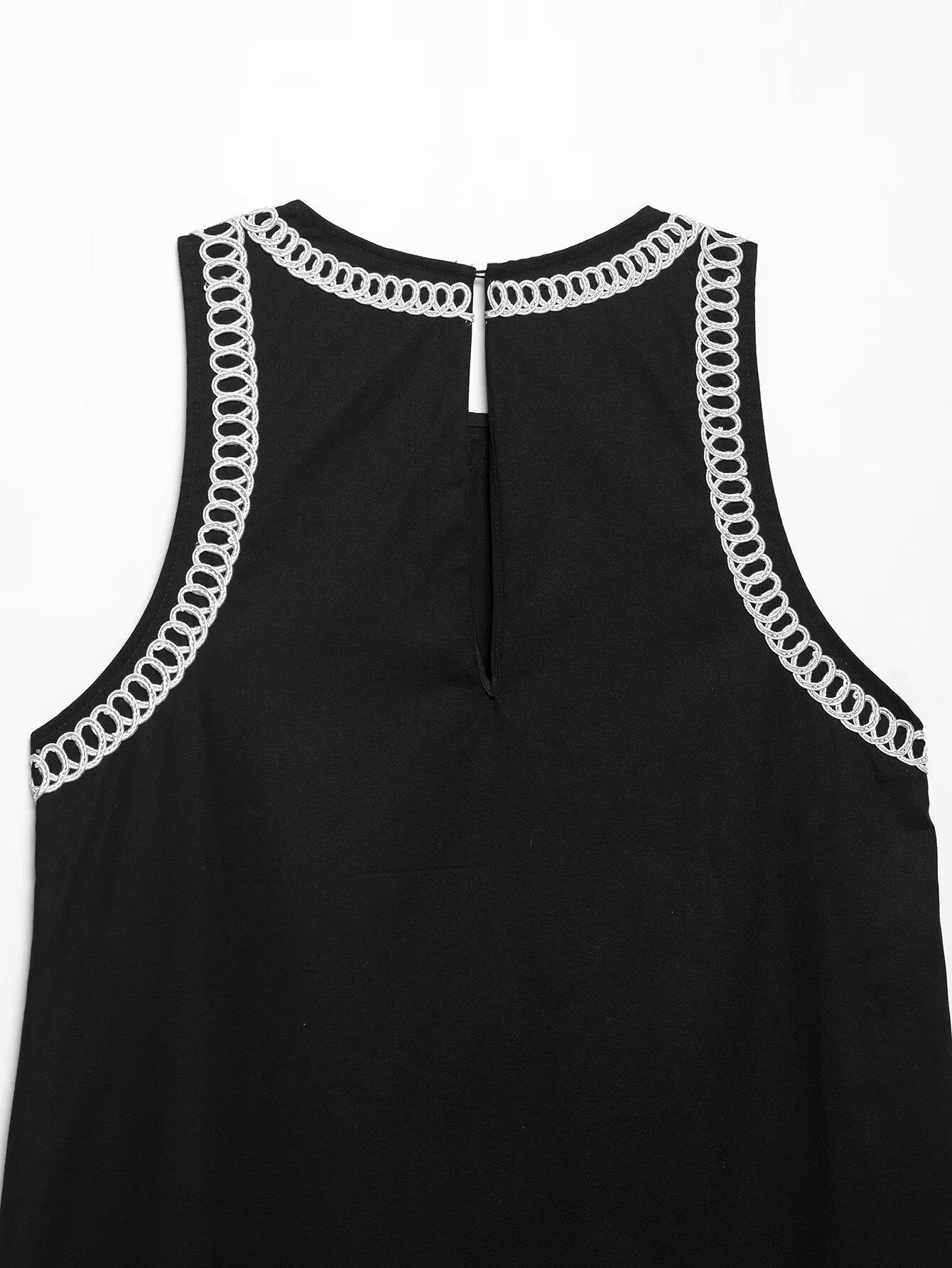 Venta al por mayor de comercio exterior transfronterizo 2025 Verano Nuevo Estilo Europeo y Americano Vestido Chaleco sin Mangas de Cuello Redondo Bordado Retro para Mujer
