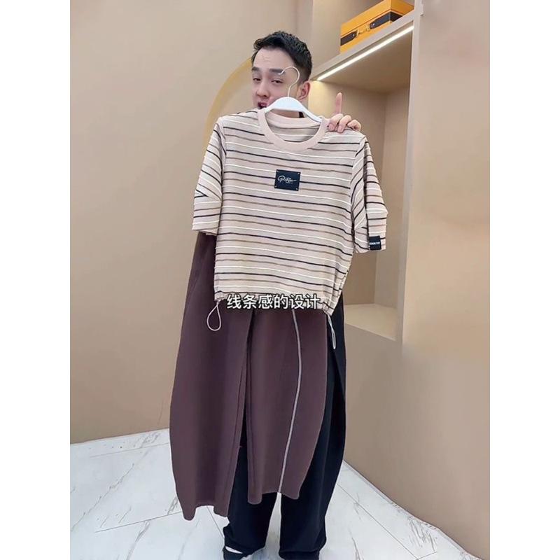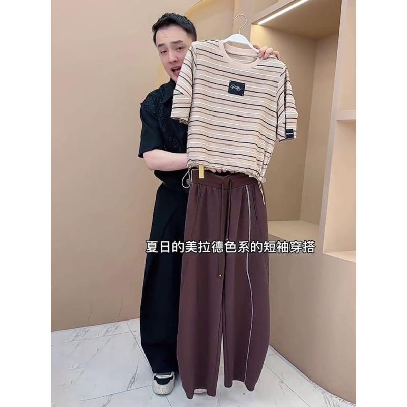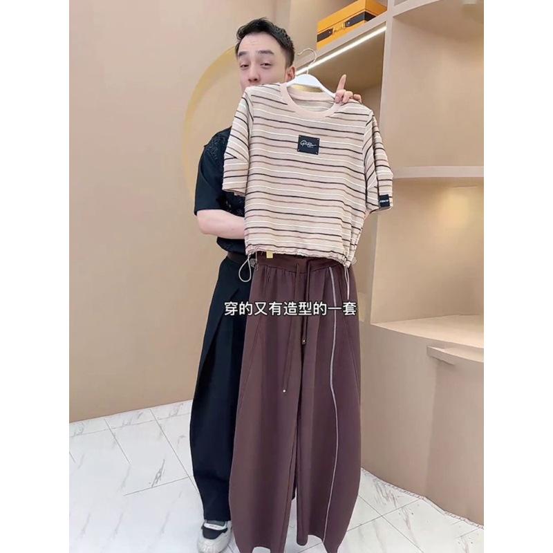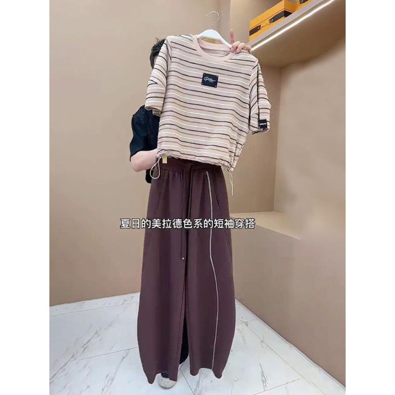 Traje Deportivo Casual Europeo para Mujer 2025 Nuevo Estilo de Moda de Verano Reductor de Edad Rayado de Manga Corta Conjunto de Dos Piezas Adelgazante