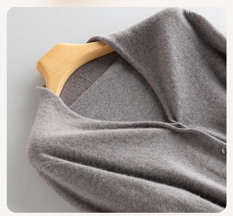 Cárdigan de Cachemira 100% Pura para Mujer, Holgado, Casual, Minimalista, con Temperamento, Versátil, Tejido de Punto, Otoño/Invierno, Nuevo Estilo Lazy