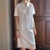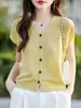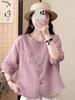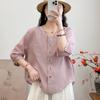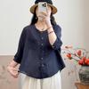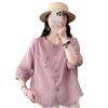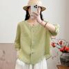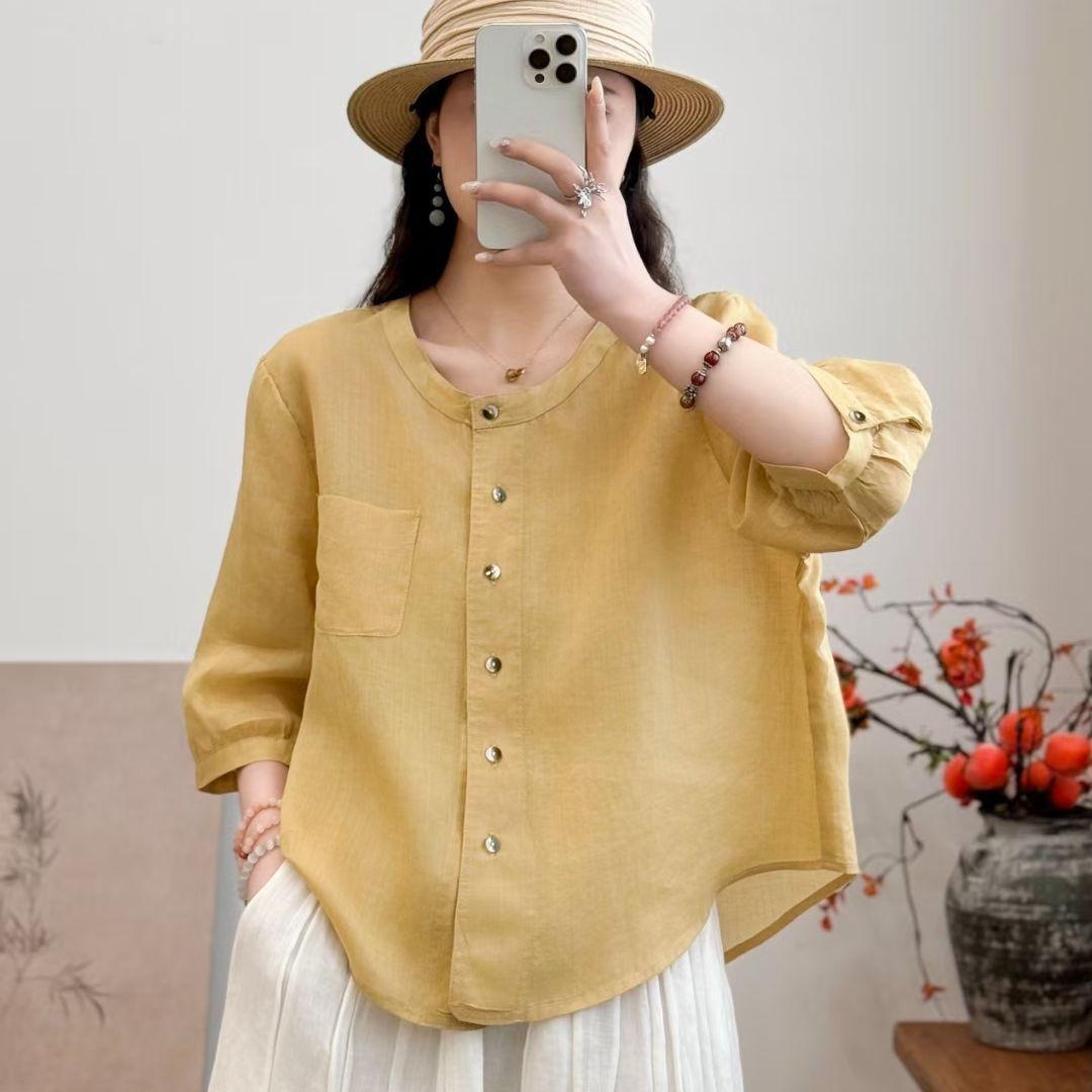 2025 Verano Algodón Lino Color Sólido Estilo Corto Nueva Moda Temperamento Casual Versátil Cárdigan Adelgazante Camisa Blusa de Mujer