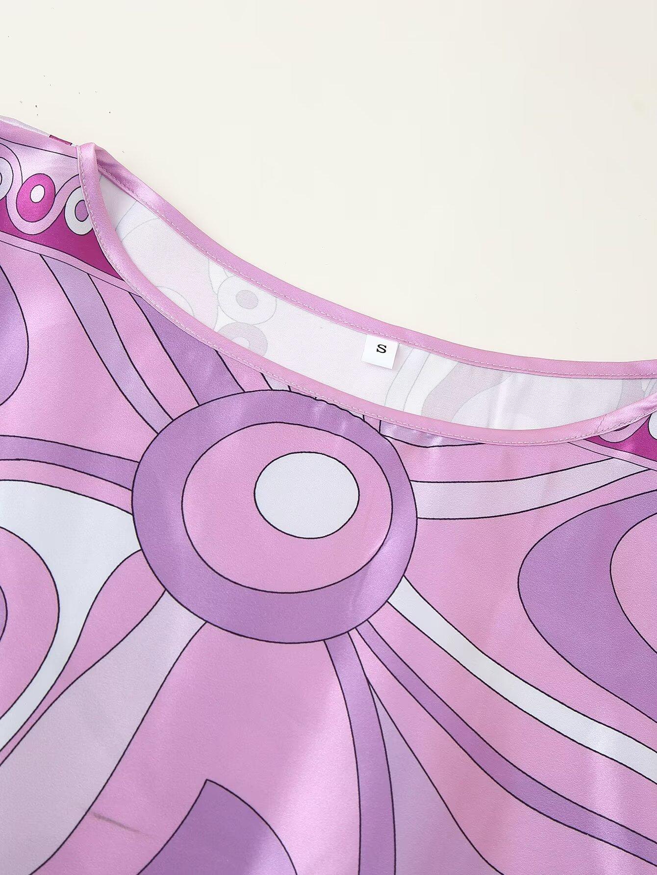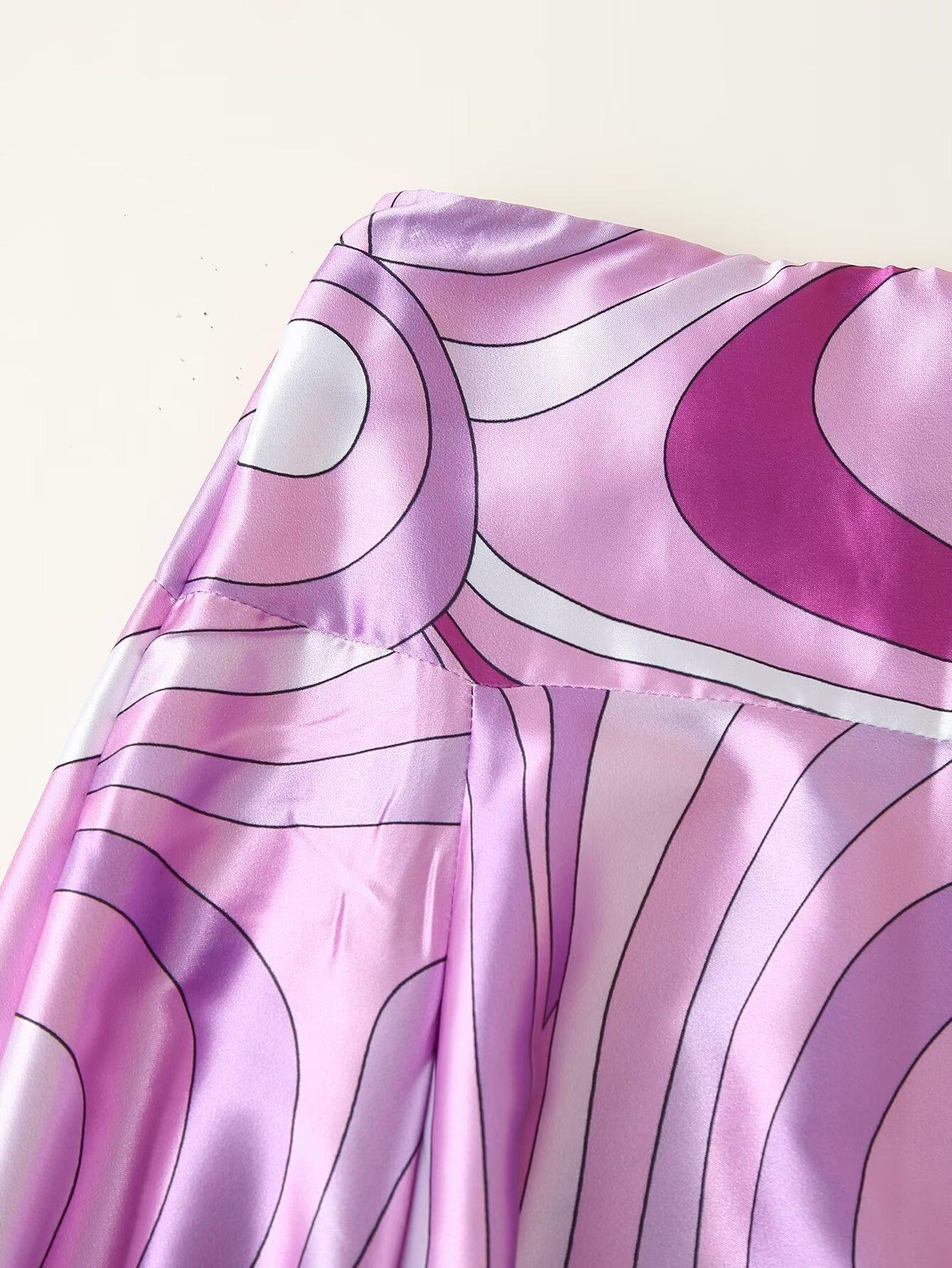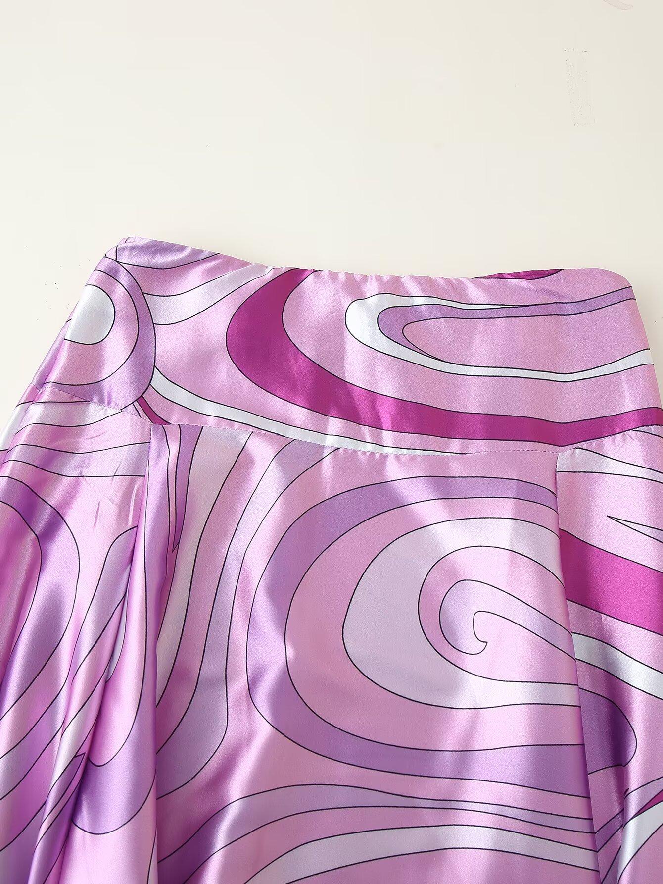 Moda Femenina Europea y Americana Transfronteriza AliExpress Más Vendido Moda Casual Estampado Estilo Capa Top + Falda Midi de Vuelo Amplio Set