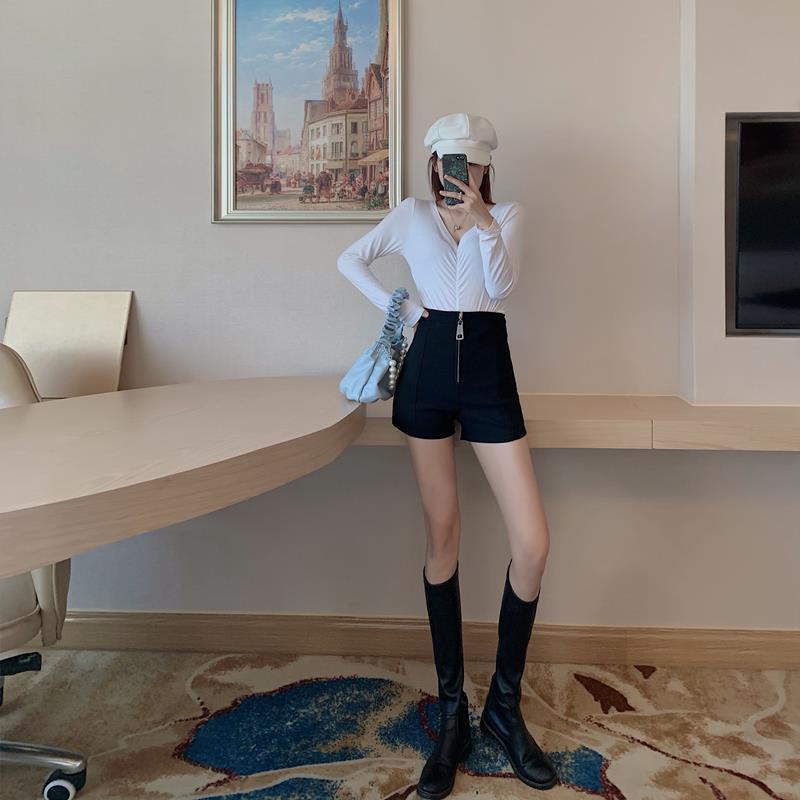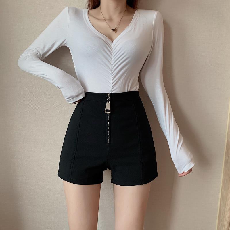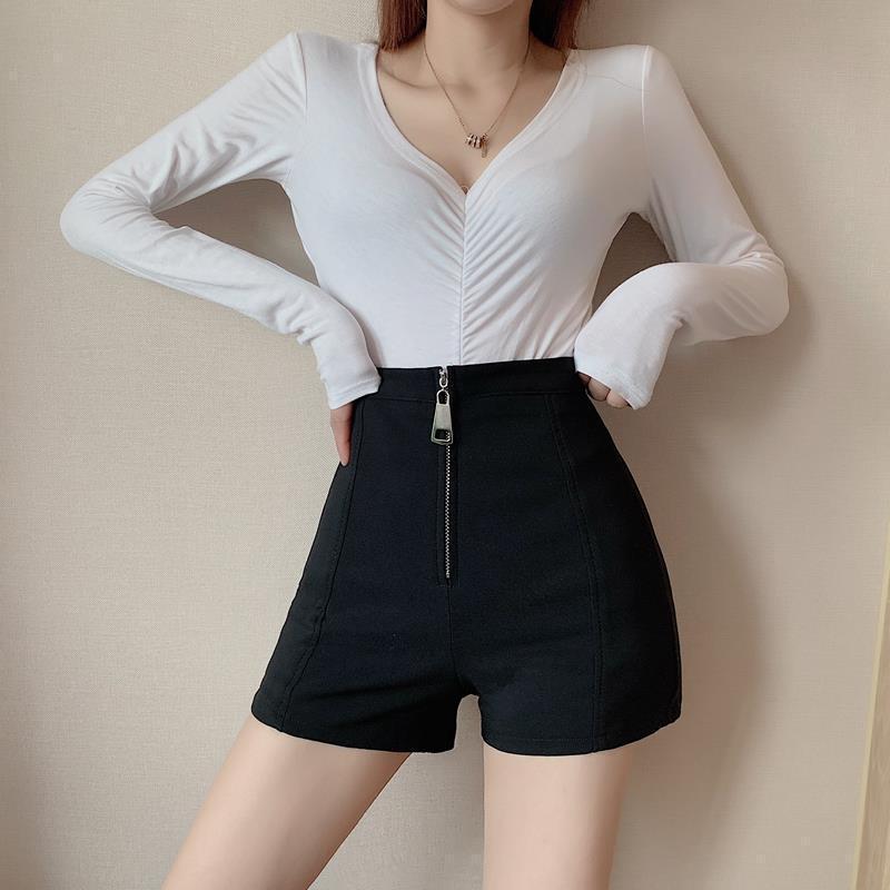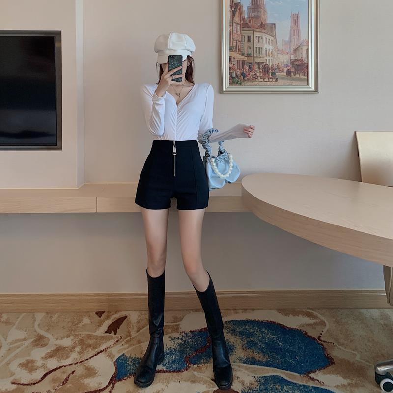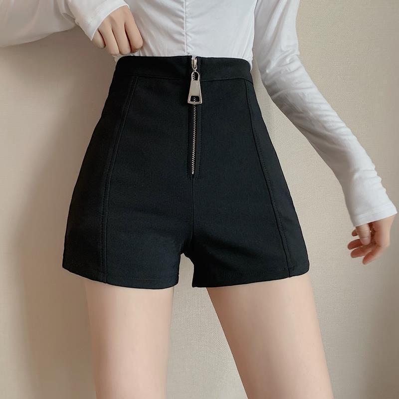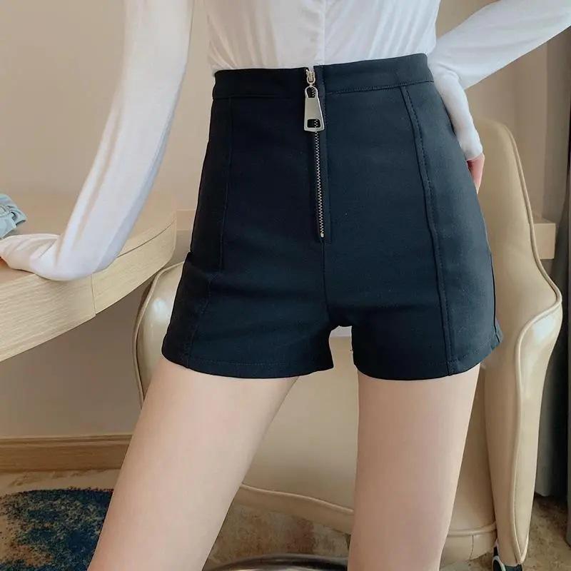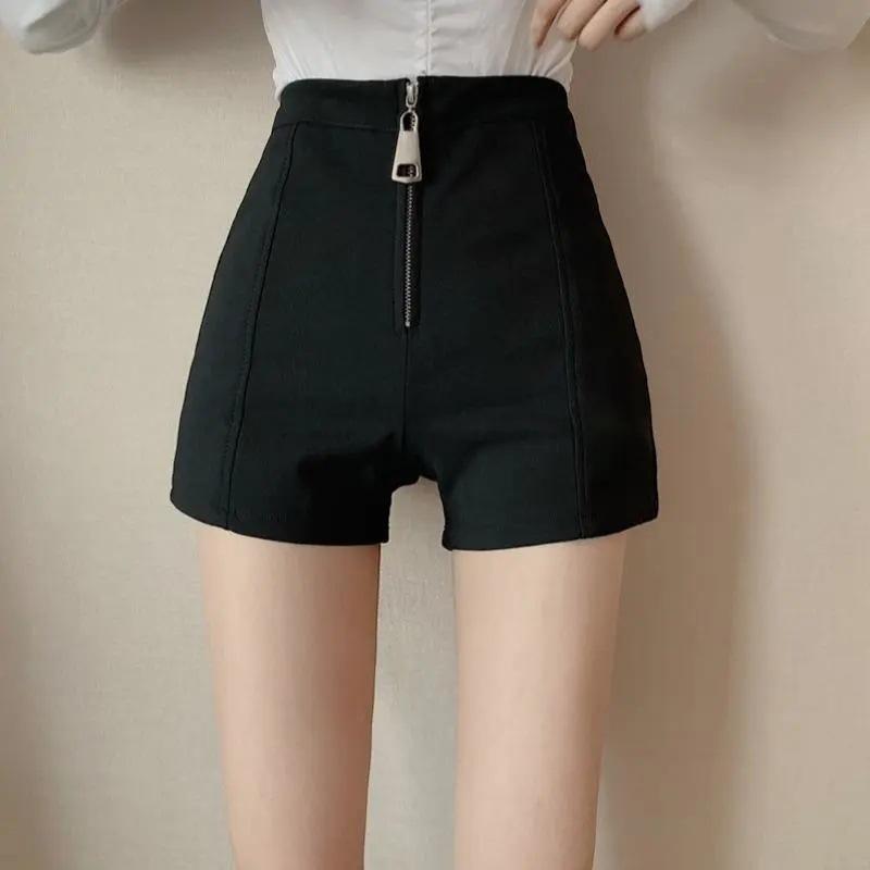 Verano 2025 Talla Extra Gordo mm Shorts para Mujer Cintura Alta Cremallera Holgados Adelgazantes Look Línea A Pantalones Pierna Ancha Negro Casual Pantalones Cortos