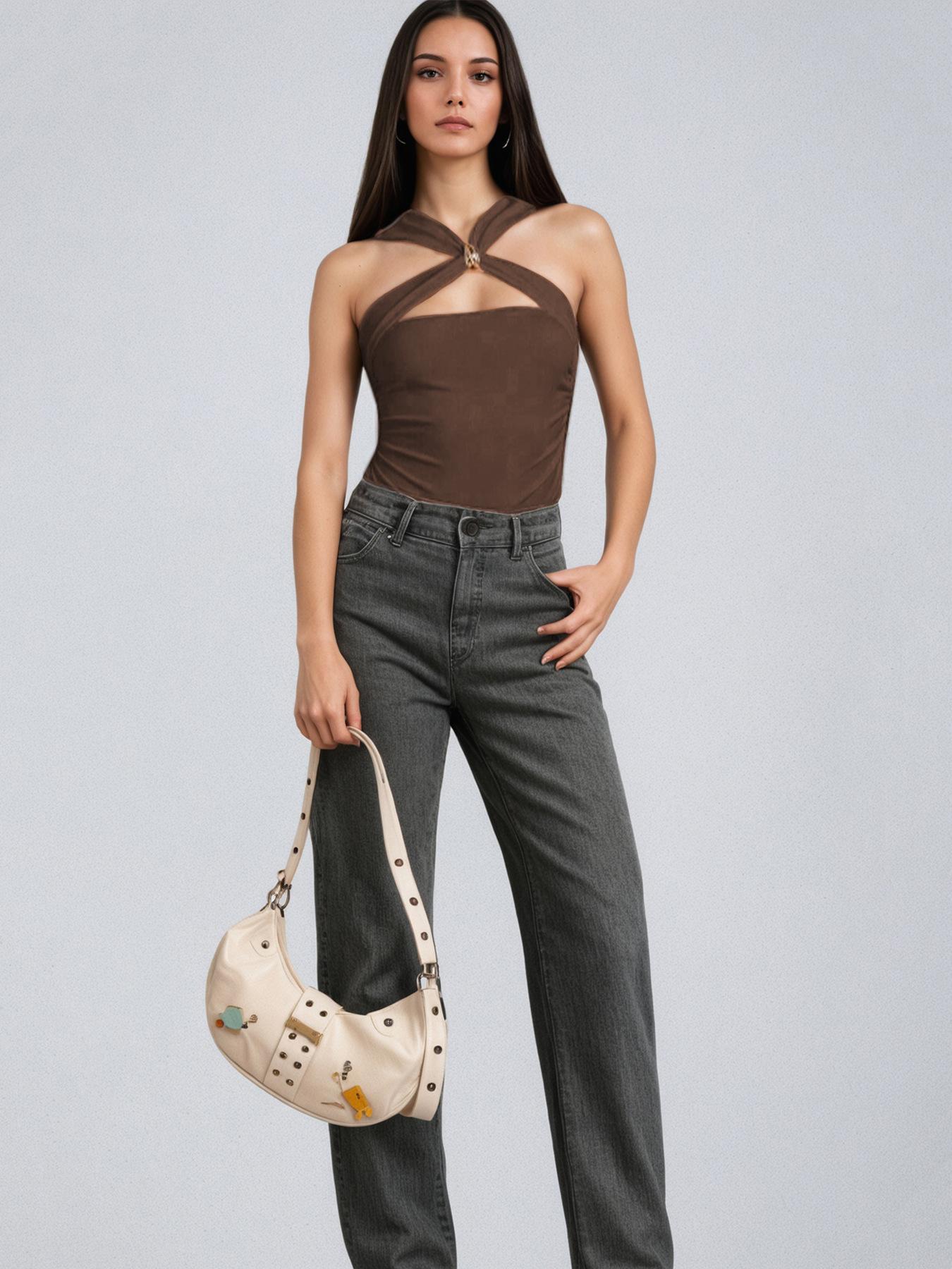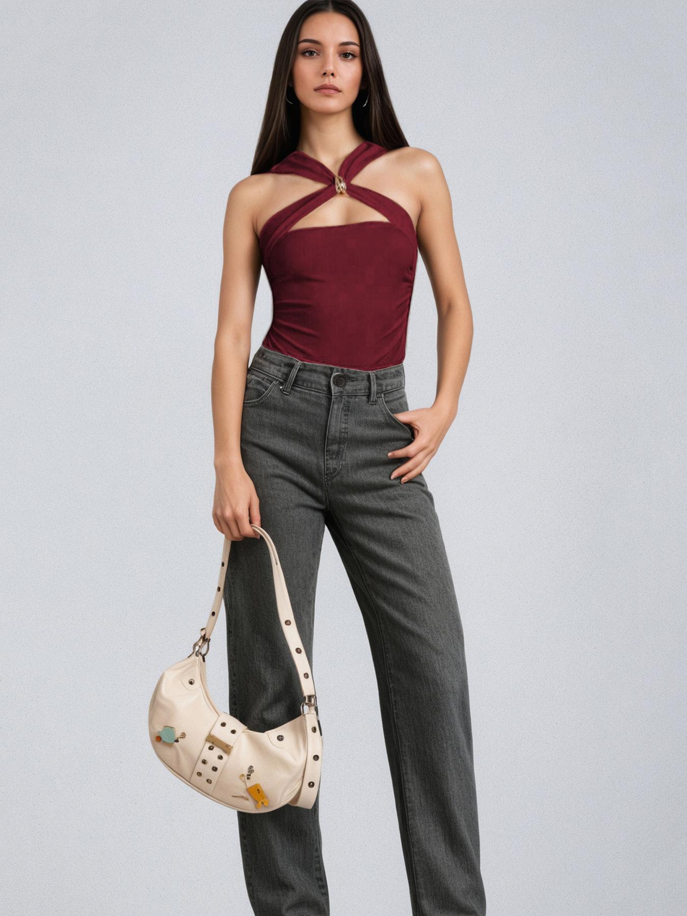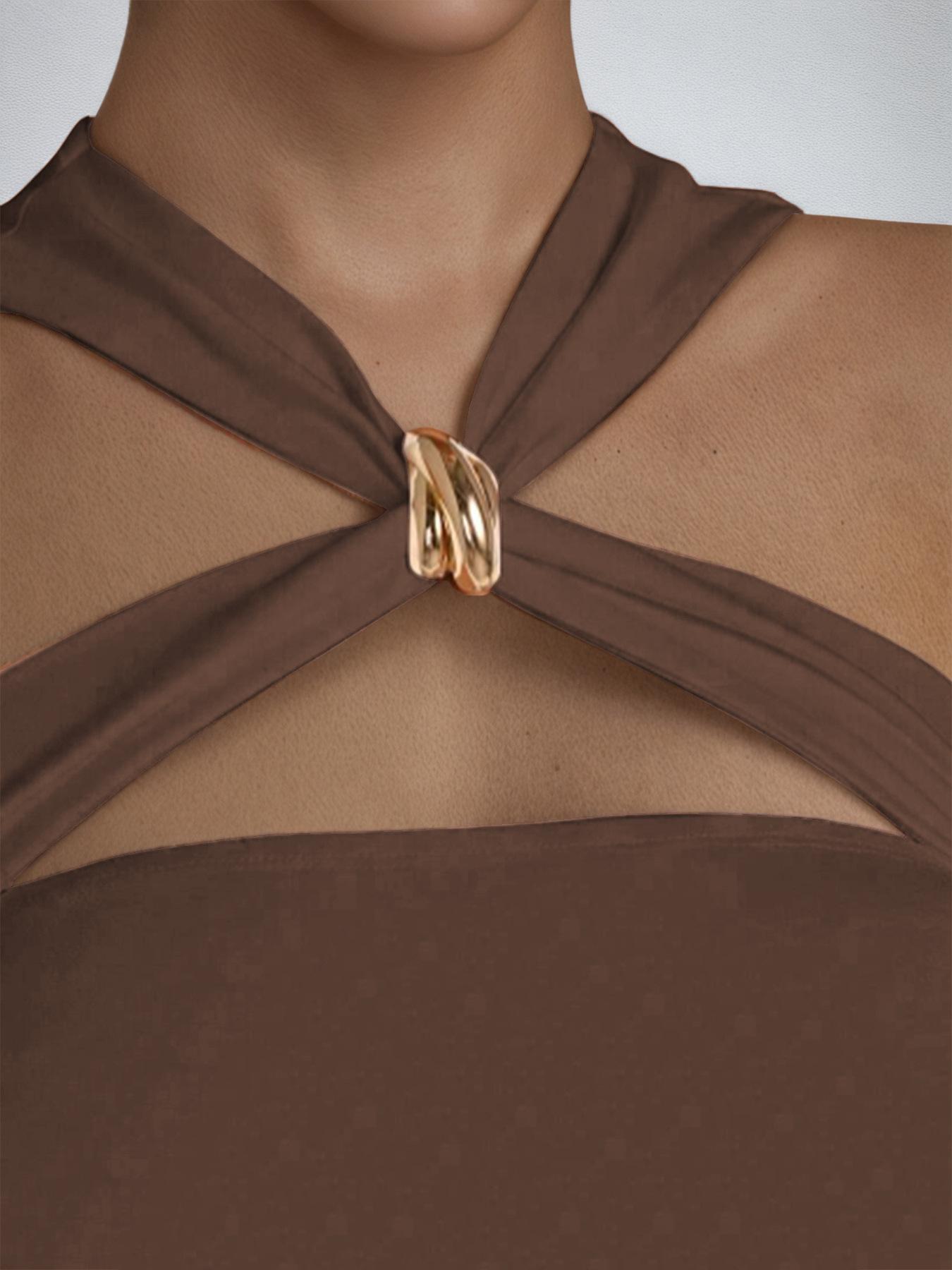 2025 Nuevo Verano Estilo Europeo y Americano Ropa de Mujer Sexy Slim Diseño Nicho Mono Sin Mangas con Tiras Cruzadas en el Pecho