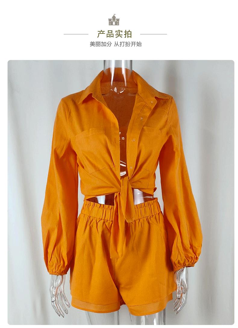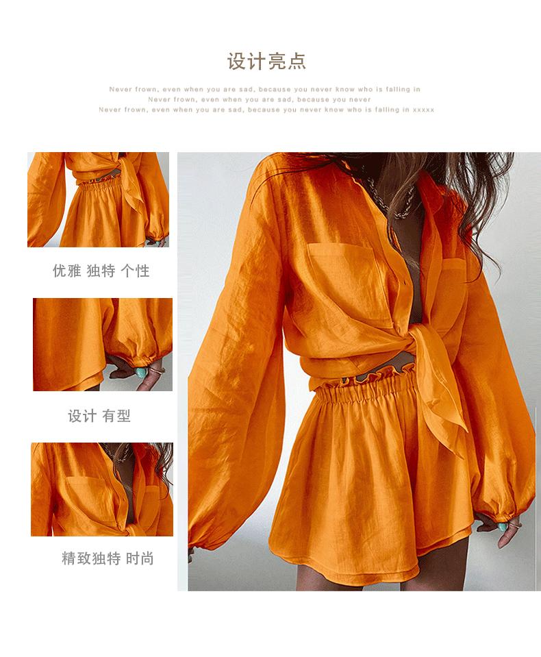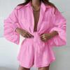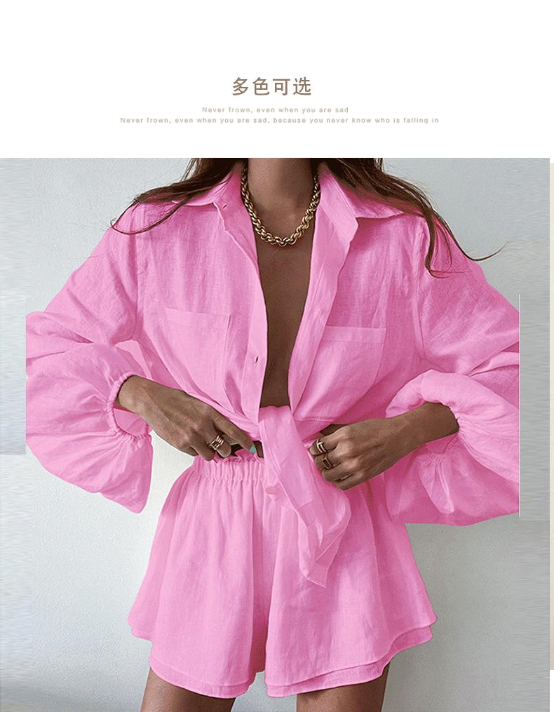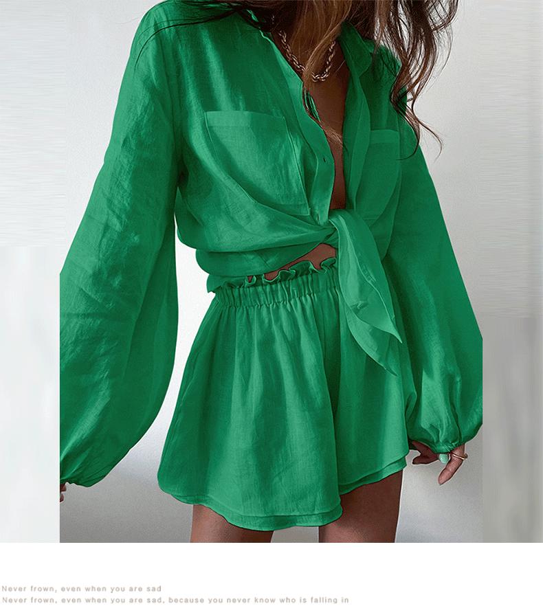 2025 Amazon Verano Europeo y Americano Transfronterizo Nuevo Traje de Camisa y Shorts Casuales de Moda para Mujer de Color Sólido con Volantes
