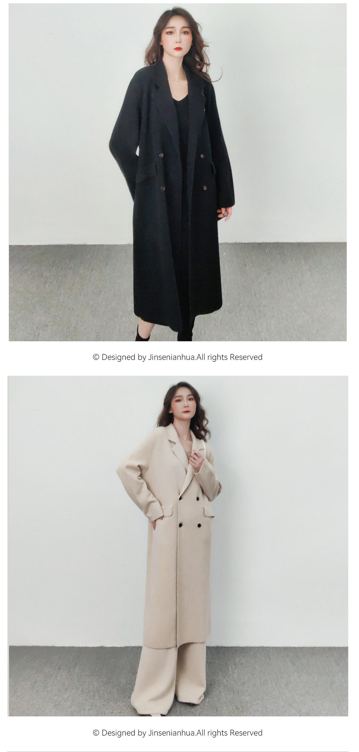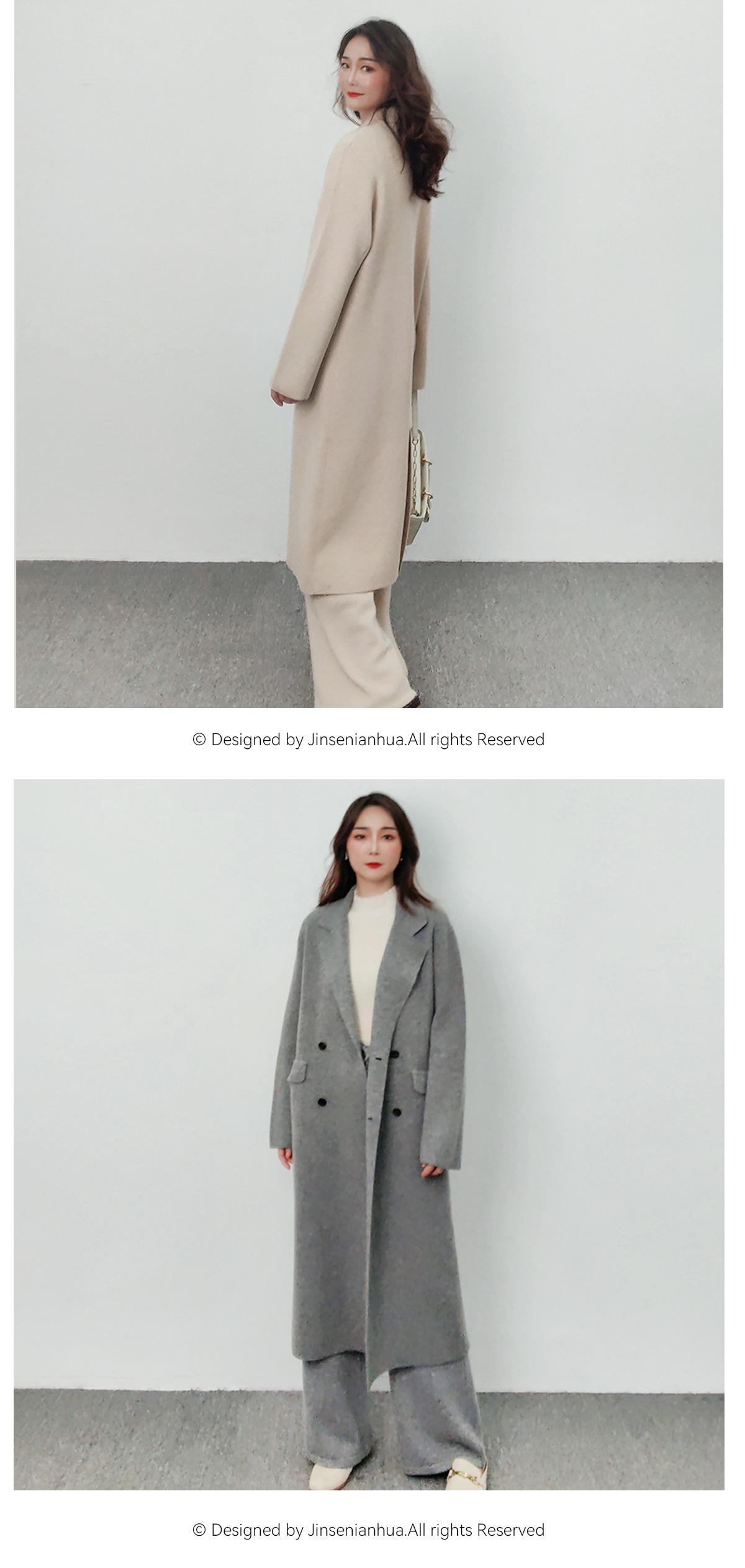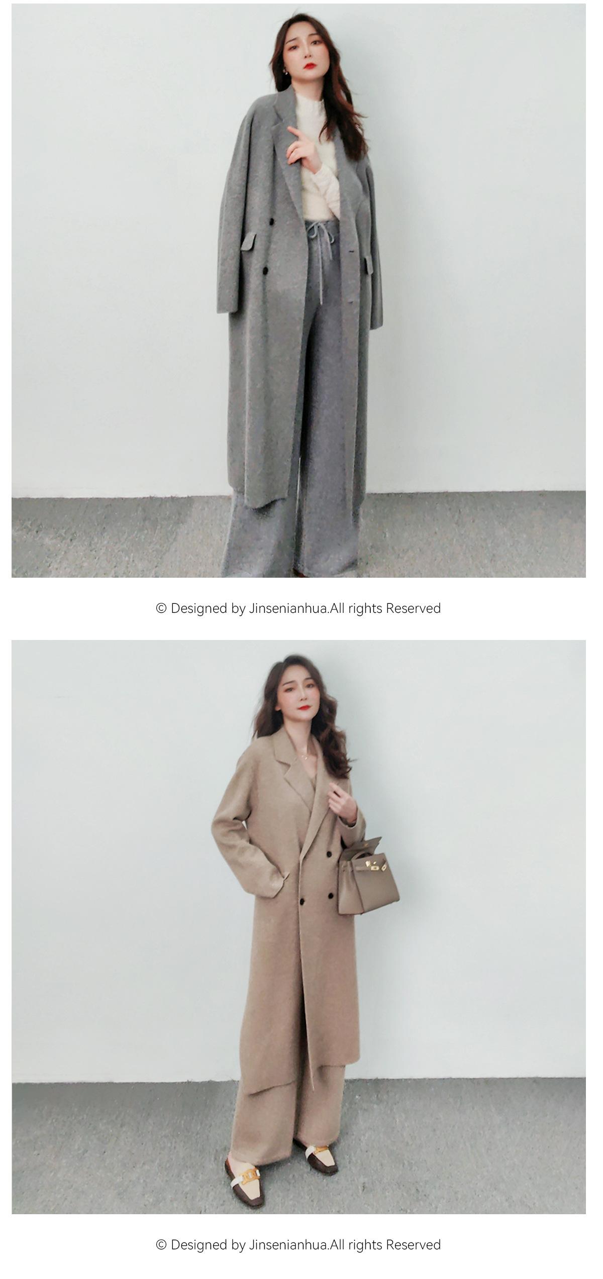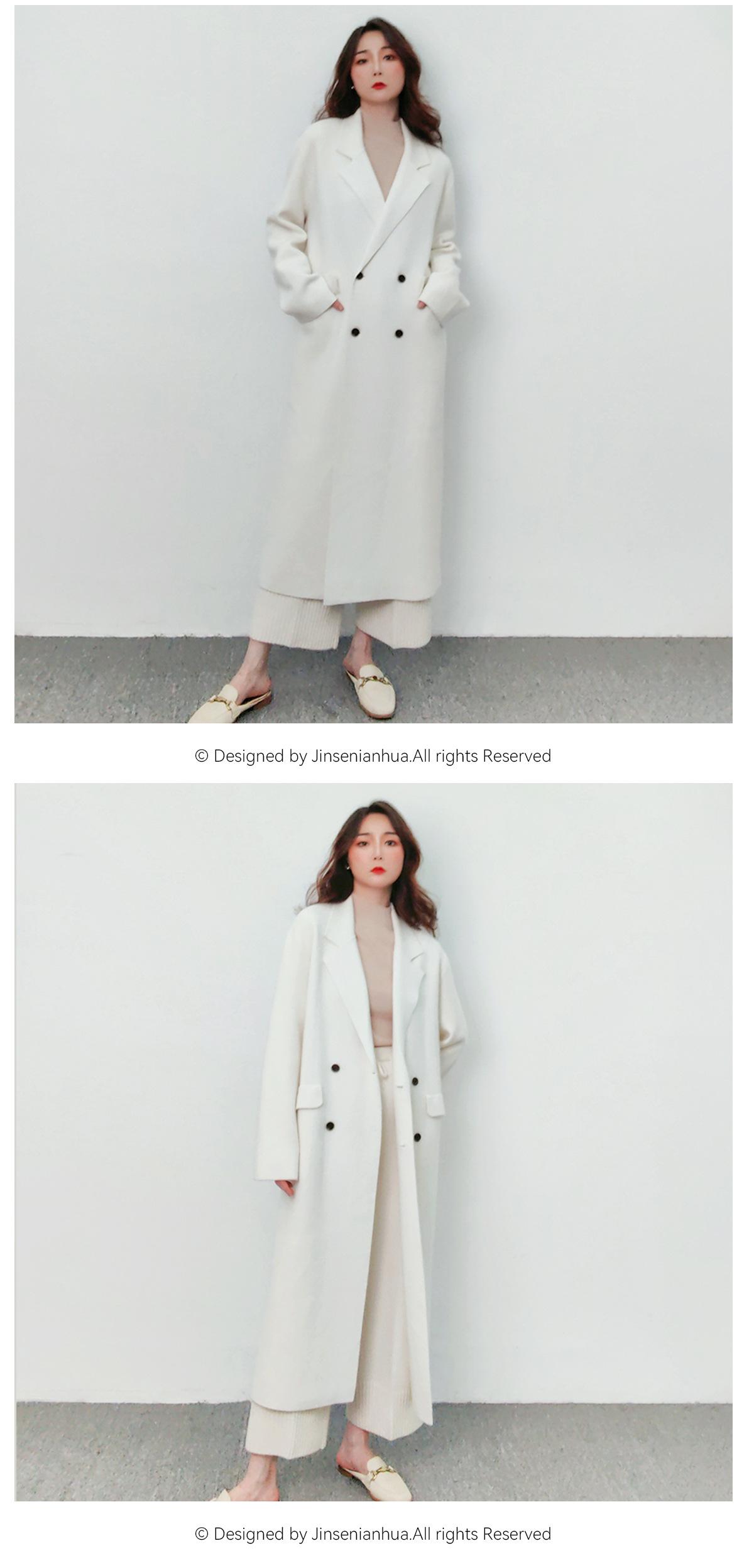 2024 Nuevo Otoño e Invierno Traje de Cachemira Pura Cuello Doble Faz Grueso Tejido Abrigo Exterior Chaqueta Casual para Mujer Versión Holgada Coreana