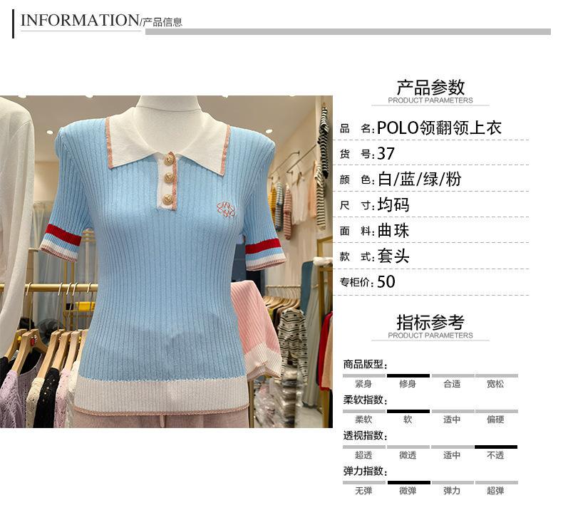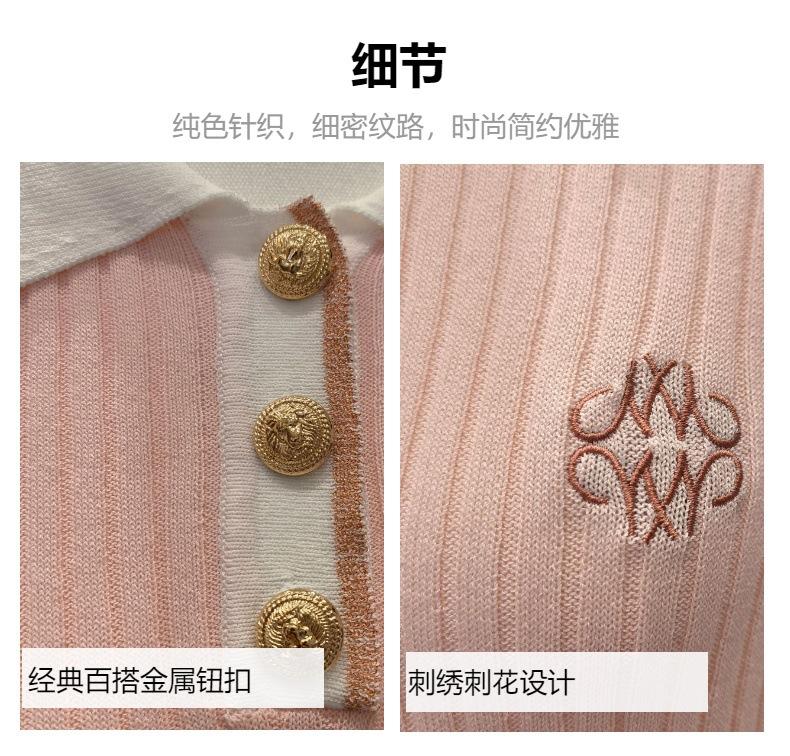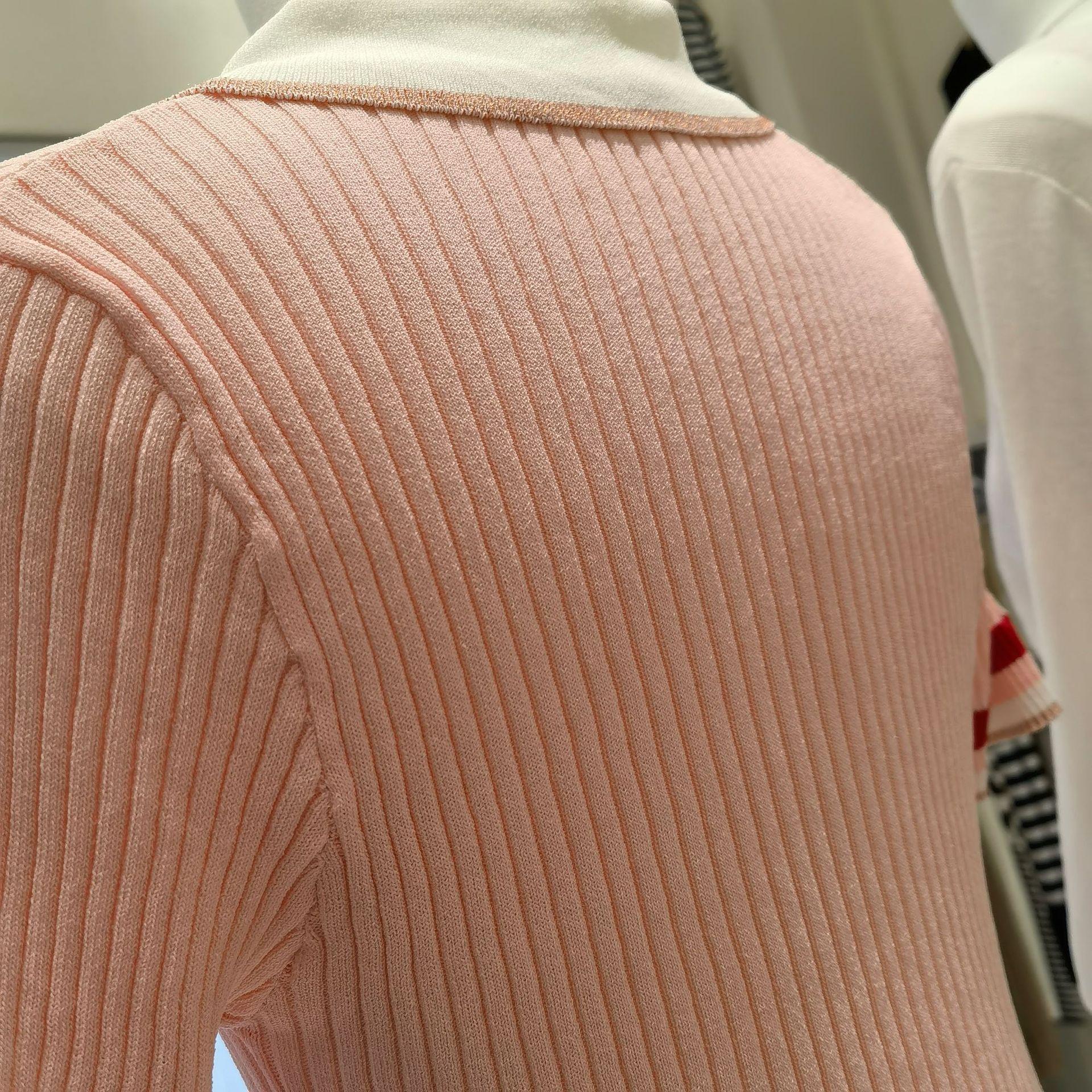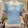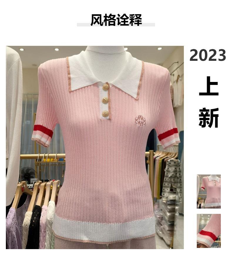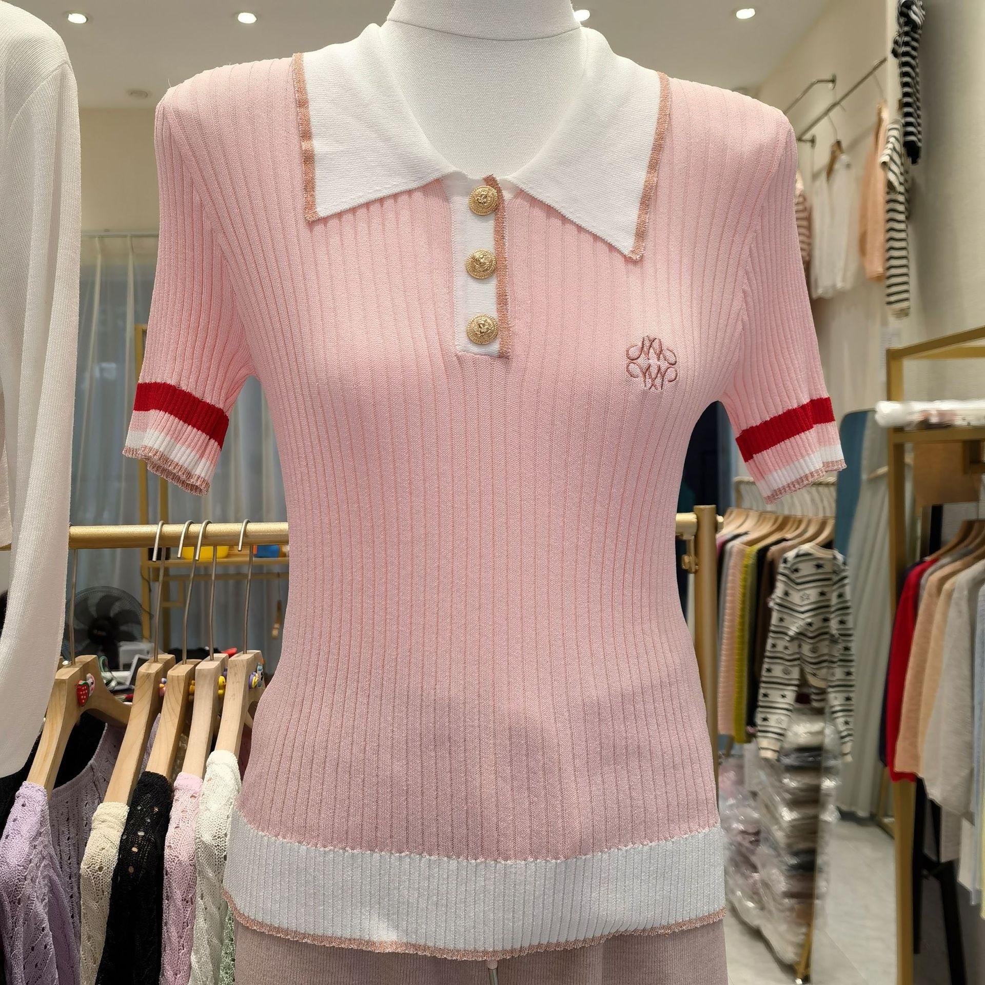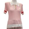 Polo Fino de Manga Corta Tops Versátiles para Mujer al Mayoreo, Tejido de Punto Slim-Fit con Bloques de Color Estilo Dulce de Manga Corta