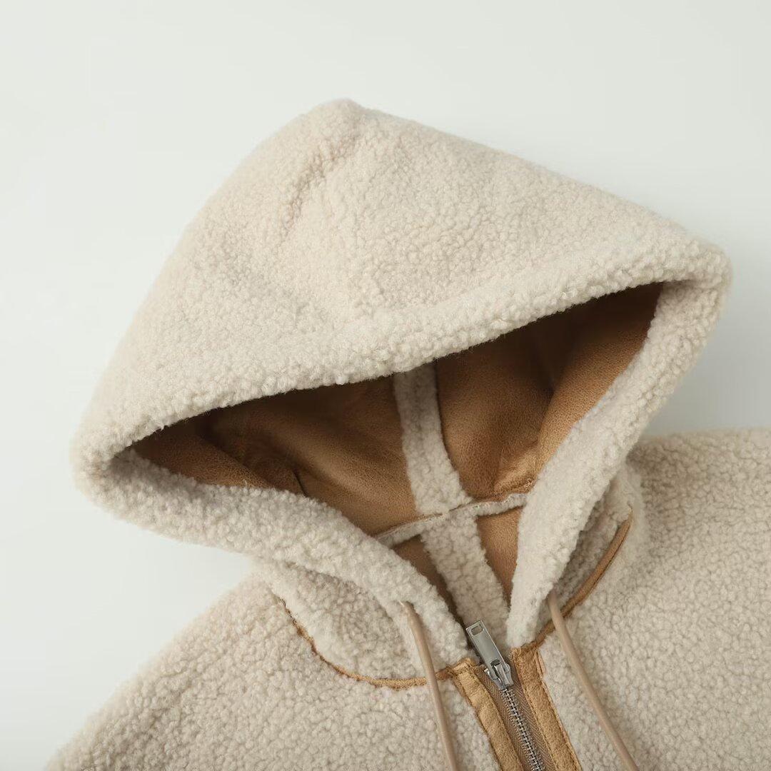 Ropa de Mujer Transfronteriza Z Otoño e Invierno 2024 Nuevo Estilo Suave con Cordones con Capucha Bolsillo de Solapa Pantalones Chaqueta de Forro Polar 8741235