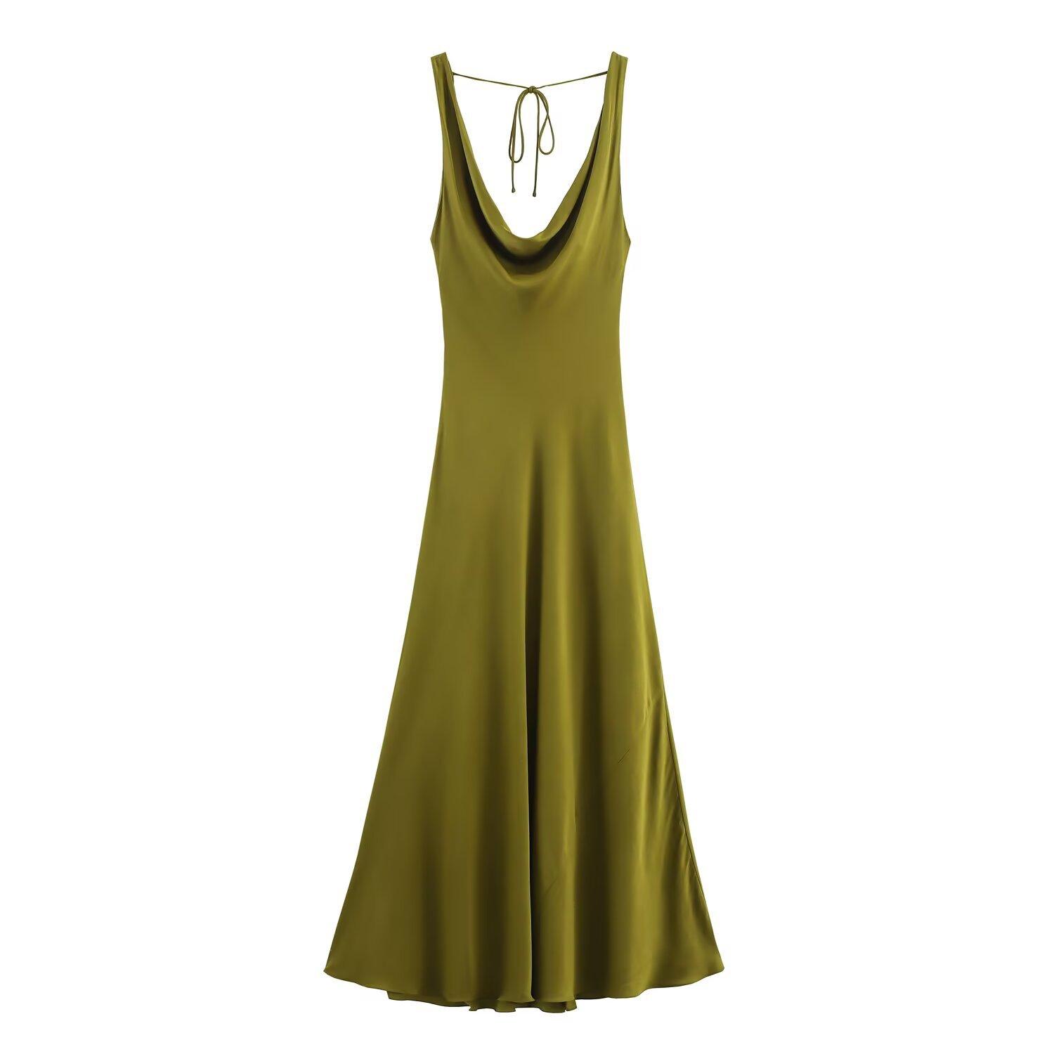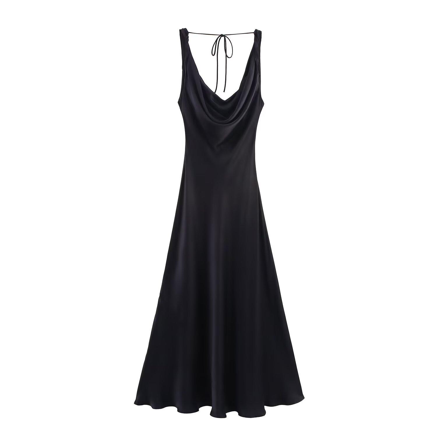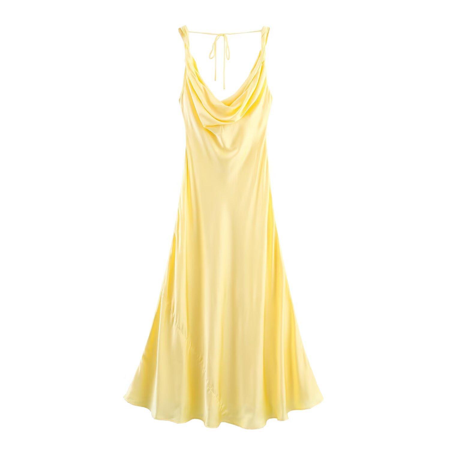 Verano 2025 nuevo vestido de mujer estilo europeo y americano moda slim textura de satén de seda 2590934