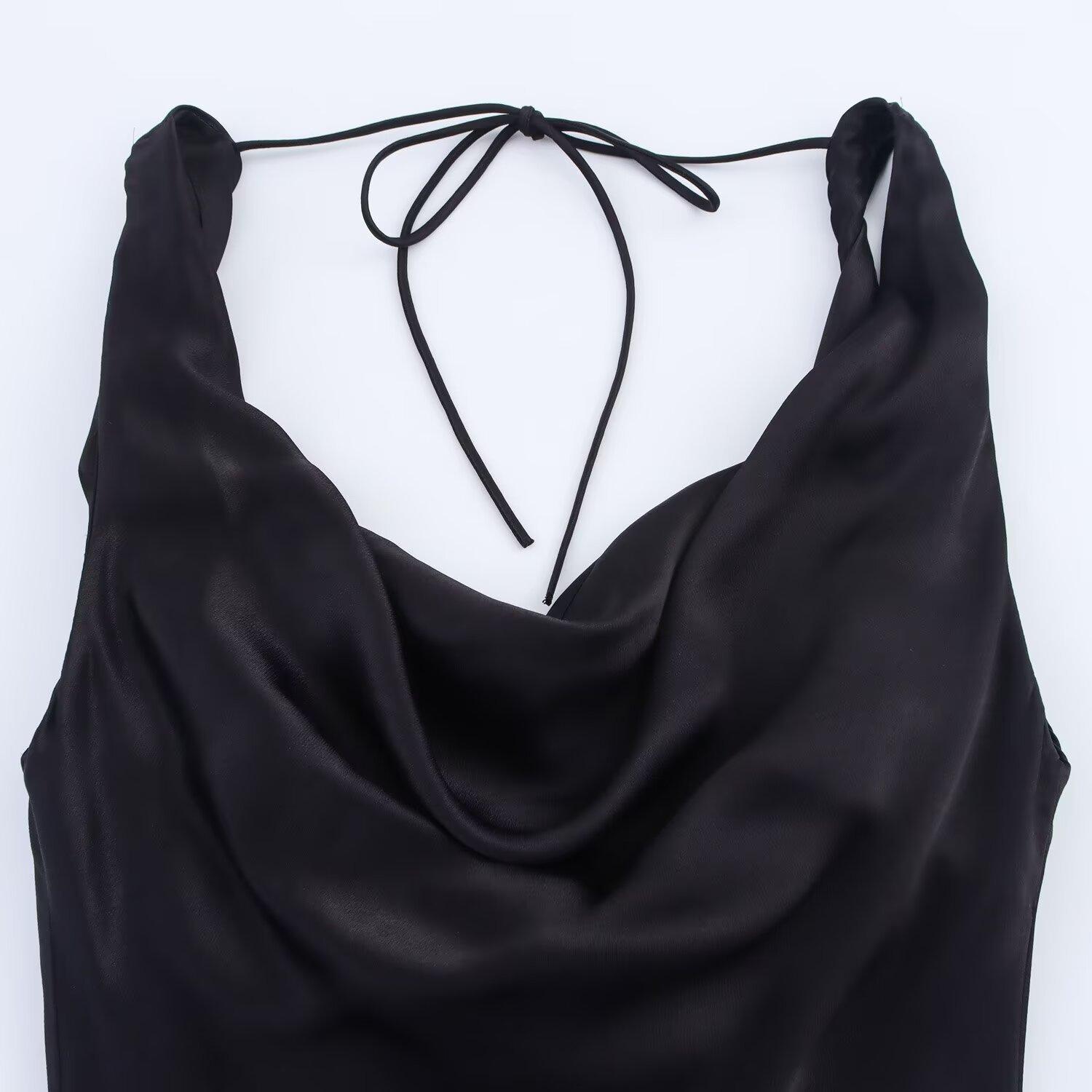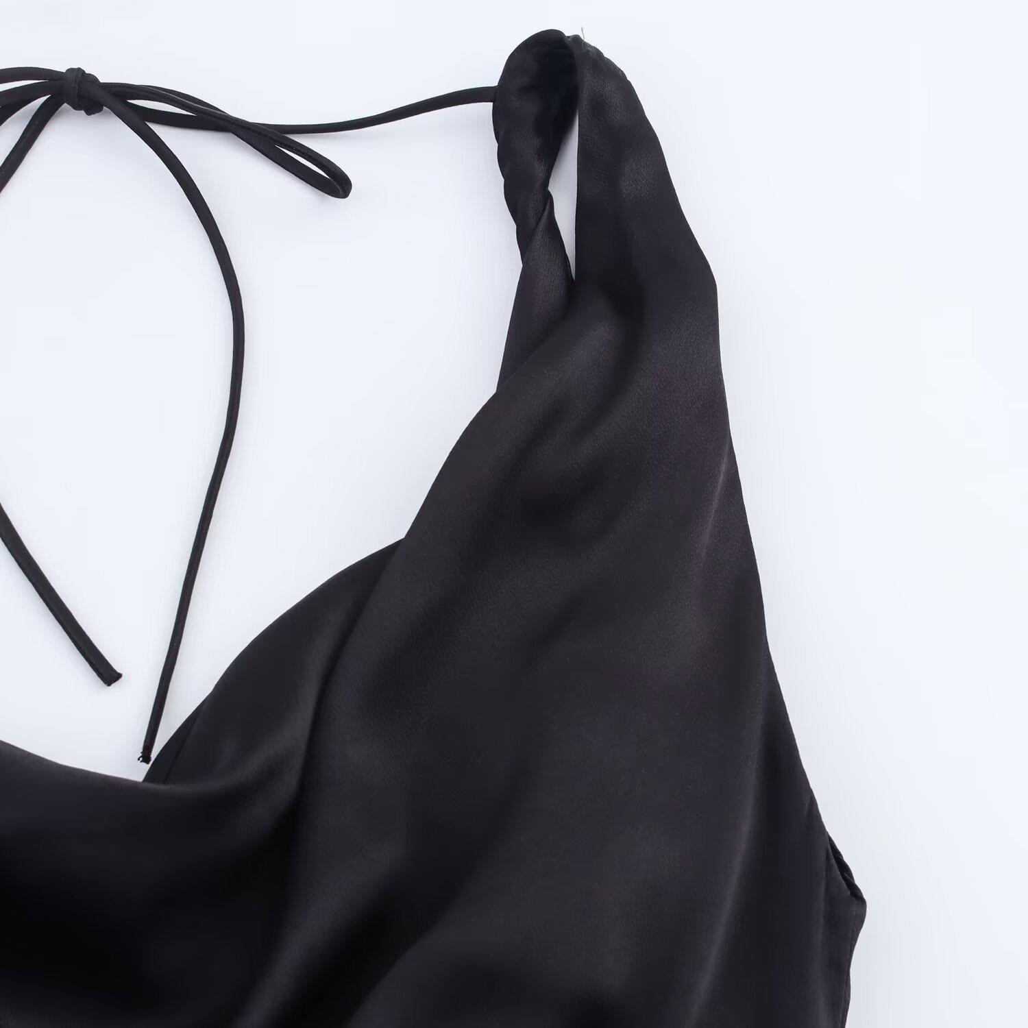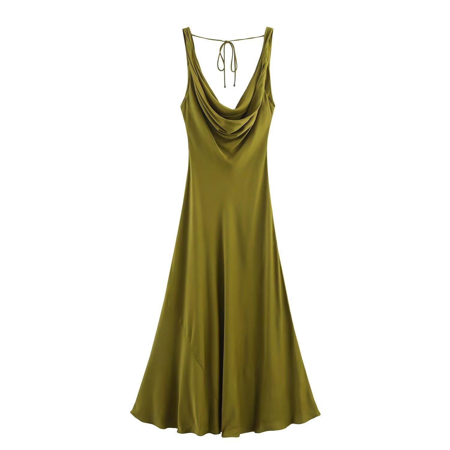 Verano 2025 nuevo vestido de mujer estilo europeo y americano moda slim textura de satén de seda 2590934