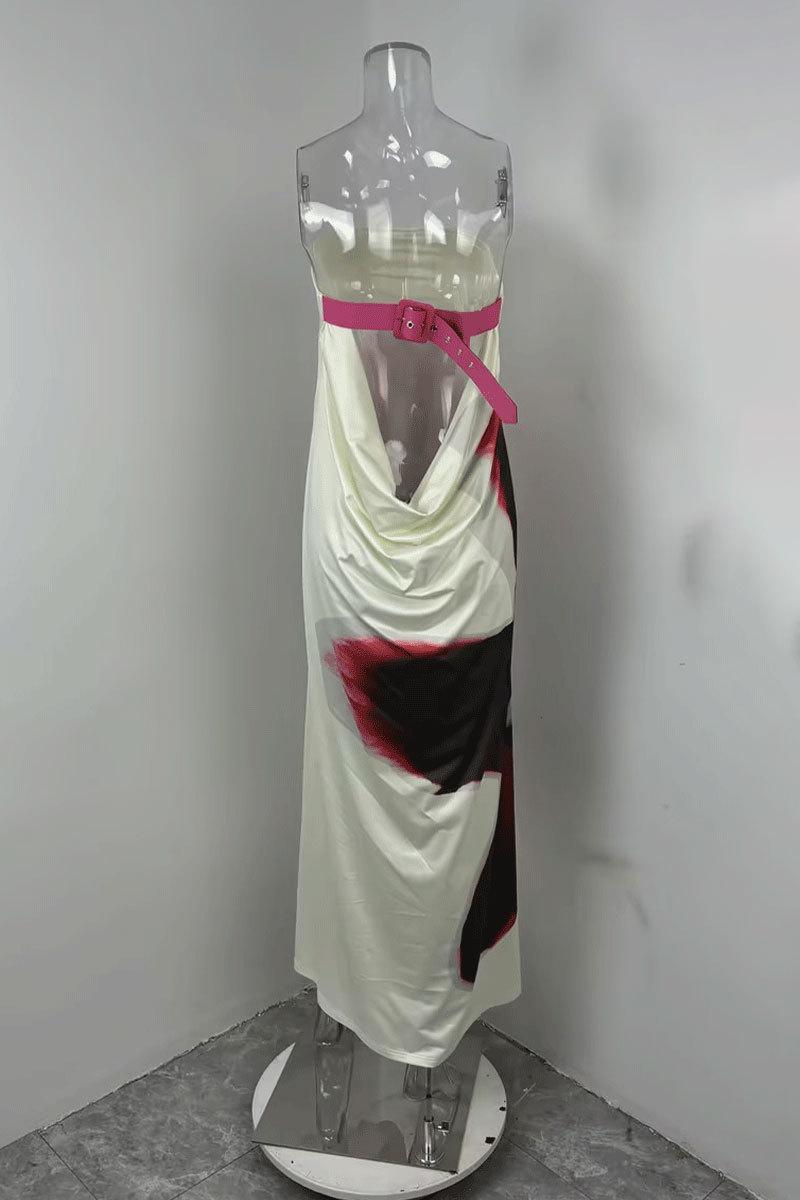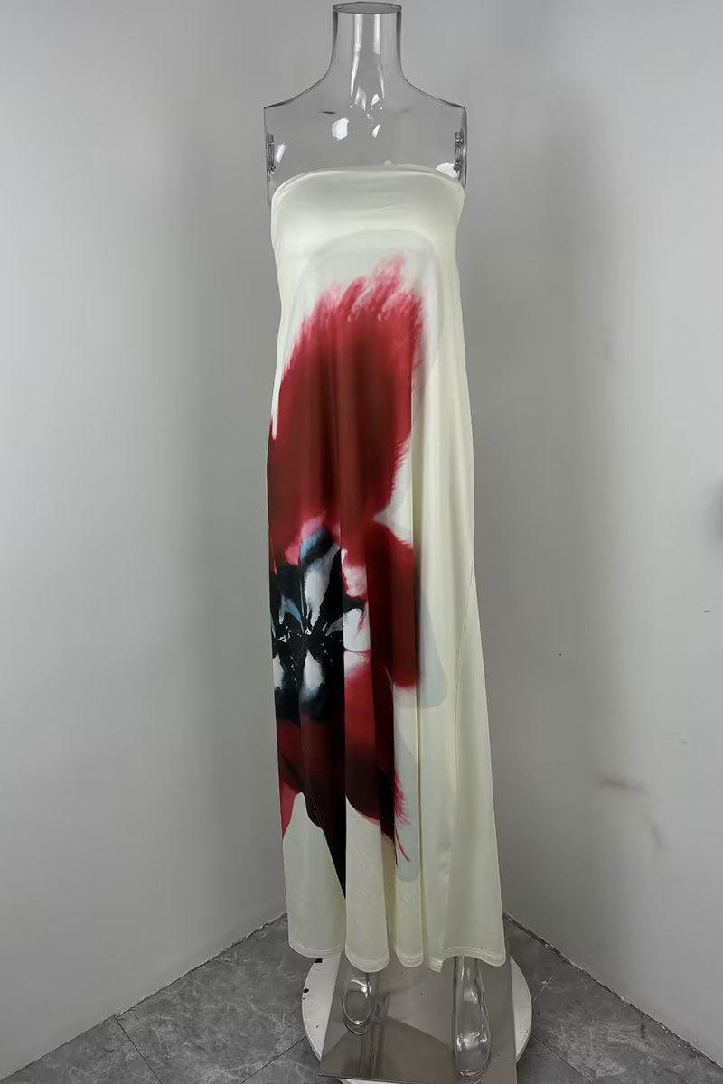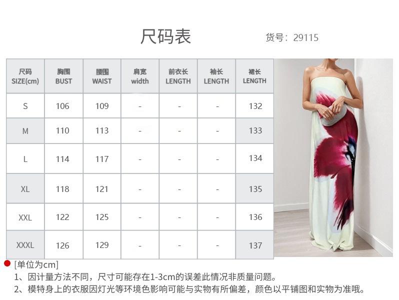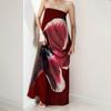 Amazon Transfronterizo 2025 Nueva Primavera Ropa Europea y Americana Elegante Top Tubo Estampado Vestido Largo sin Espalda de Cintura Alta