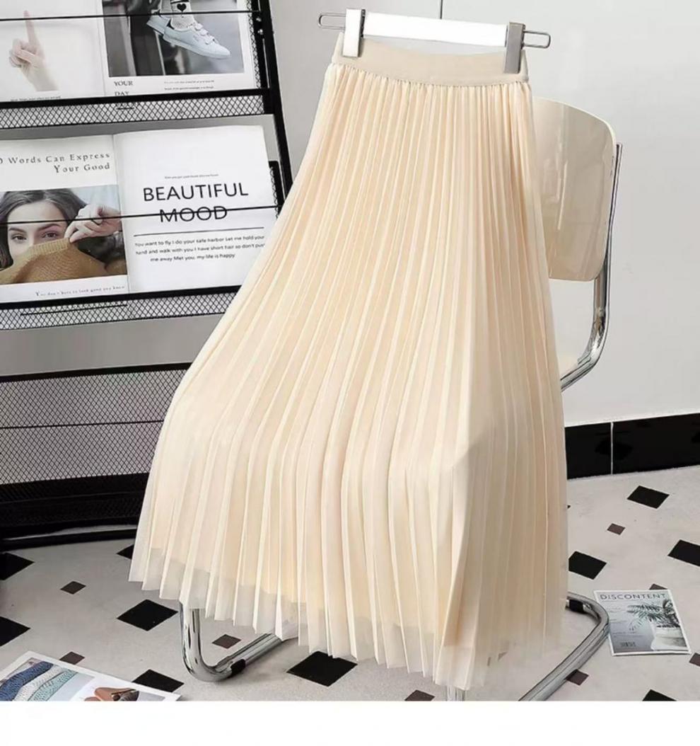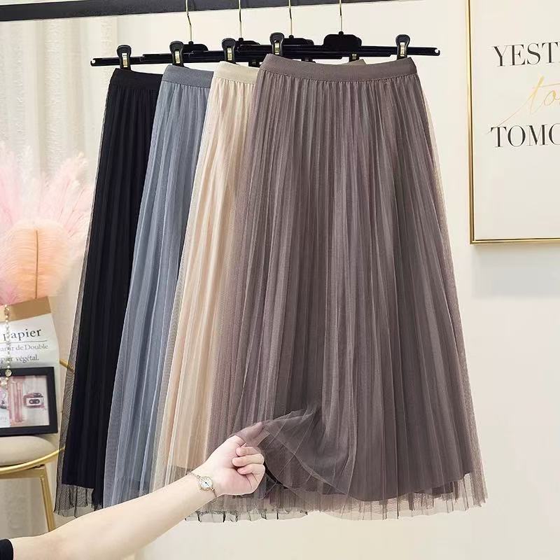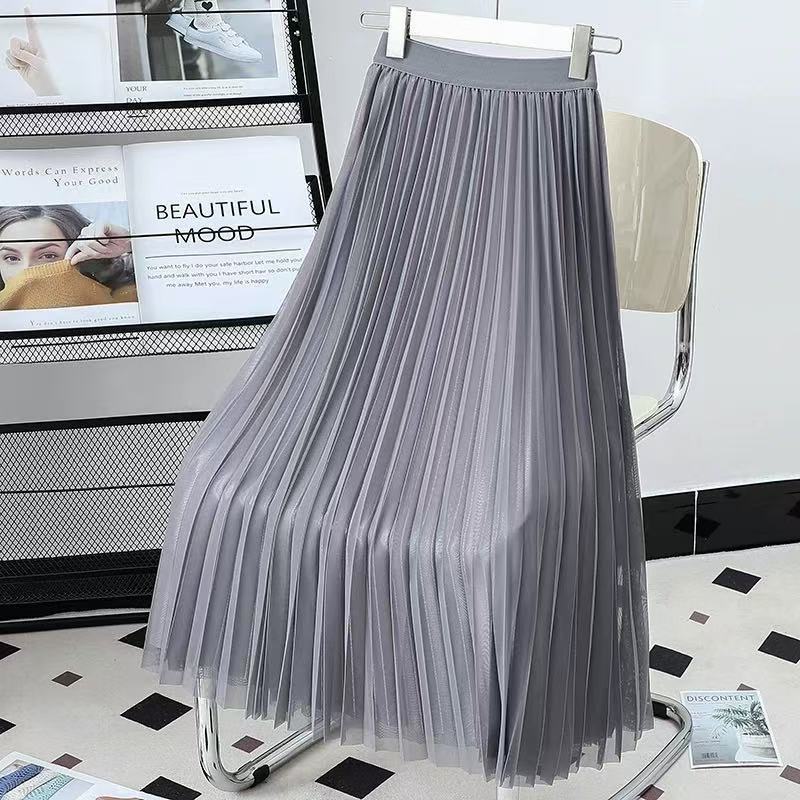 Falda Plisada de Gasa de Doble Cara Shanli Dadi para Mujer de Largo Medio Primavera Nuevo Estilo Drapeada de Vuelo Amplio A-line Falda de Gasa