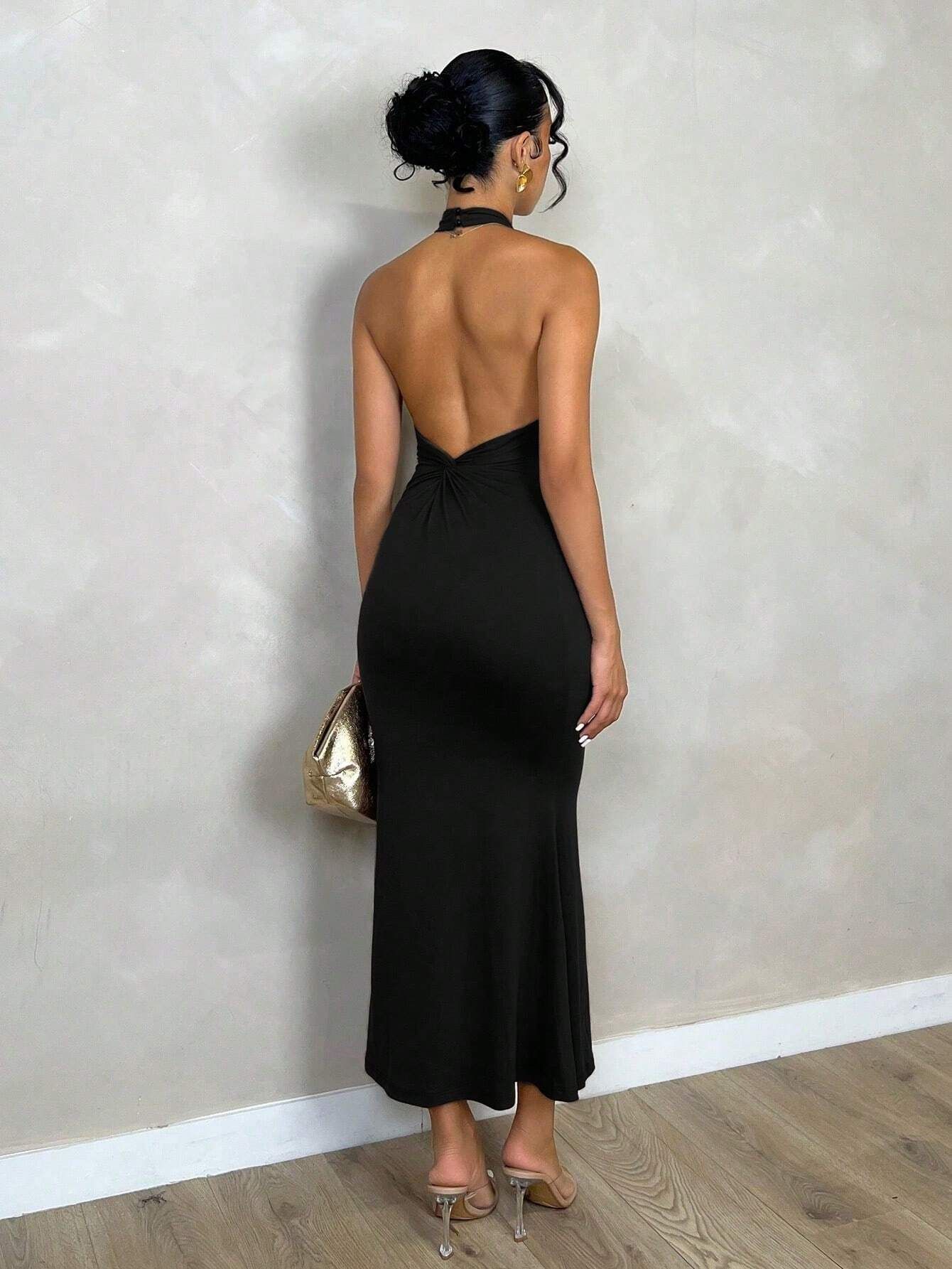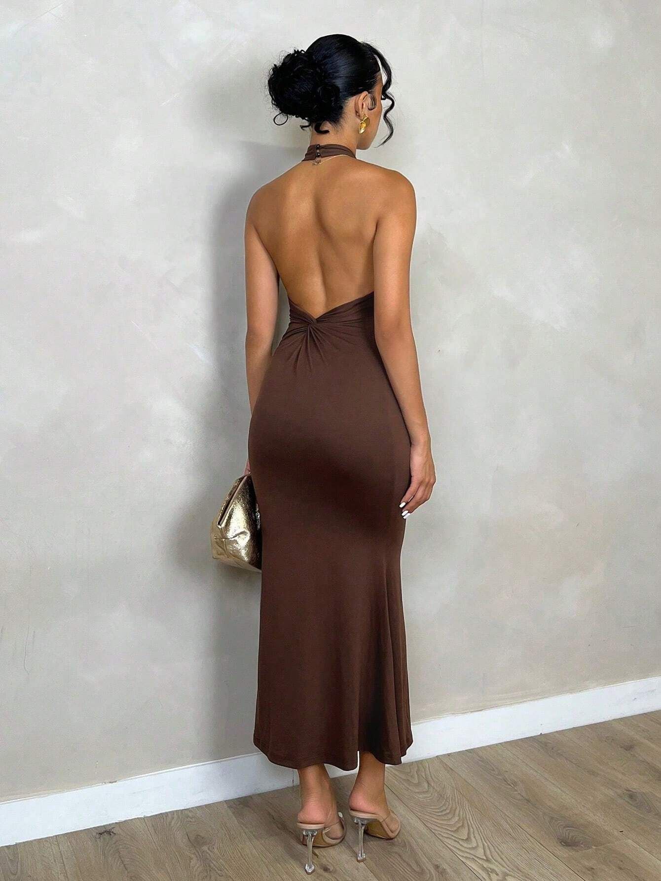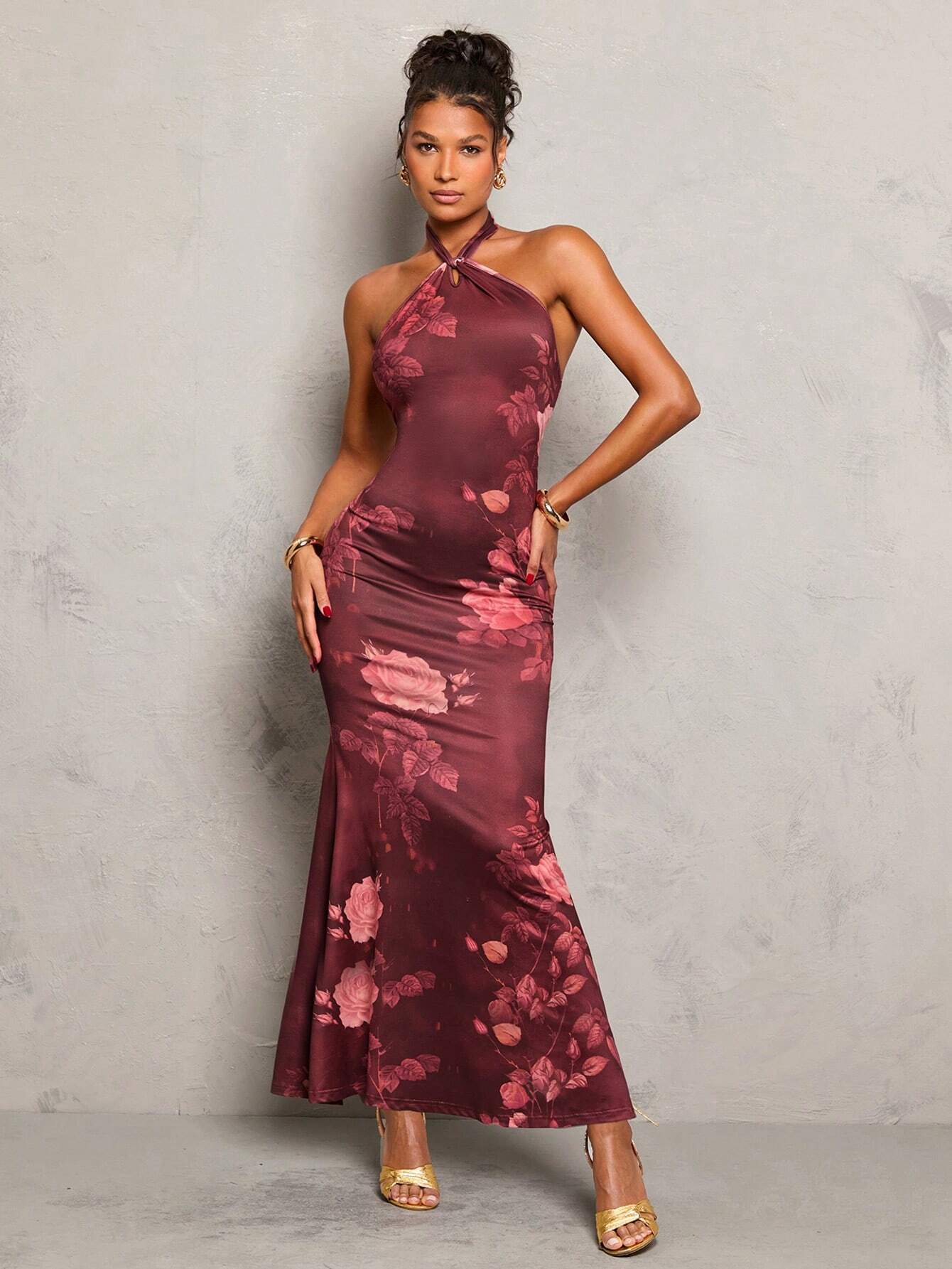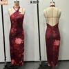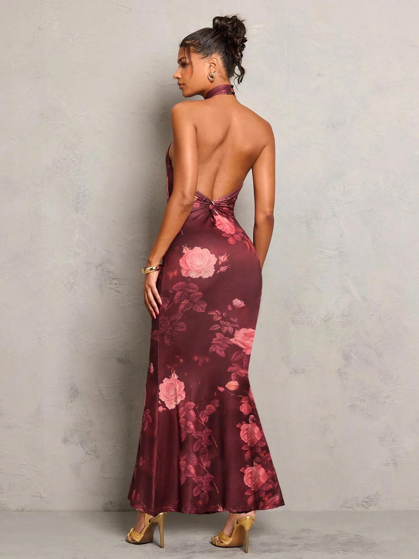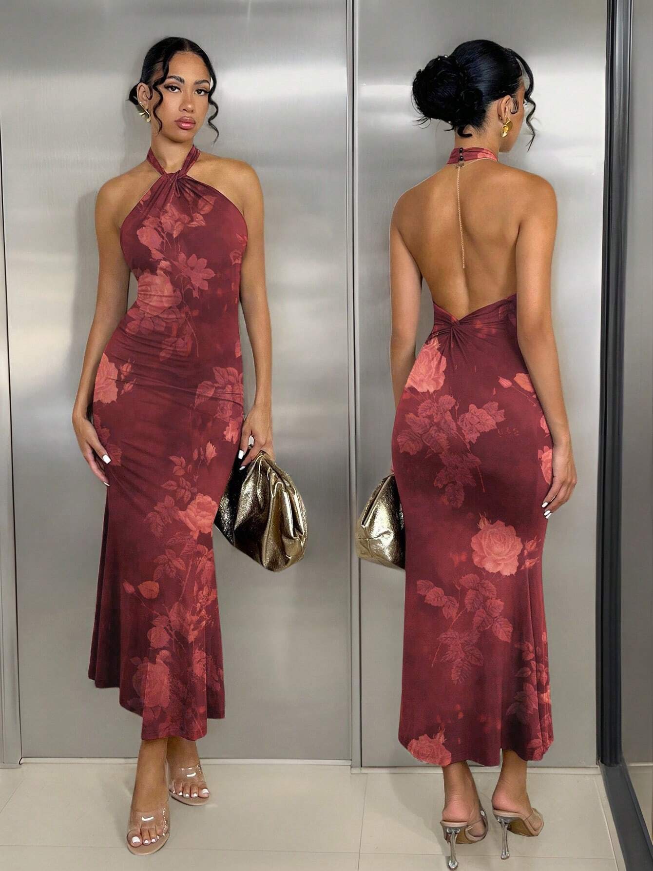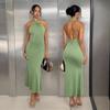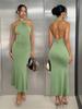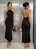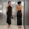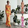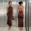 2025 Amazon Transfronterizo Europeo y Americano Nuevo Sexy Estampado Anudado Espalda Descubierta Vacaciones Sin Mangas Halter Vestido