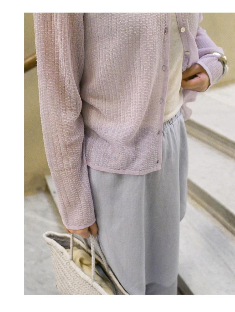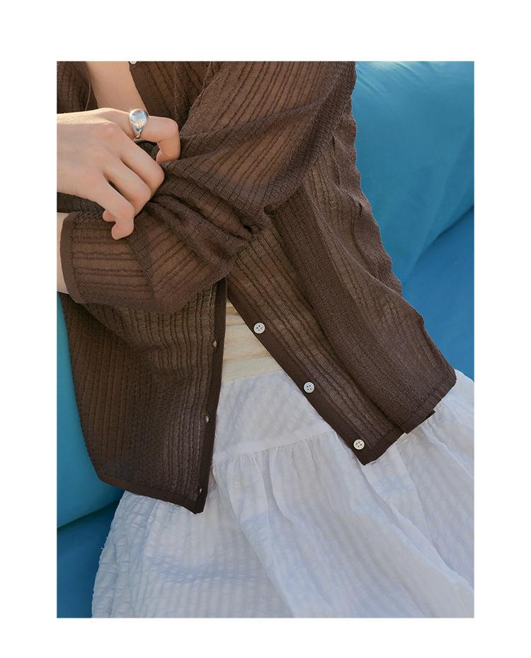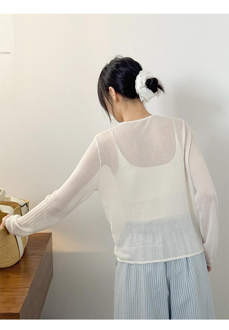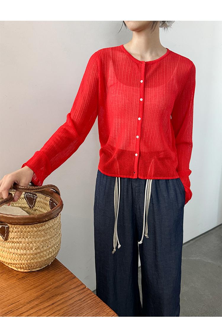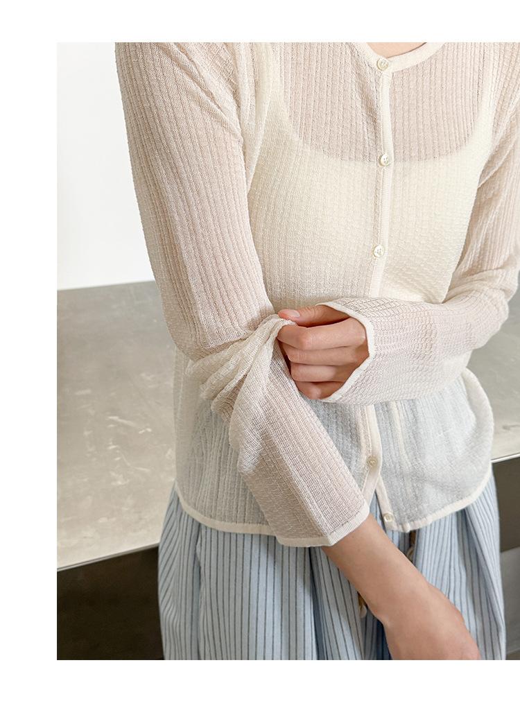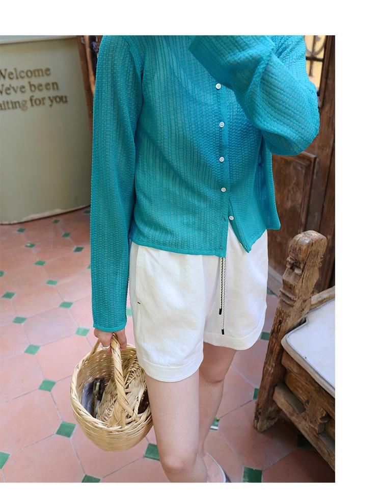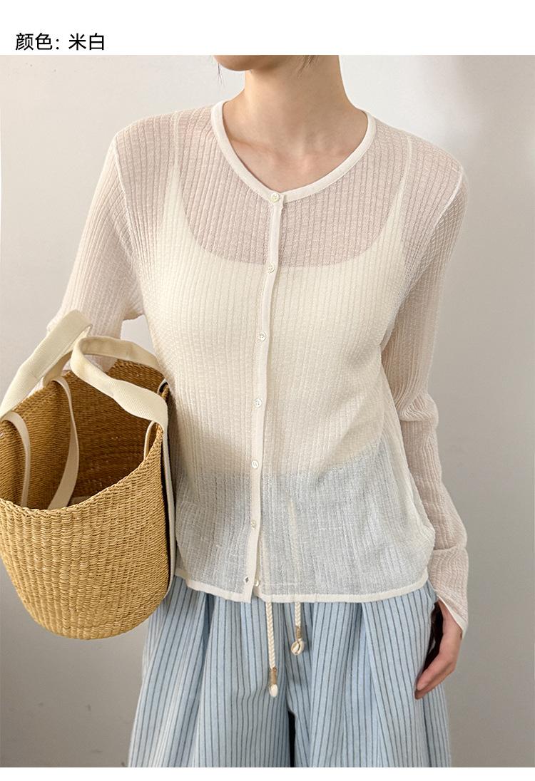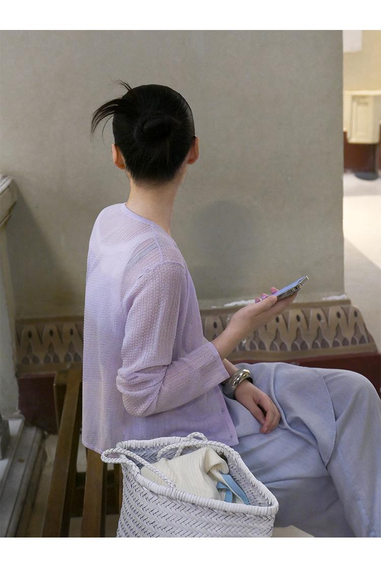 [Bienestar para Fans] Suéter de Manga Larga Mezclado con Tencel Ligero y Transpirable Blusa de Botonadura Sencilla Trendy 01168