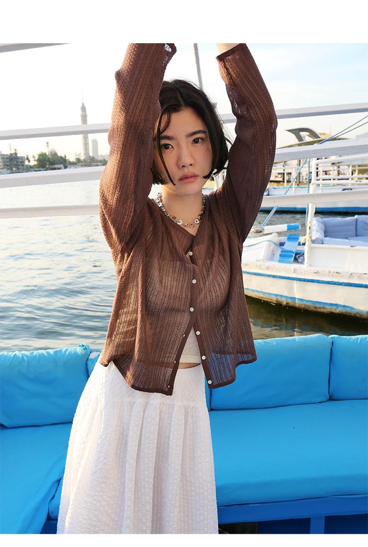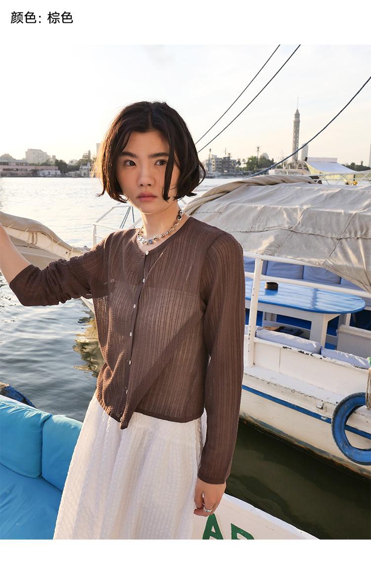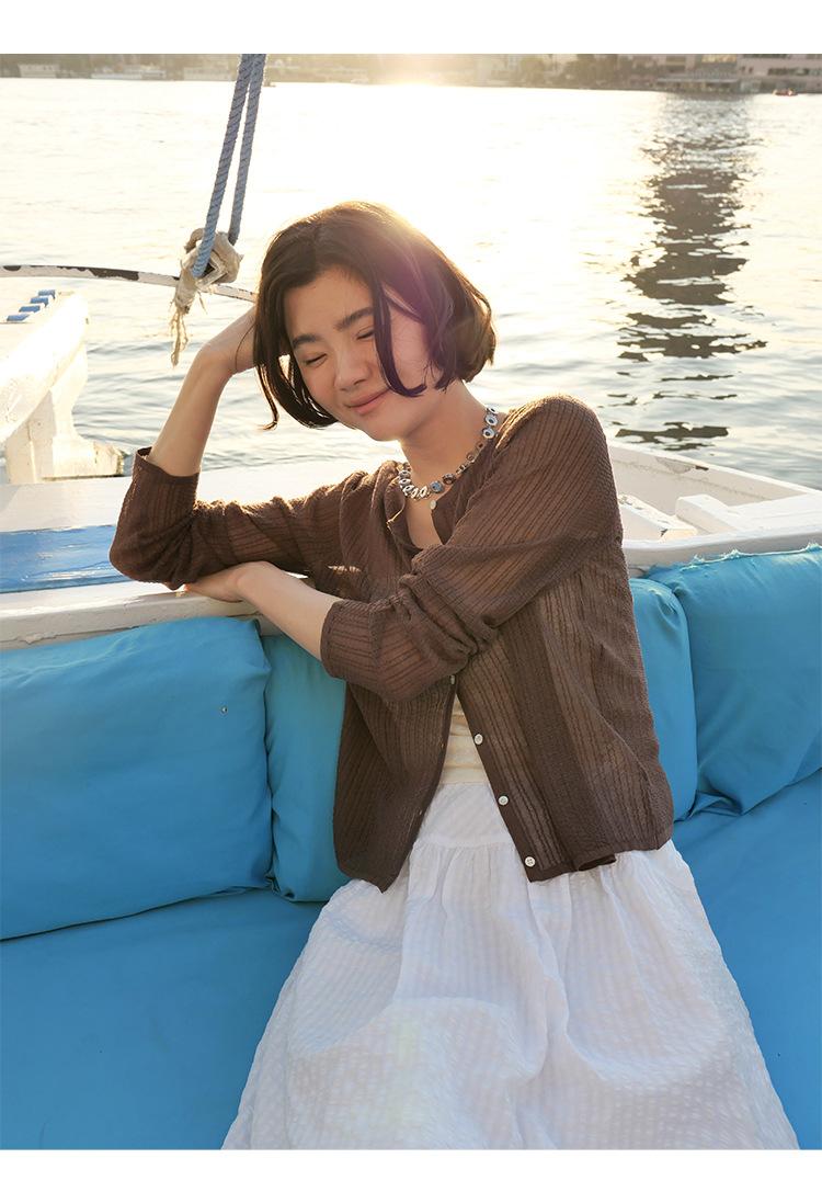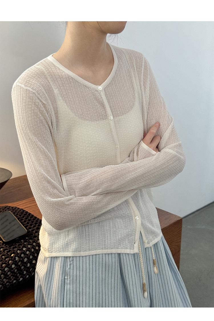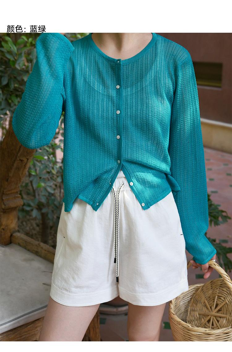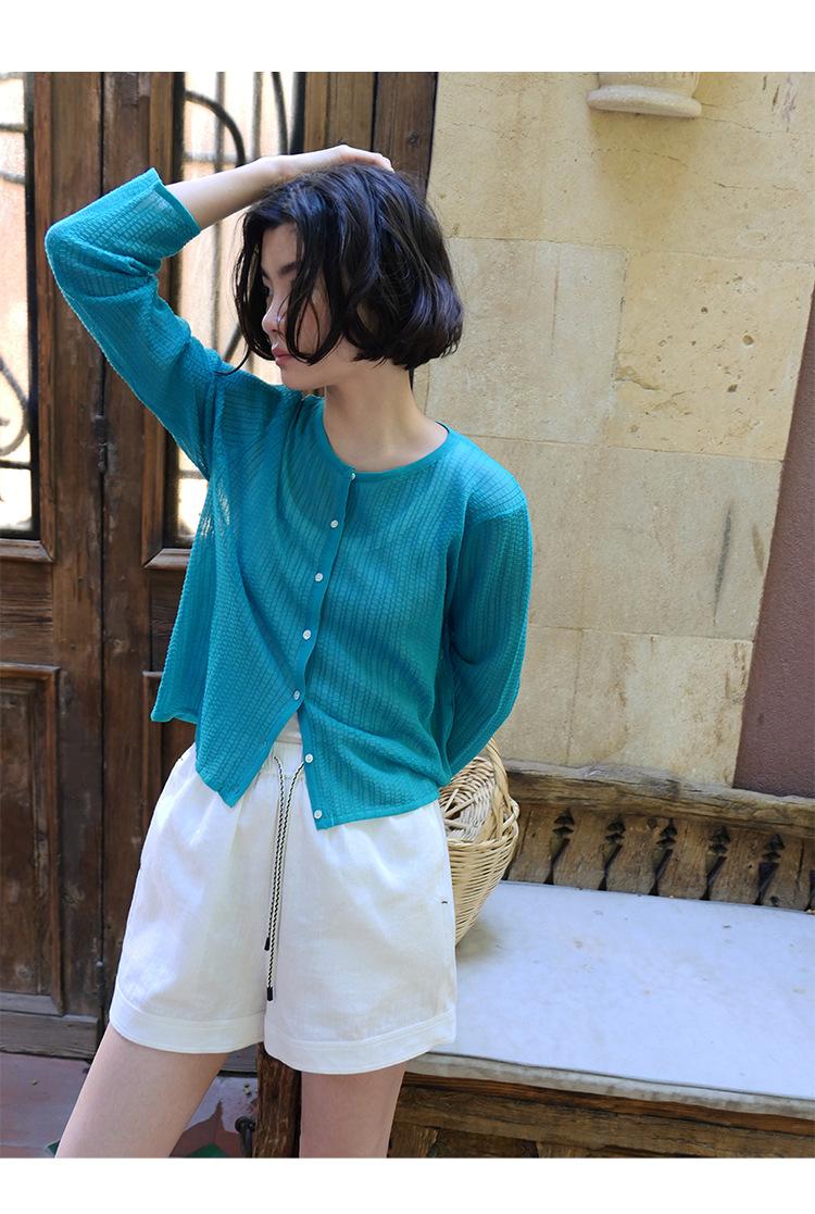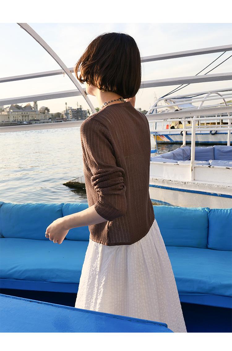 [Bienestar para Fans] Suéter de Manga Larga Mezclado con Tencel Ligero y Transpirable Blusa de Botonadura Sencilla Trendy 01168