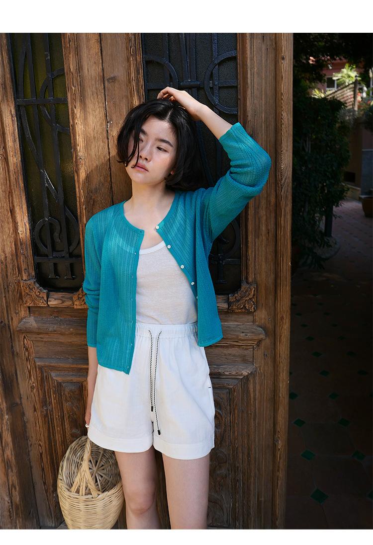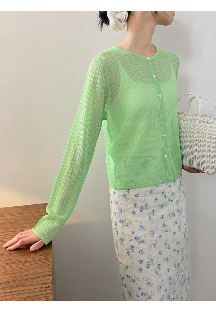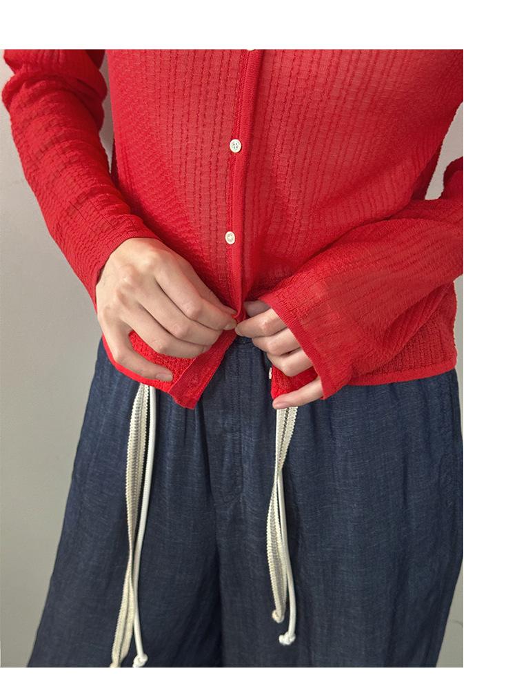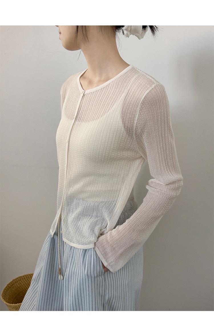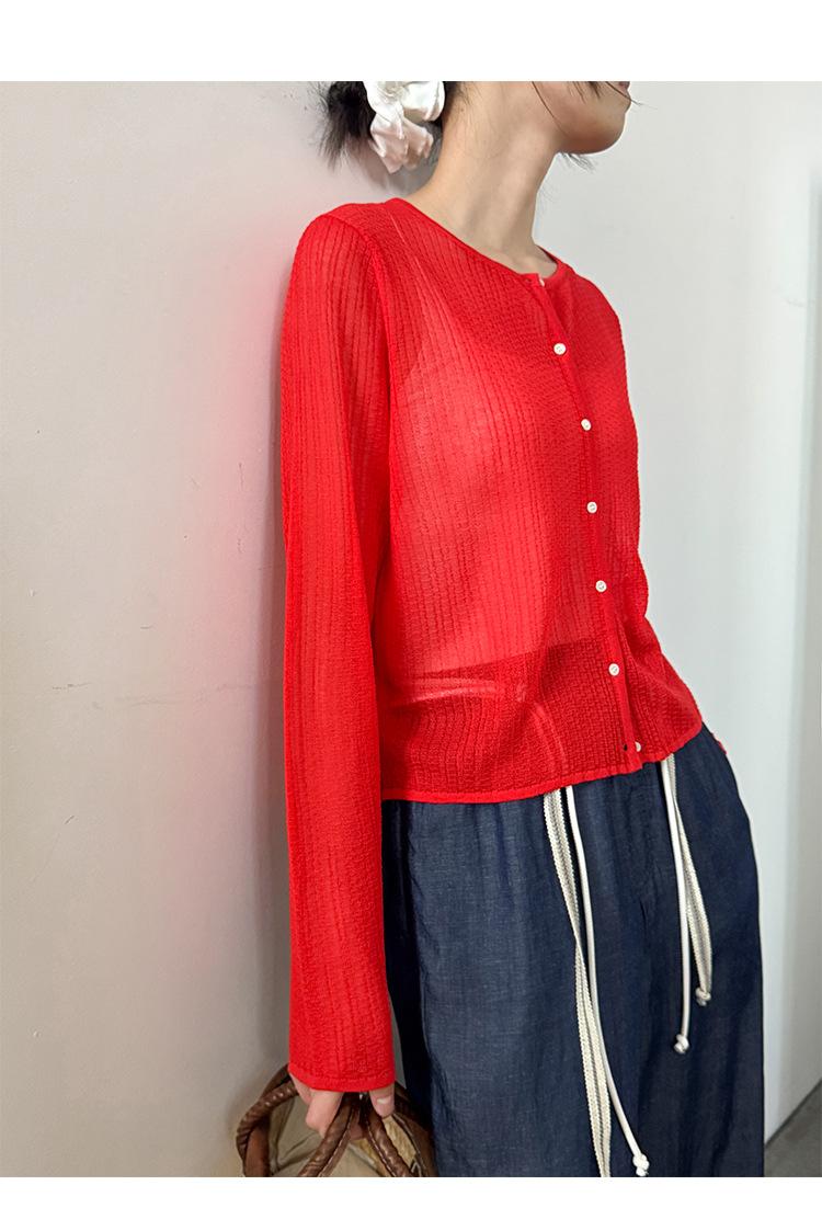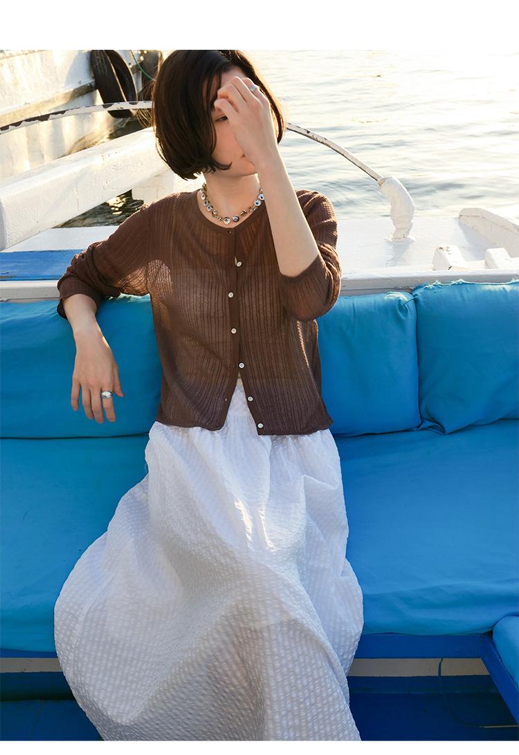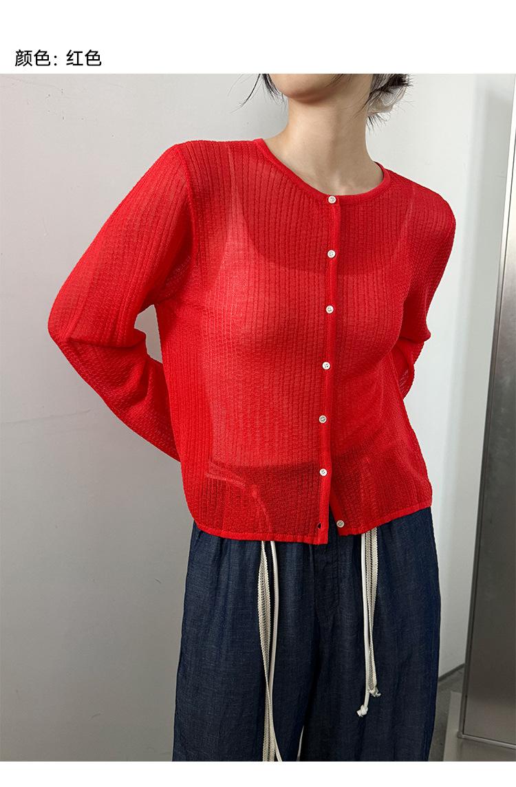 [Bienestar para Fans] Suéter de Manga Larga Mezclado con Tencel Ligero y Transpirable Blusa de Botonadura Sencilla Trendy 01168