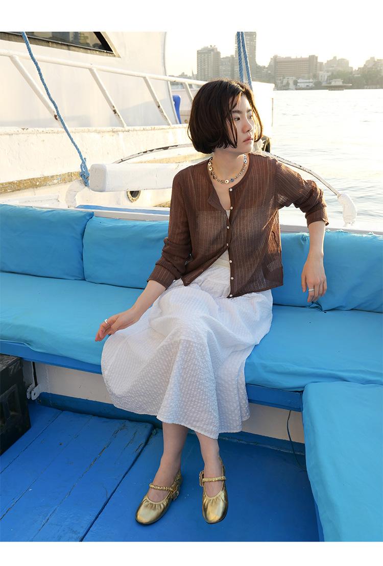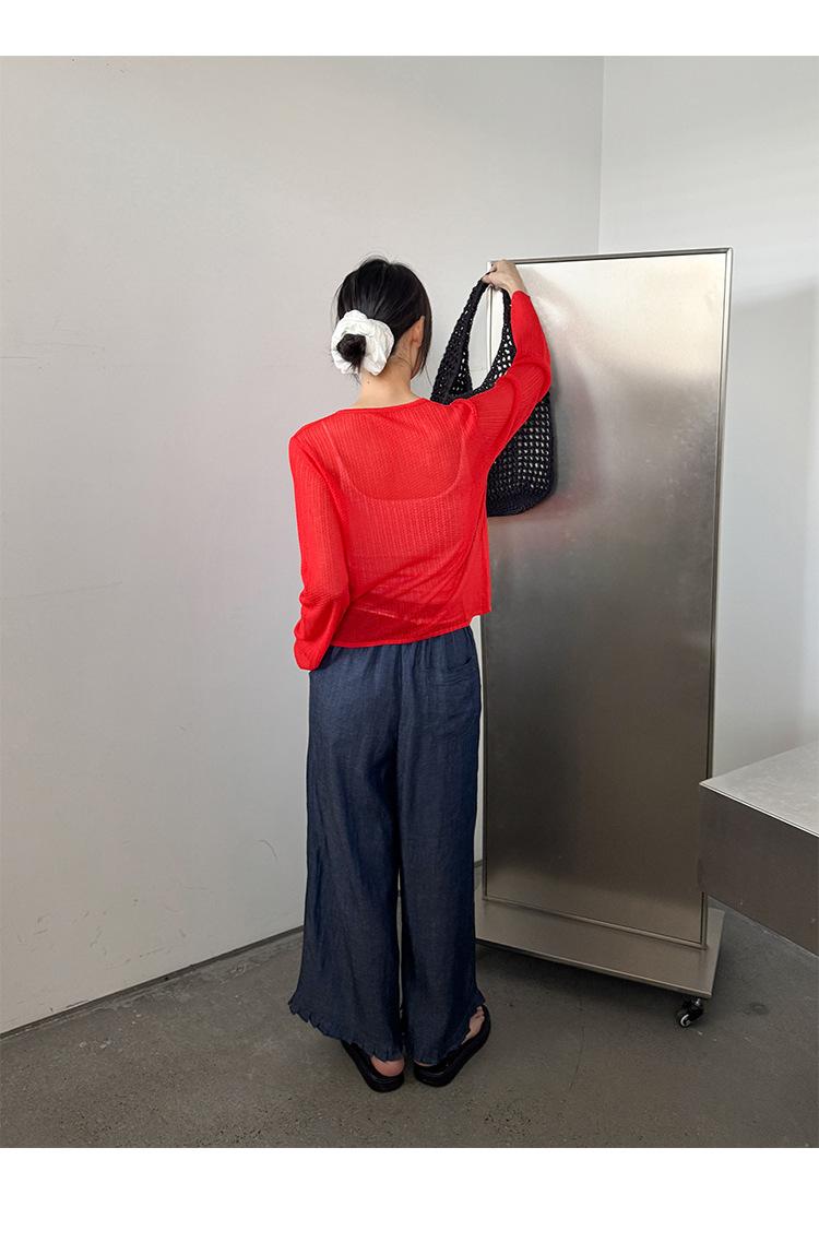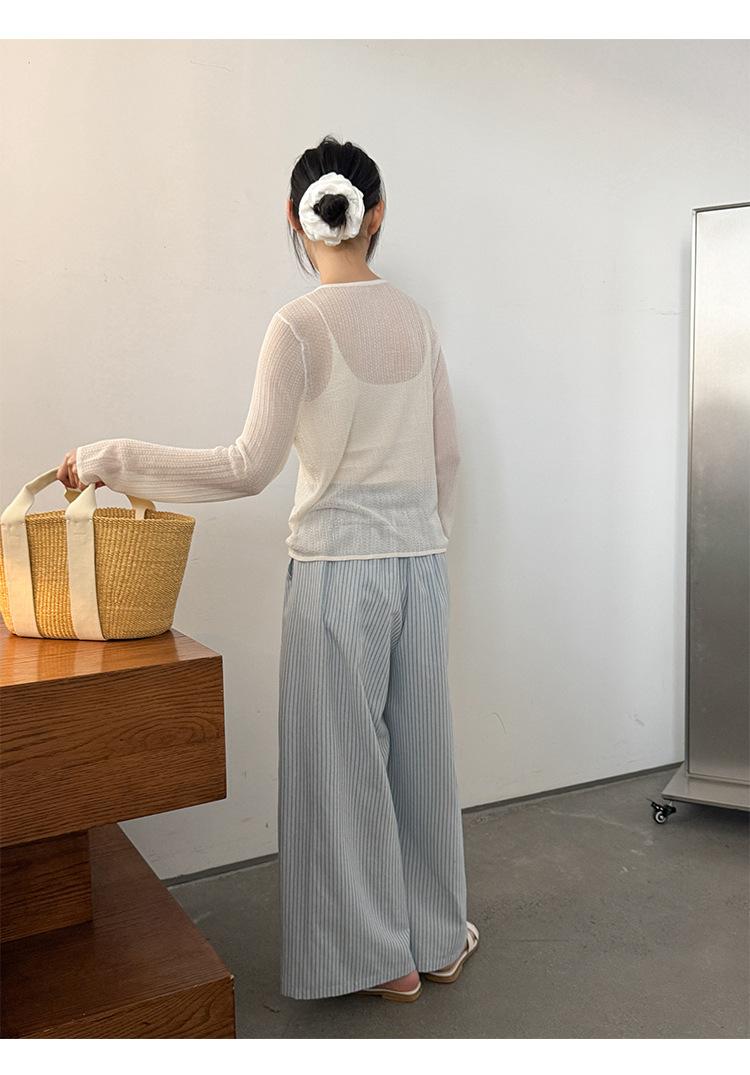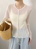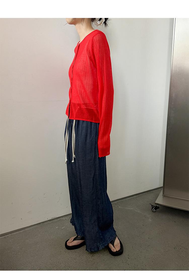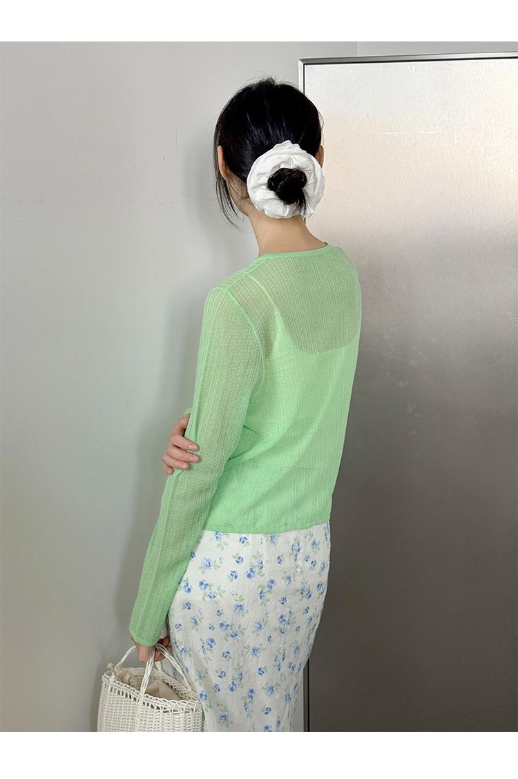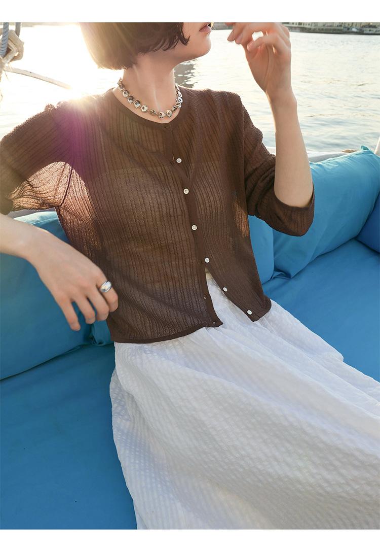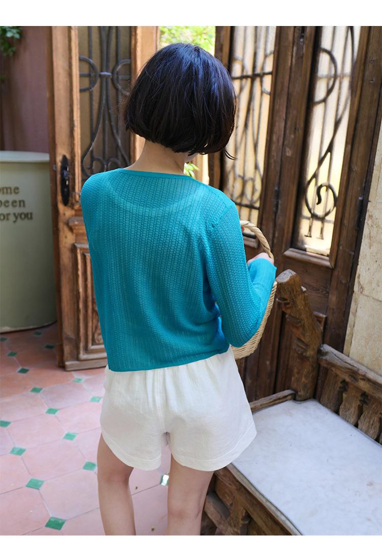 [Bienestar para Fans] Suéter de Manga Larga Mezclado con Tencel Ligero y Transpirable Blusa de Botonadura Sencilla Trendy 01168