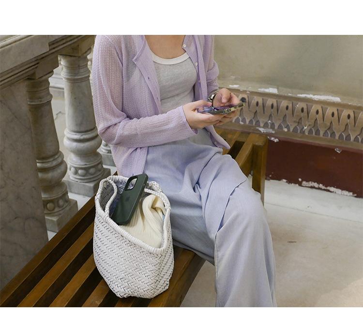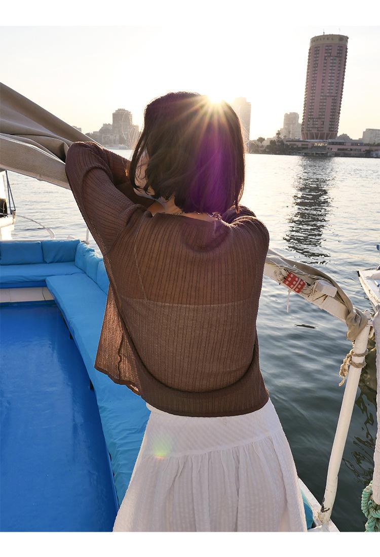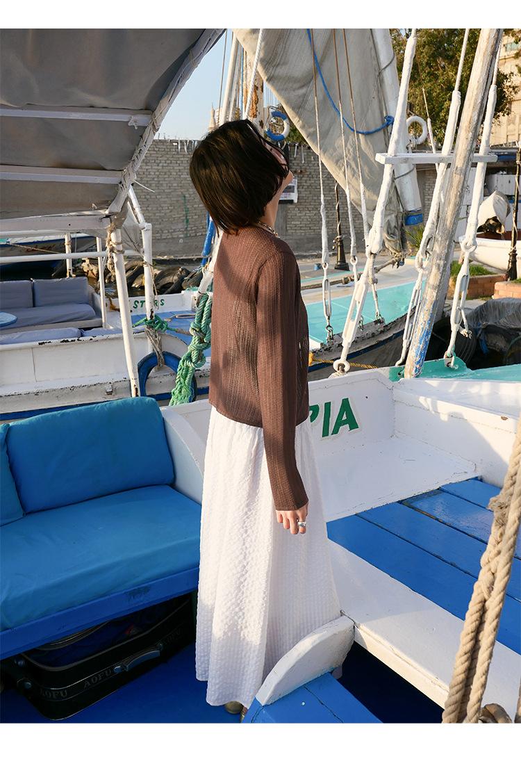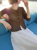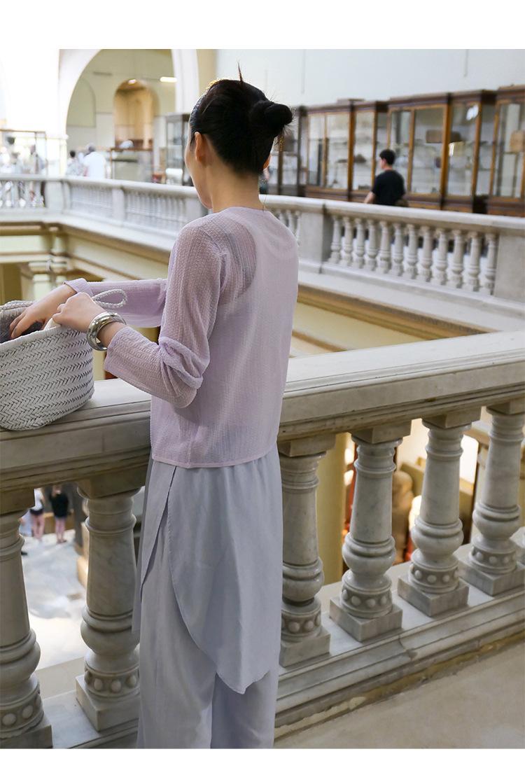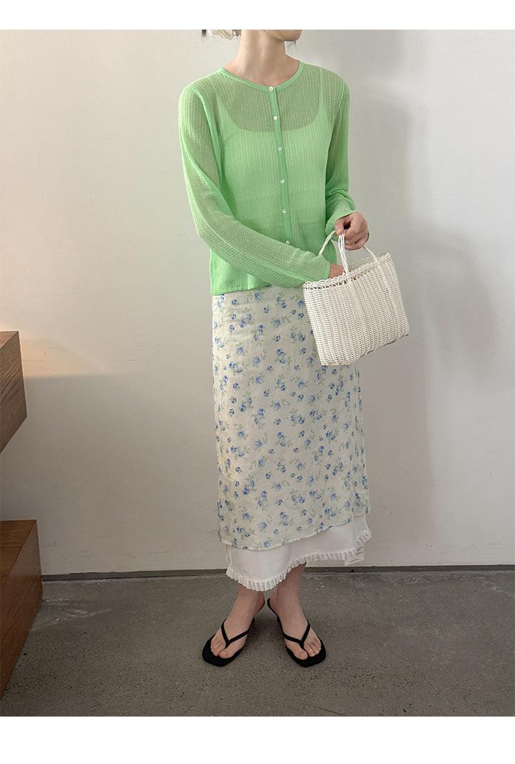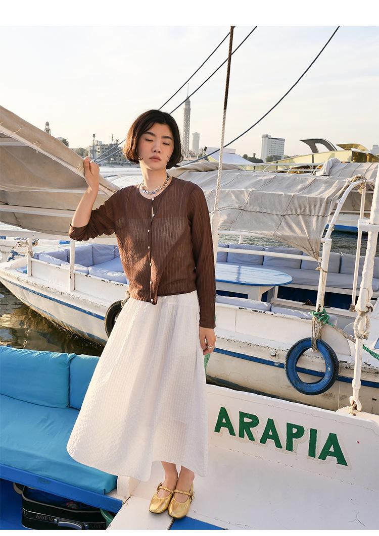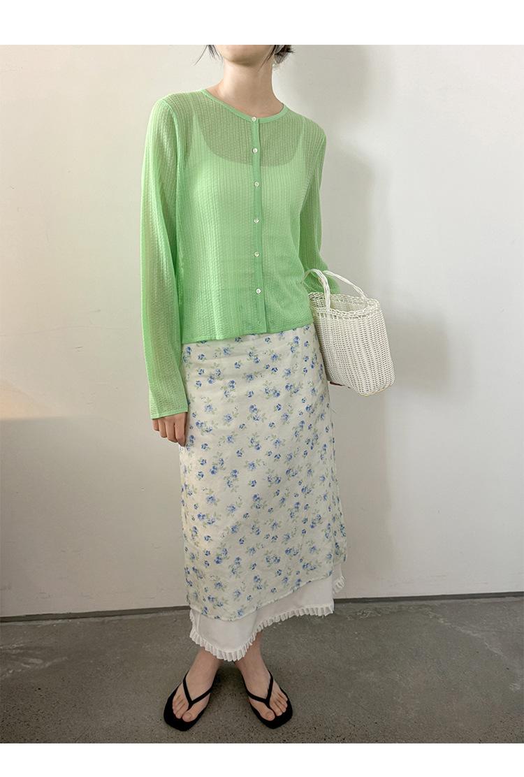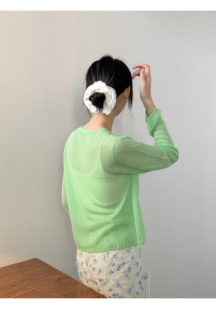 [Bienestar para Fans] Suéter de Manga Larga Mezclado con Tencel Ligero y Transpirable Blusa de Botonadura Sencilla Trendy 01168