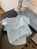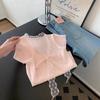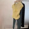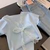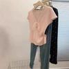 Camiseta de Punto de Manga Corta con Cuello en V y Lazo de Encaje para Mujer, Petite, Corta, de Hombro Recto y Corte Recto, Top con Sentido del Diseño
