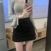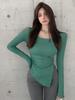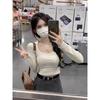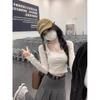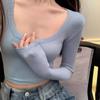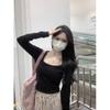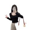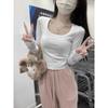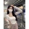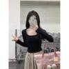 Dulce y Picante Cuello de Niña Ajustado Ropa Interior Top Manga Corta Larga para Mujer Primavera y Otoño Nuevo Chic Camiseta Básica Crop Top Deseo Puro