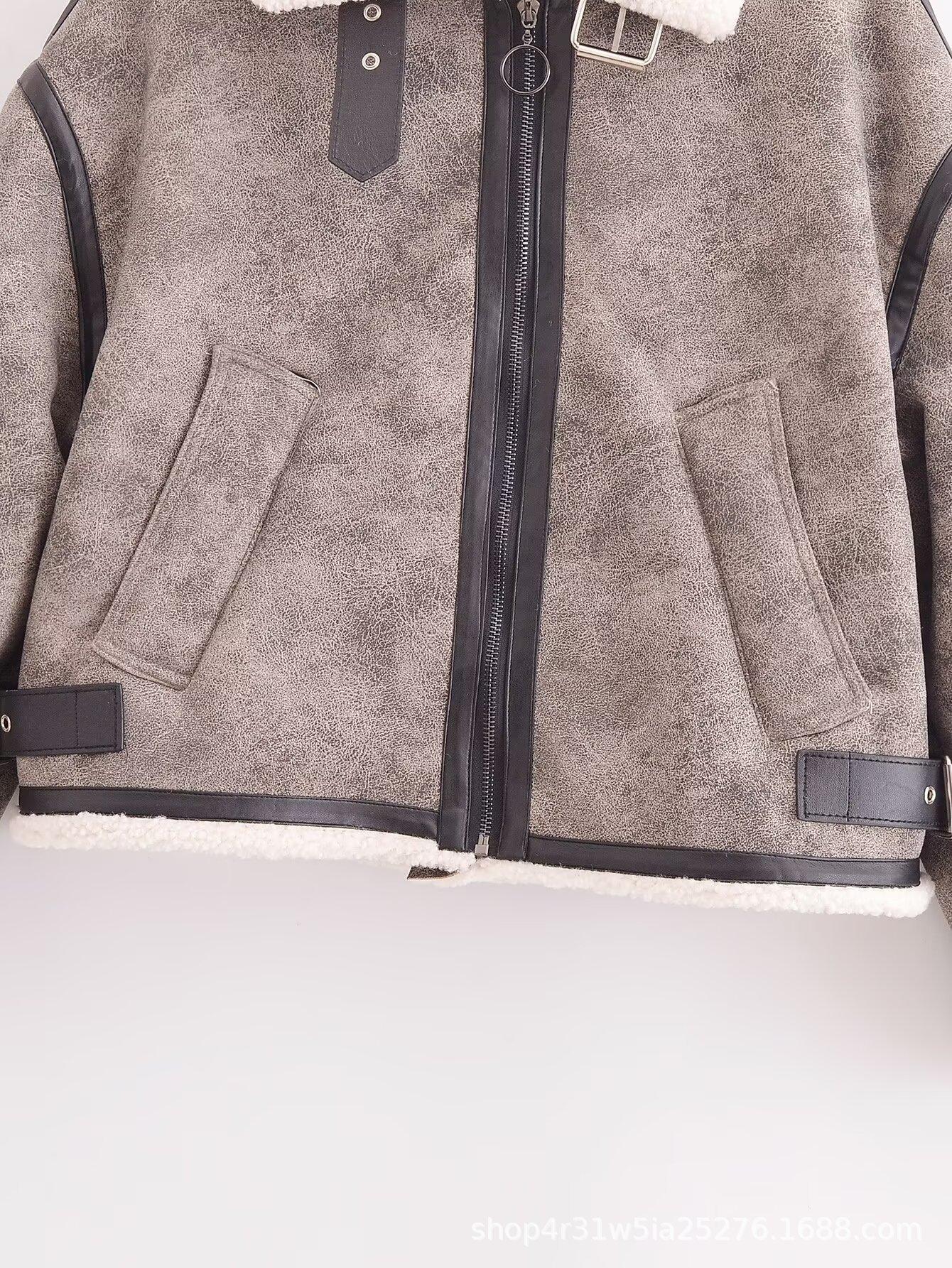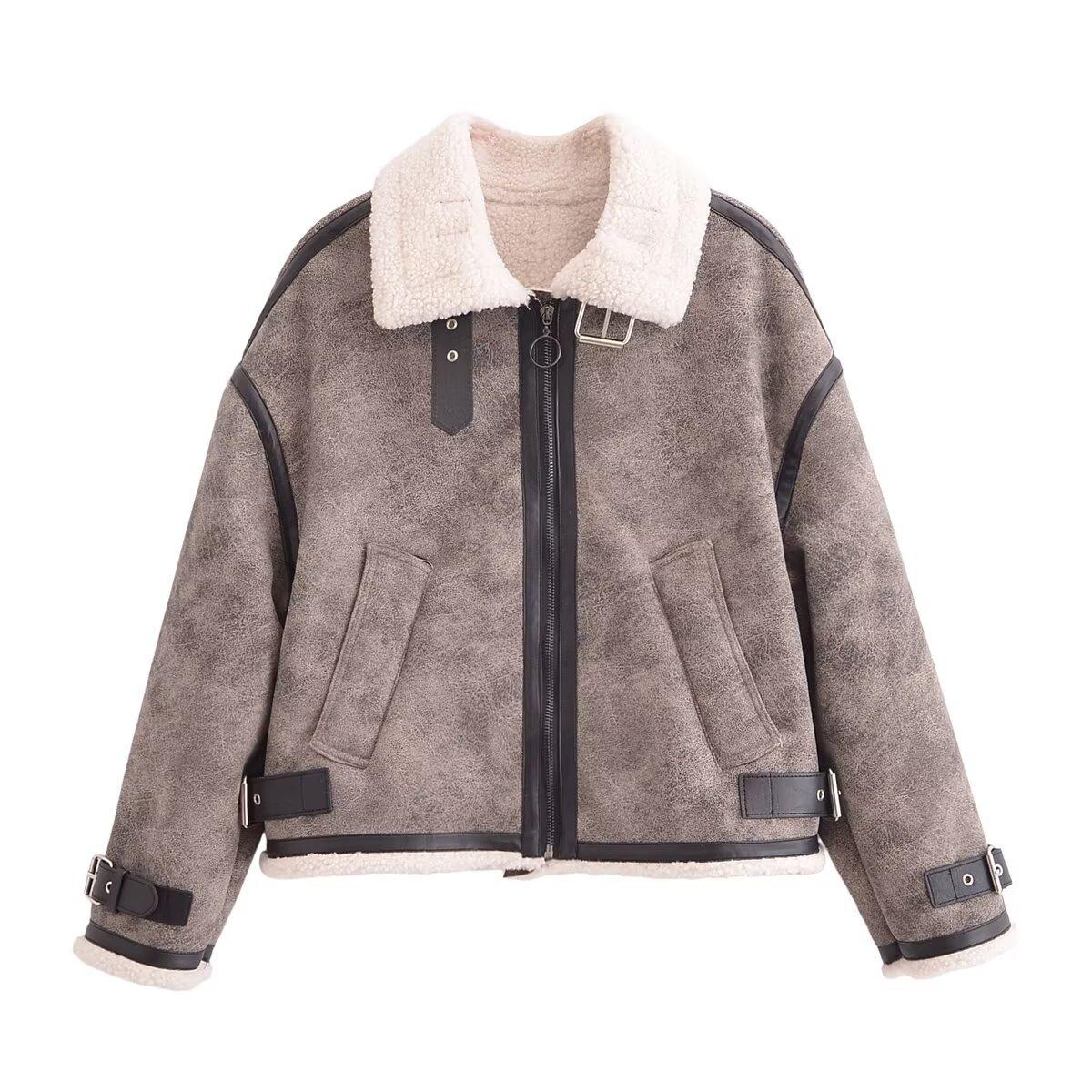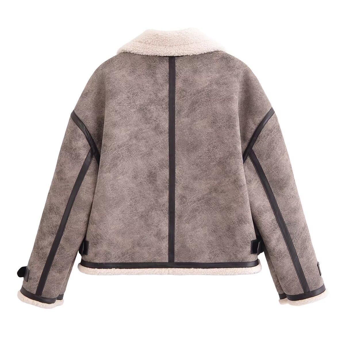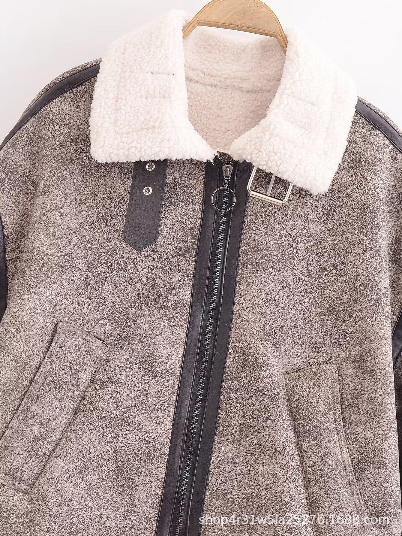 Ropa de mujer transfronteriza estilo europeo y americano 2024 invierno nuevo moda callejera abrigo chaqueta de gamuza de piel