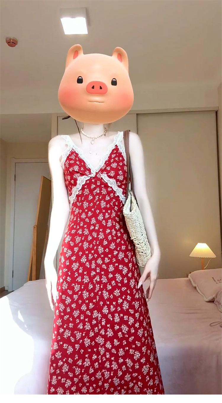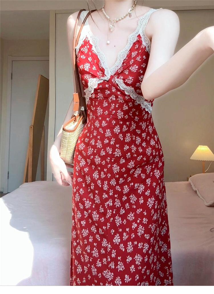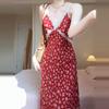 Vestido Rojo Floral con Tirantes para Vacaciones en la Playa para Mujer Verano 2025 Nuevo Estilo Popular Petite Elegante Falda Larga