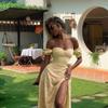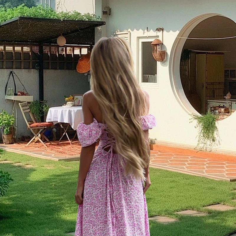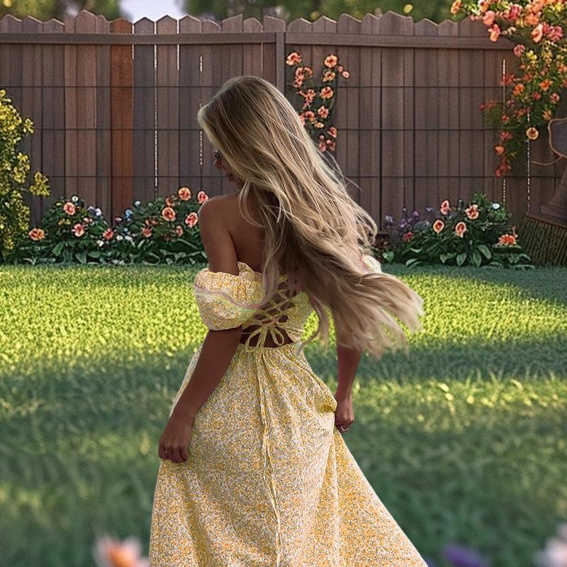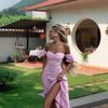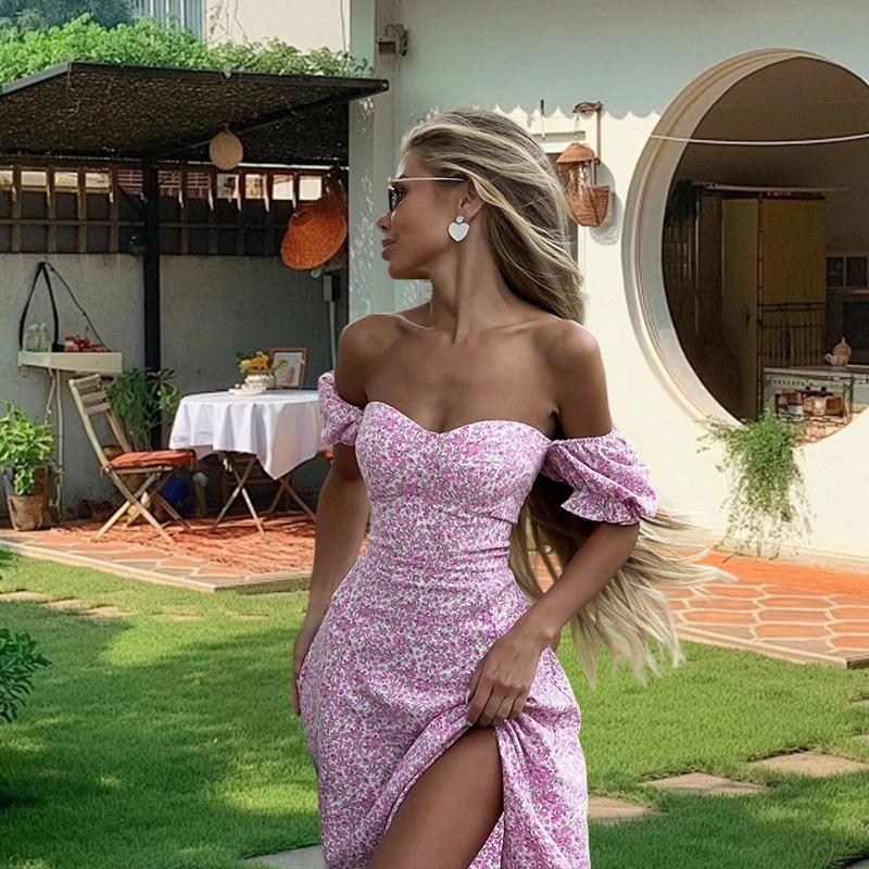Moda Europea y Americana Falda Floral Pequeña de Cintura Alta y Corte Slim 2025 Verano Nuevo Vestido Sexy de Cintura con Abertura Slim para Mujer