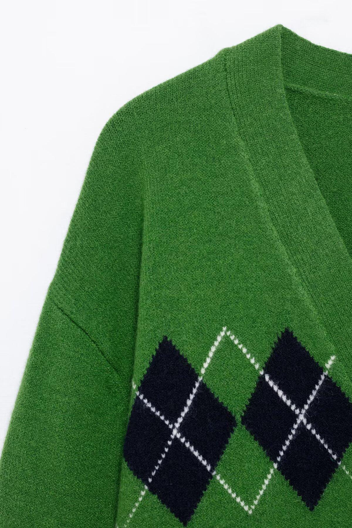 Cárdigan de punto rombo de estilo europeo y americano para mujer, comercio exterior transfronterizo, diseño nuevo de primavera, abrigo corto 5755019