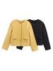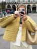 Abrigo de algodón a cuadros de estilo europeo y americano para mujer, invierno, cuello redondo, manga larga, cruzado