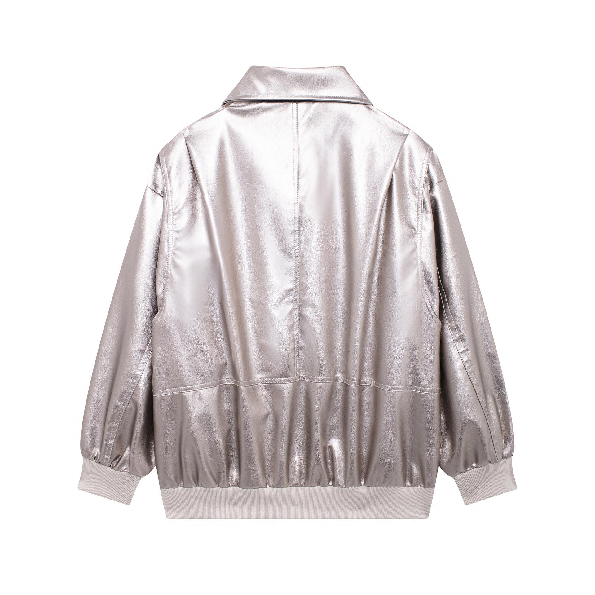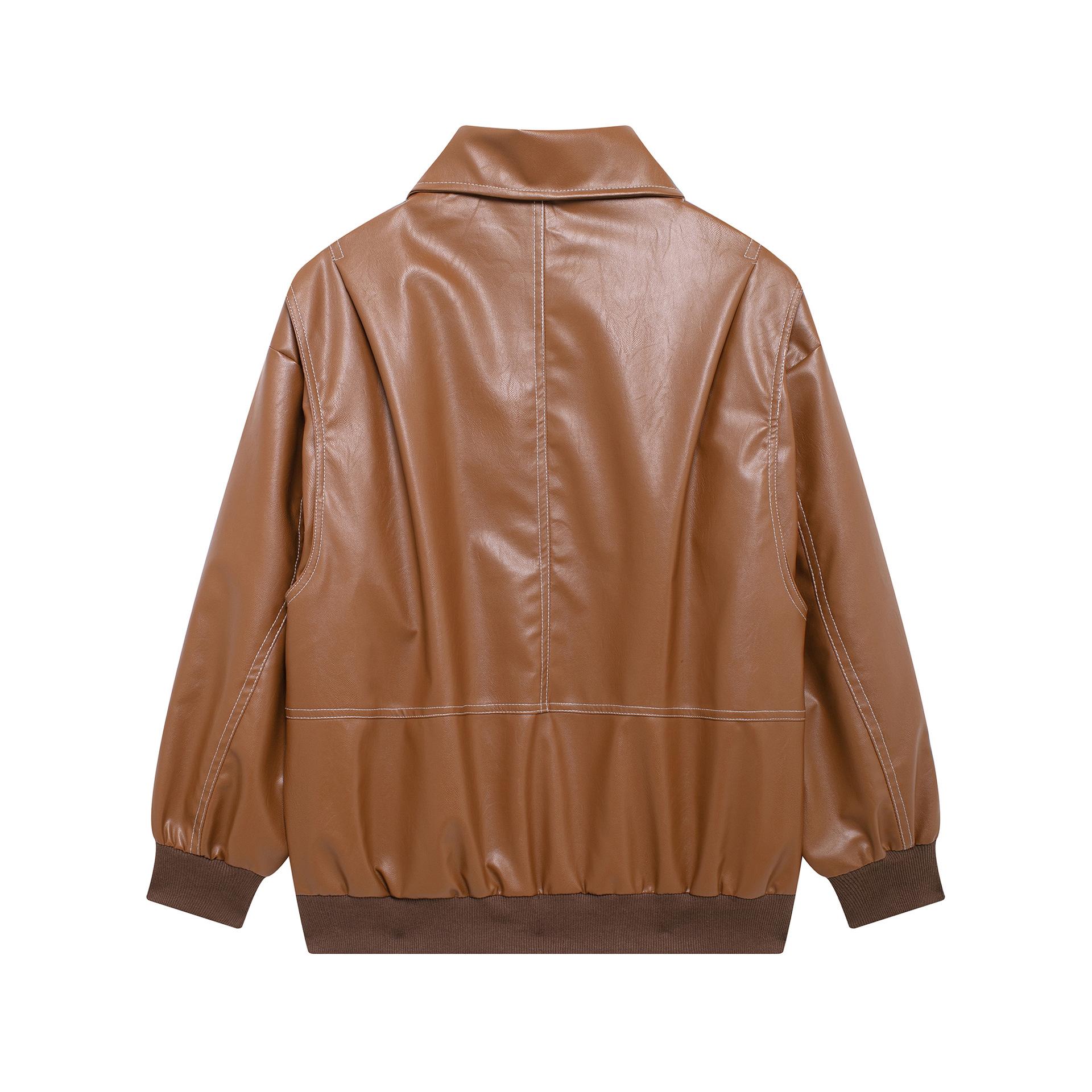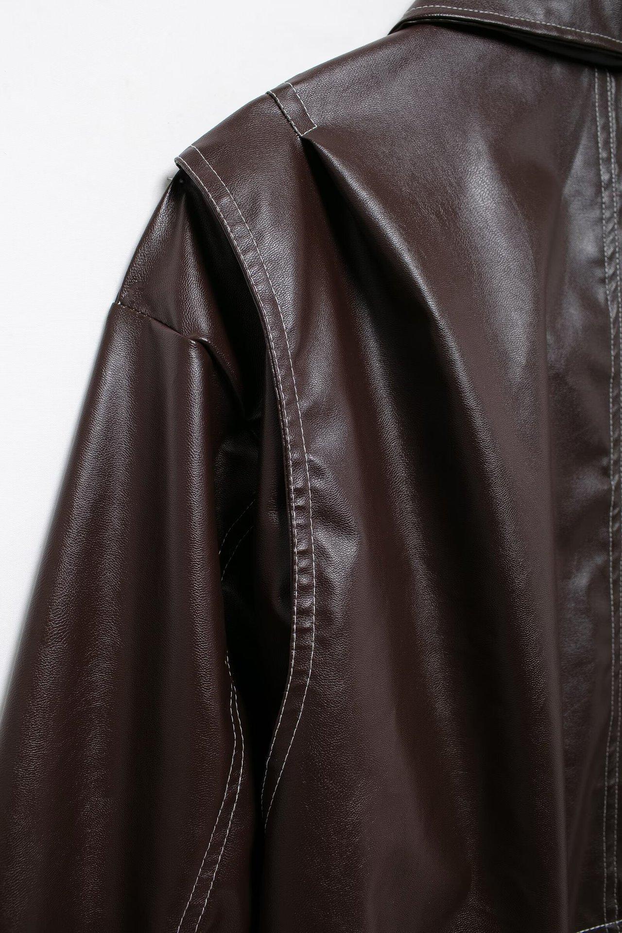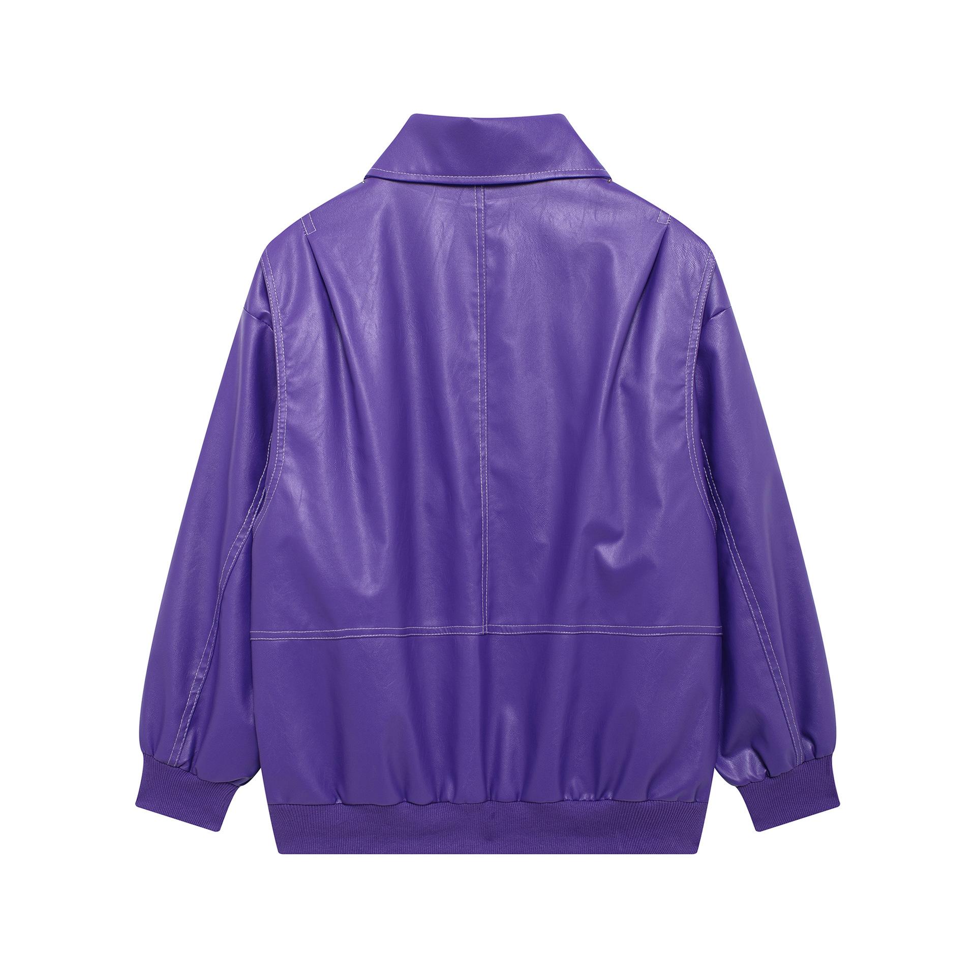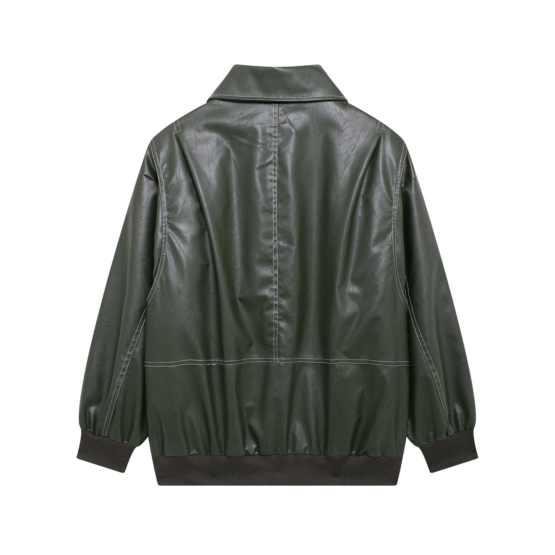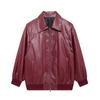 Ropa de Otoño para Mujer 2024 Nuevo Estilo Europeo y Americano Simple Retro Borgoña Cuello Alto Chaqueta Holgada
