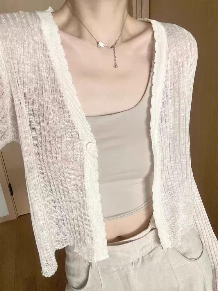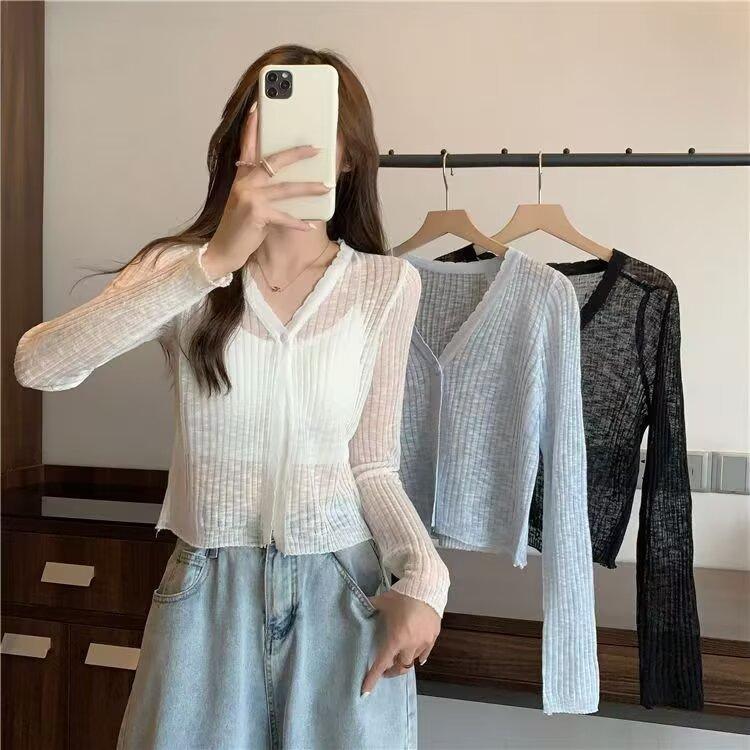 Cárdigan de Punto Protector Solar Nuevo de Verano 2025 Chal Suelto para Mujer Cubre Chaqueta para Aire Acondicionado Top de Temperamento de Moda Delgado