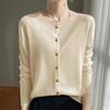 Primavera y Otoño 2024 Nueva Llegada Cárdigan de Punto de Lana Peinada con Cuello en V de Manga Larga para Mujer Sencillo de Color Sólido Holgado Combinable