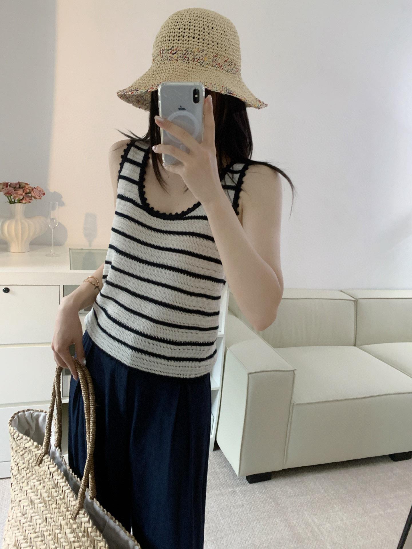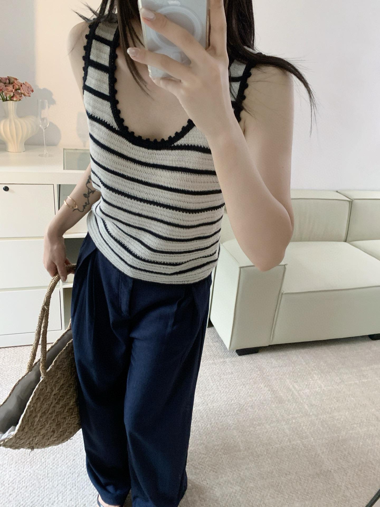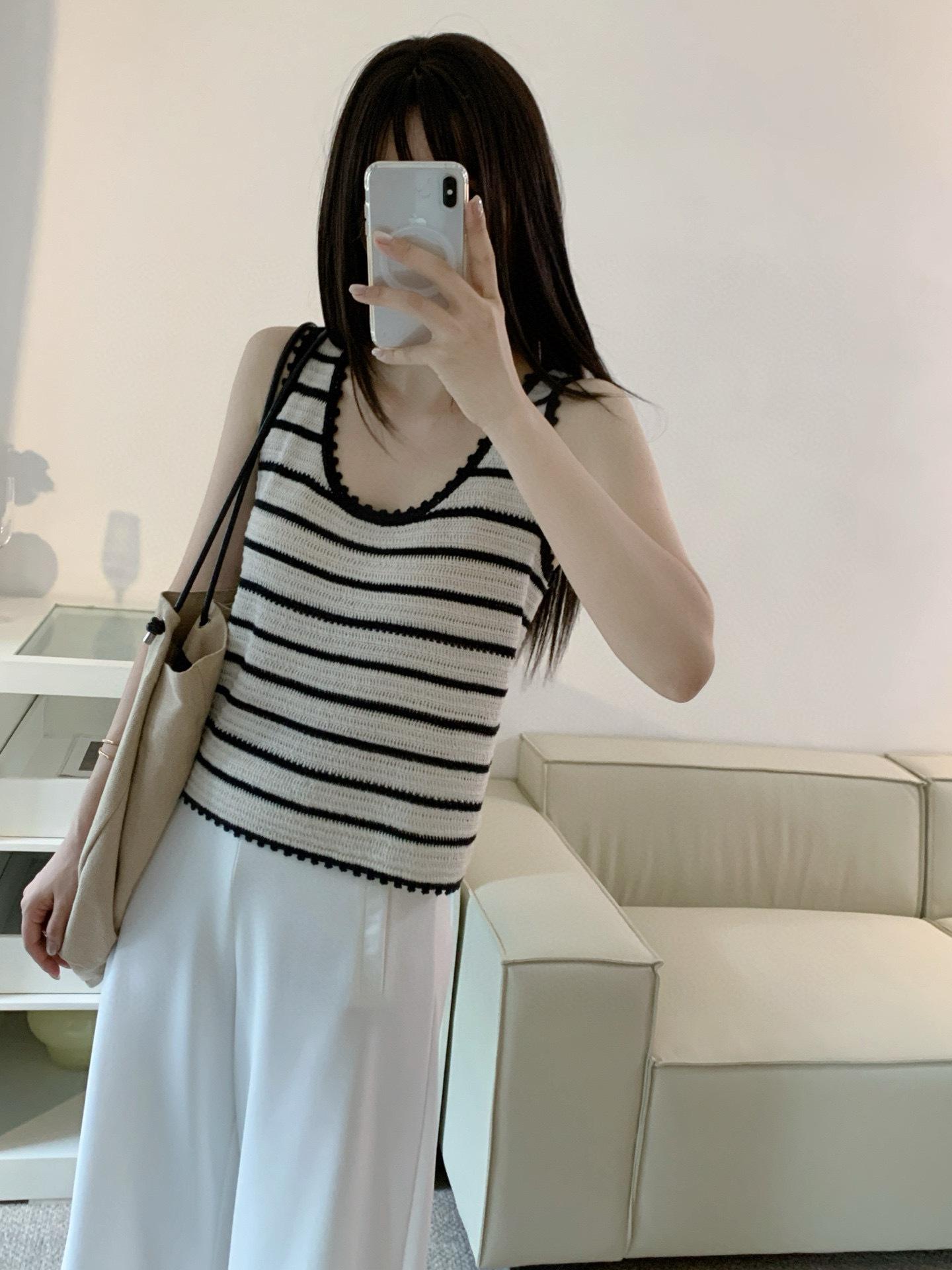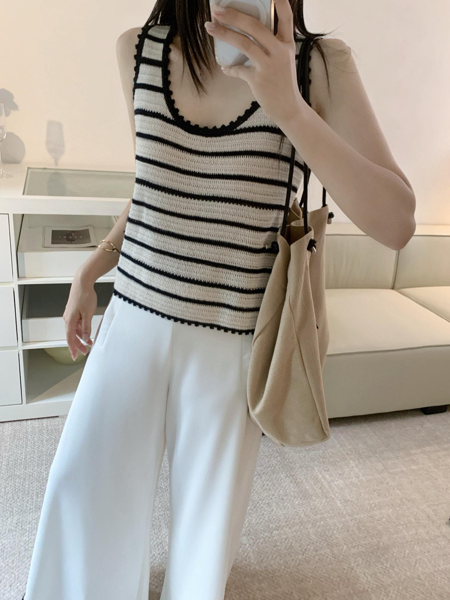 Blusa Top de Punto sin Mangas a Rayas Ligeras para Mujer Verano Nuevo Estilo