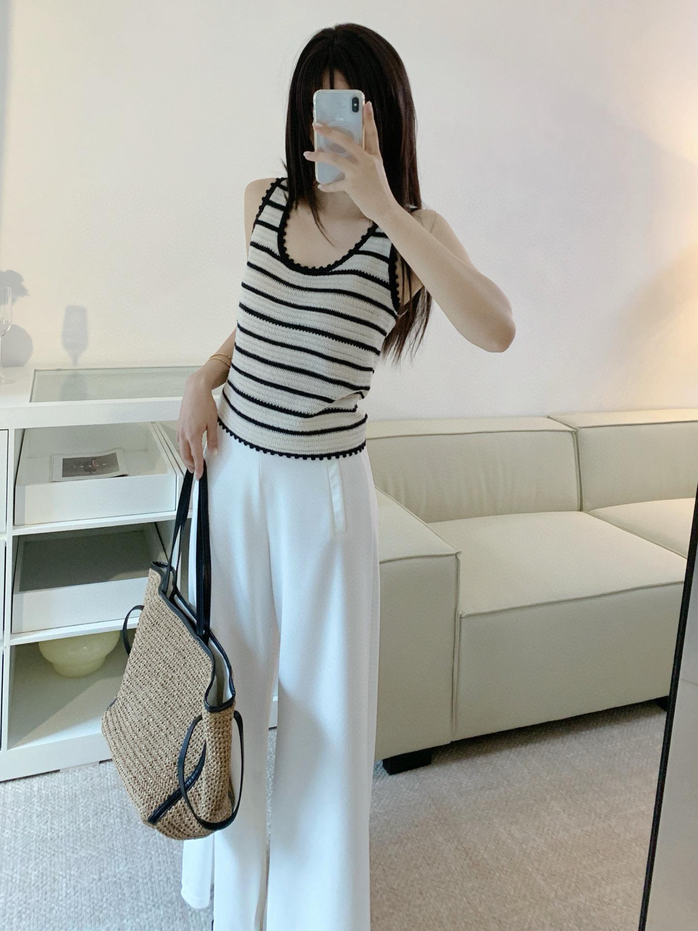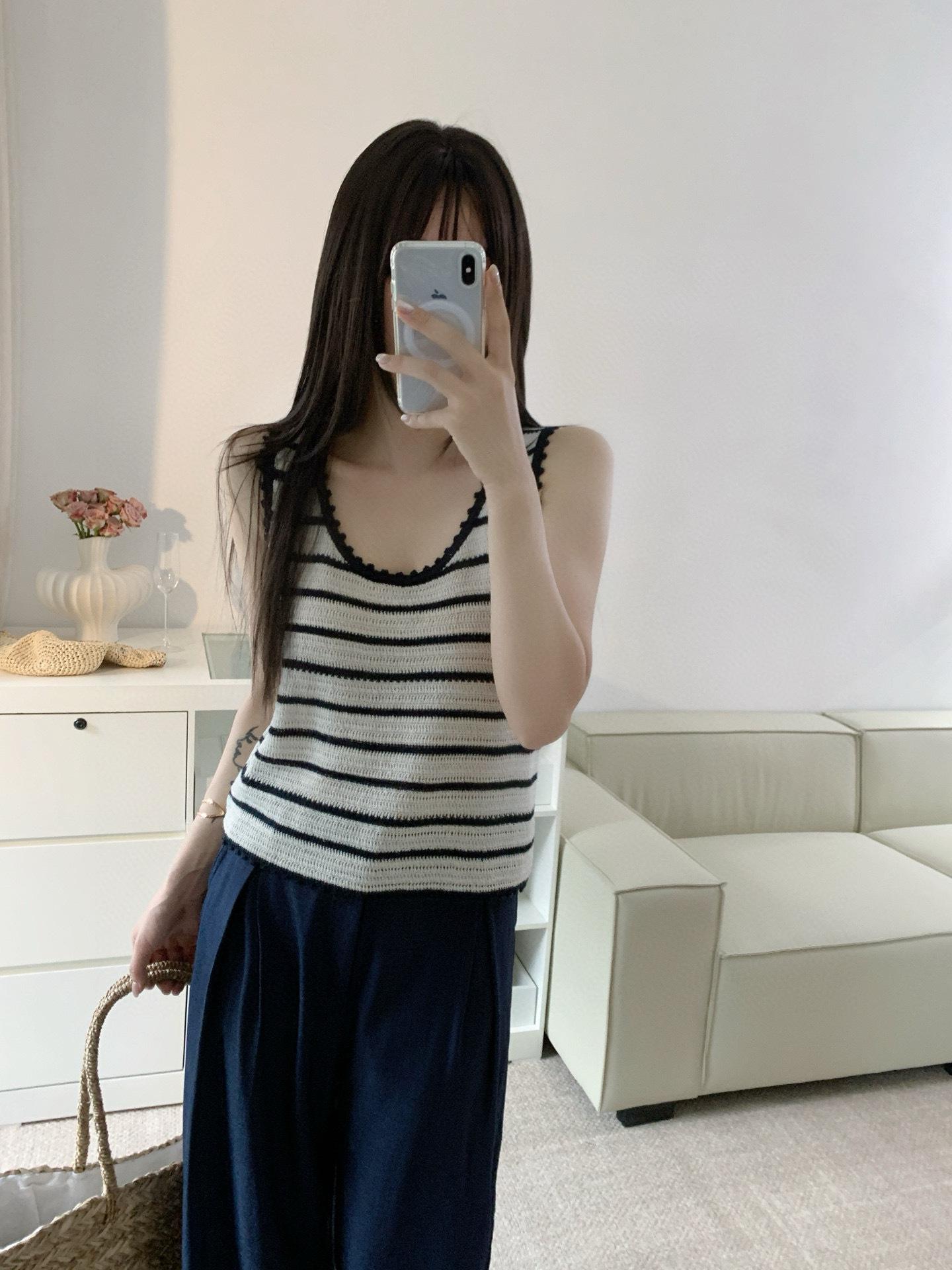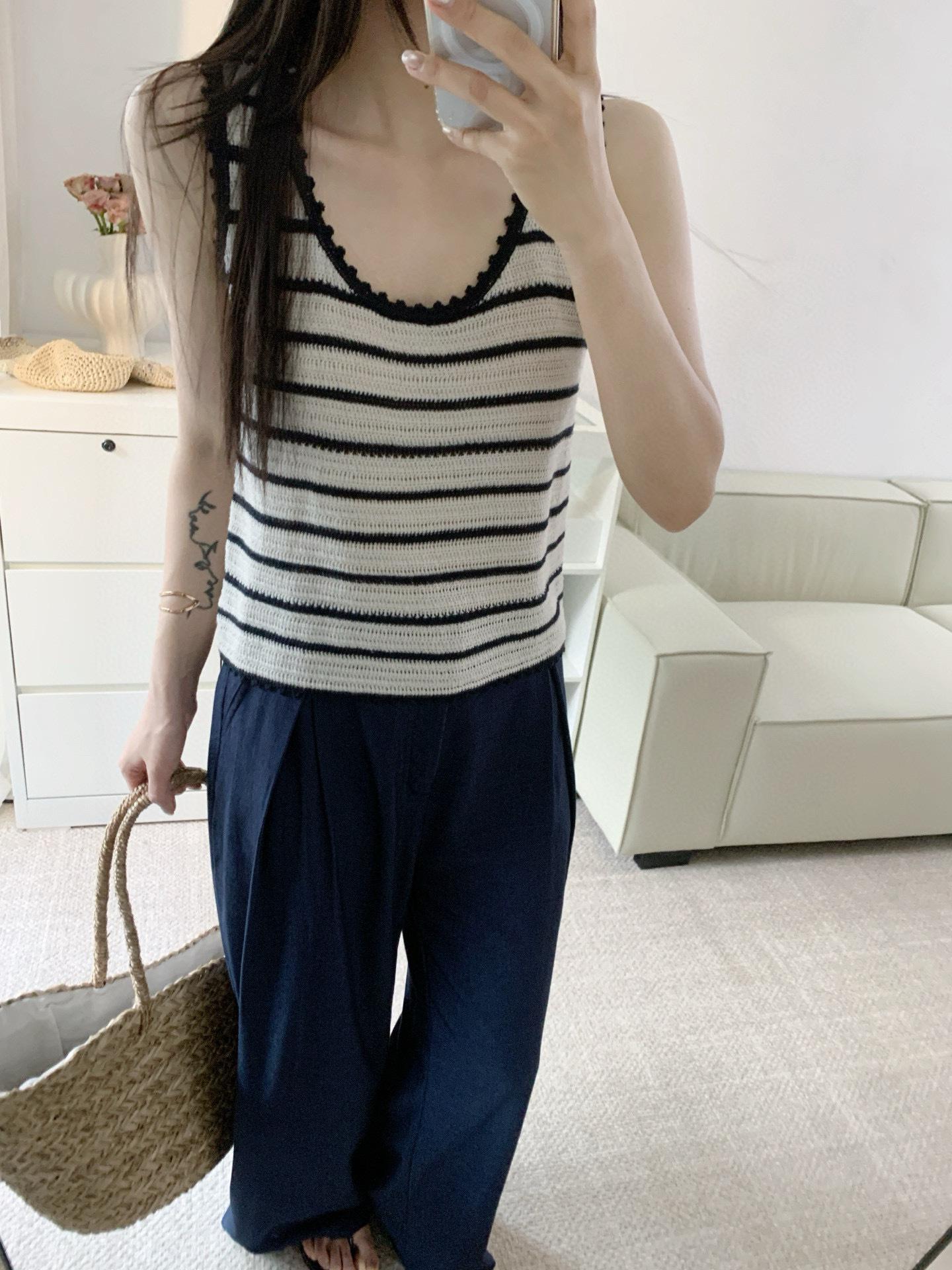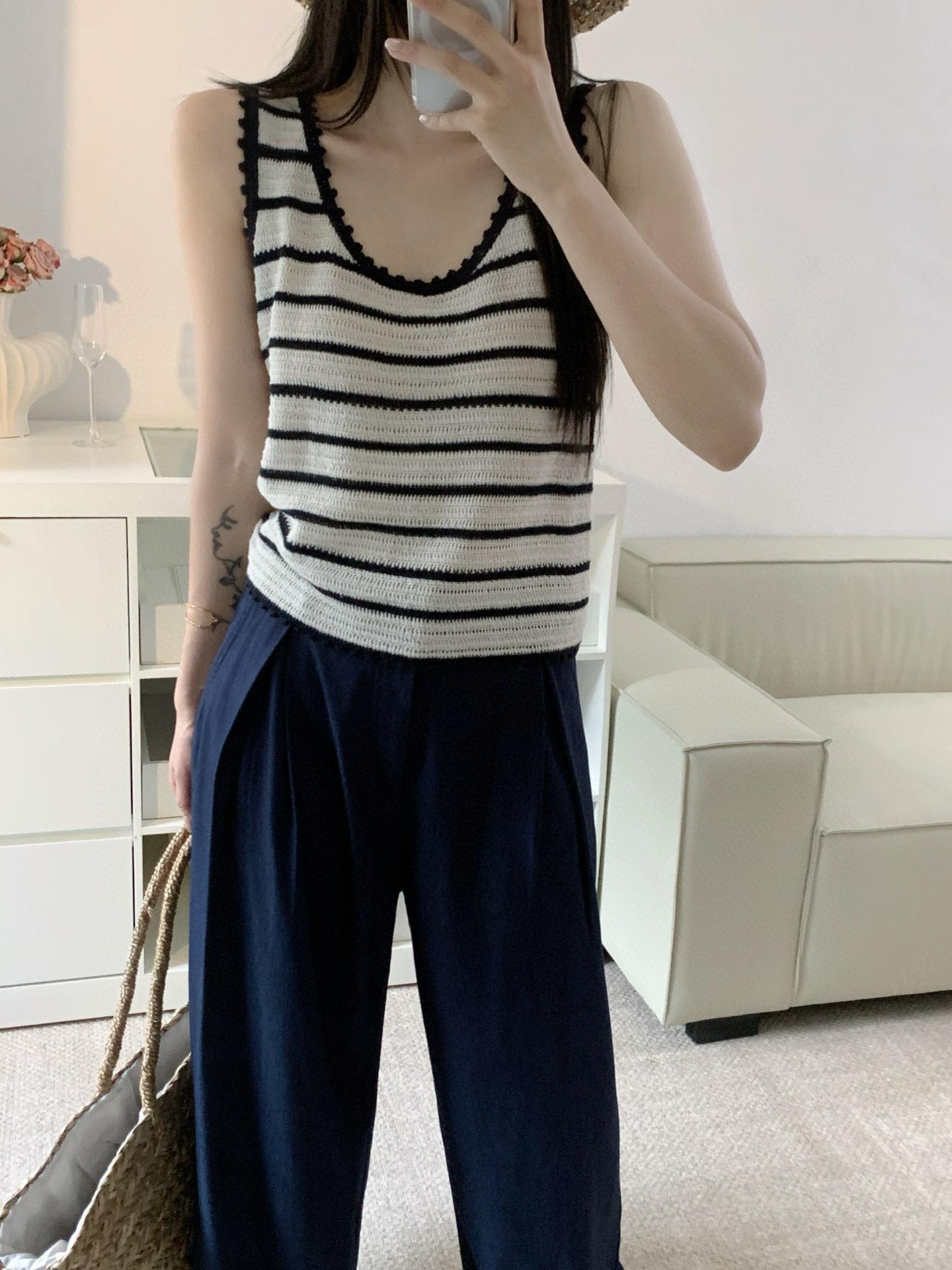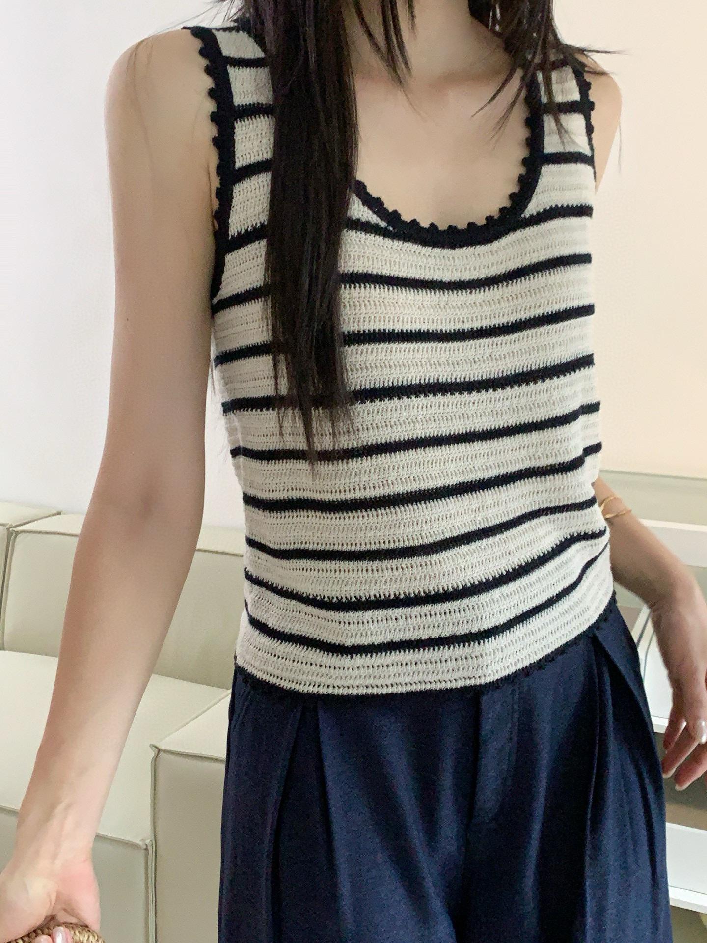 Blusa Top de Punto sin Mangas a Rayas Ligeras para Mujer Verano Nuevo Estilo