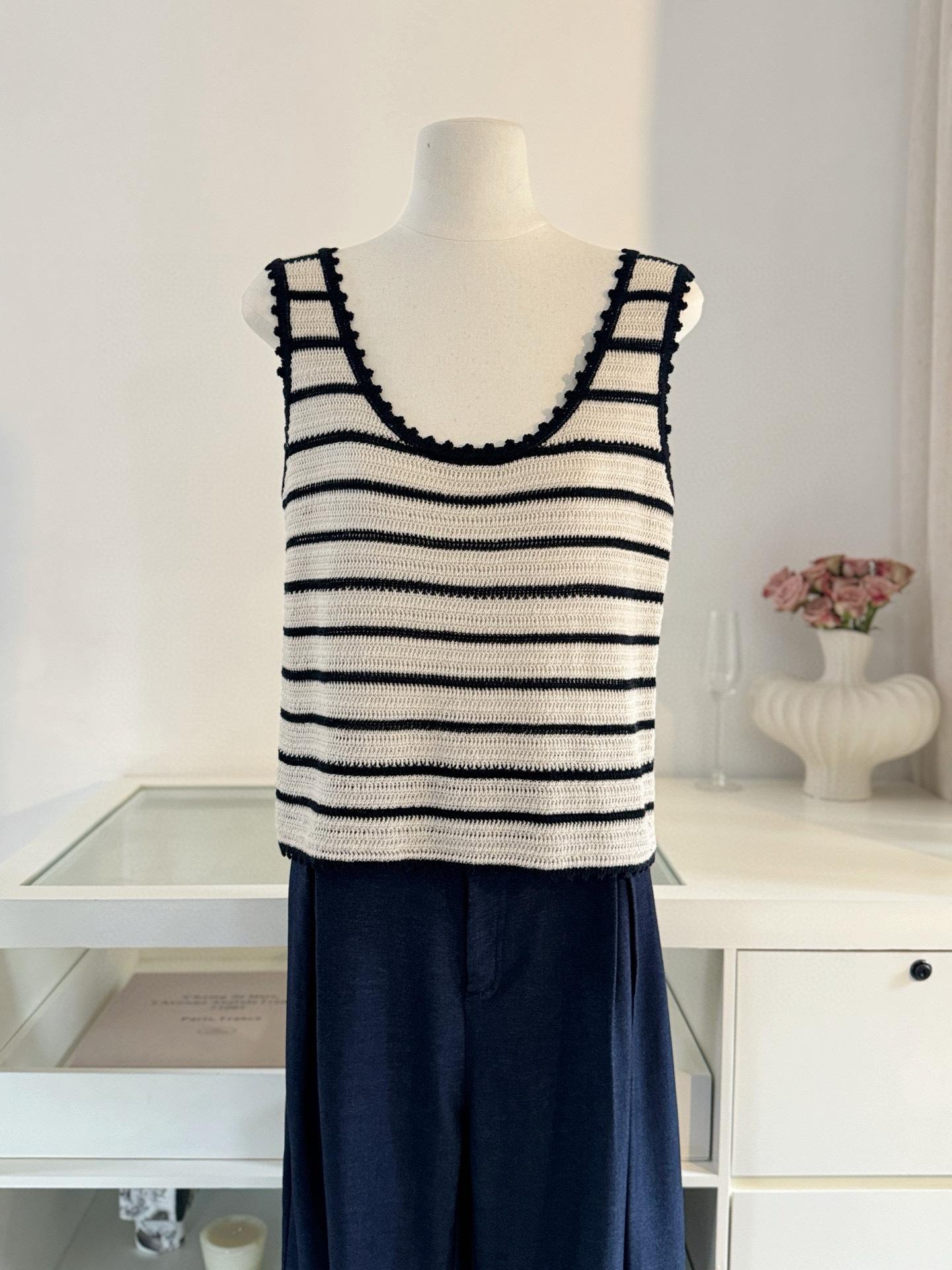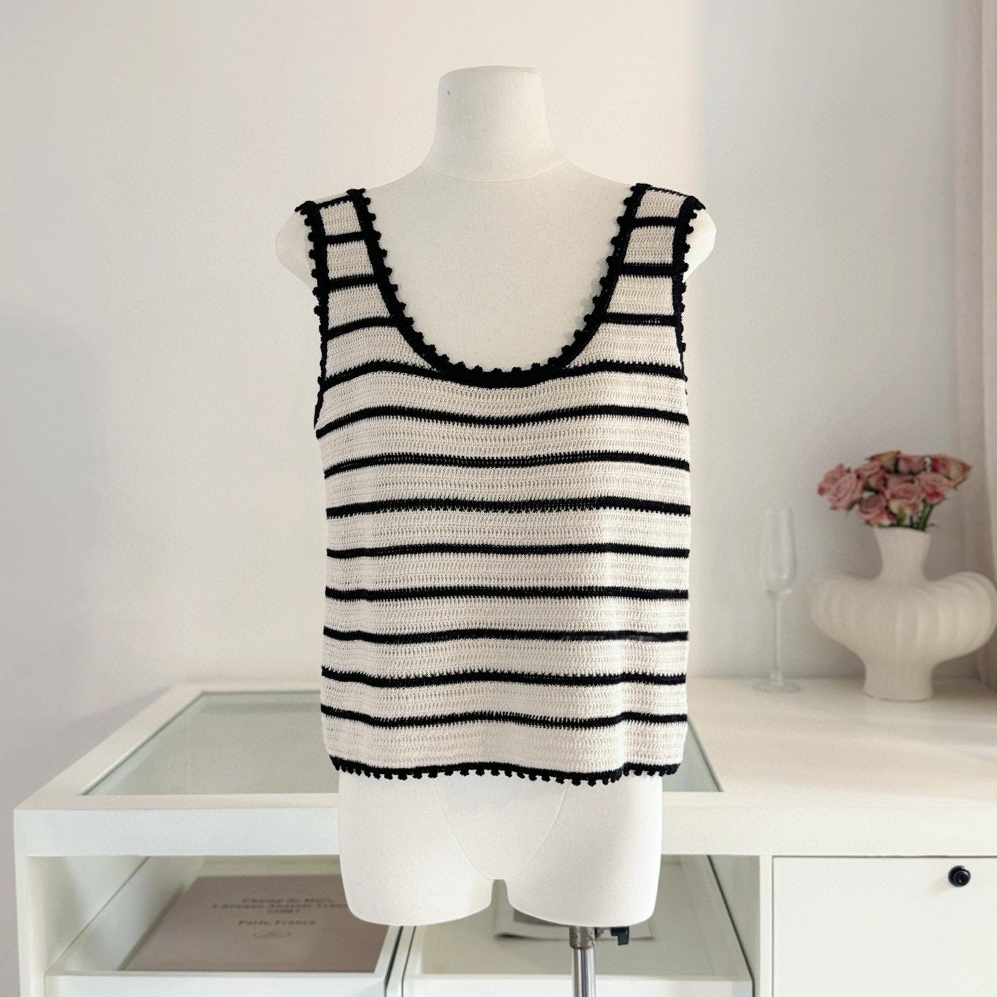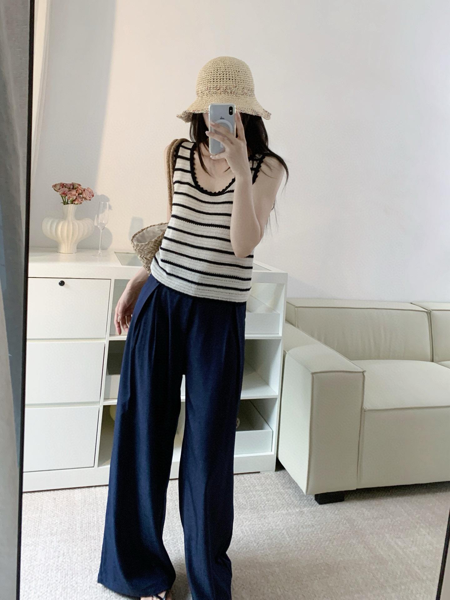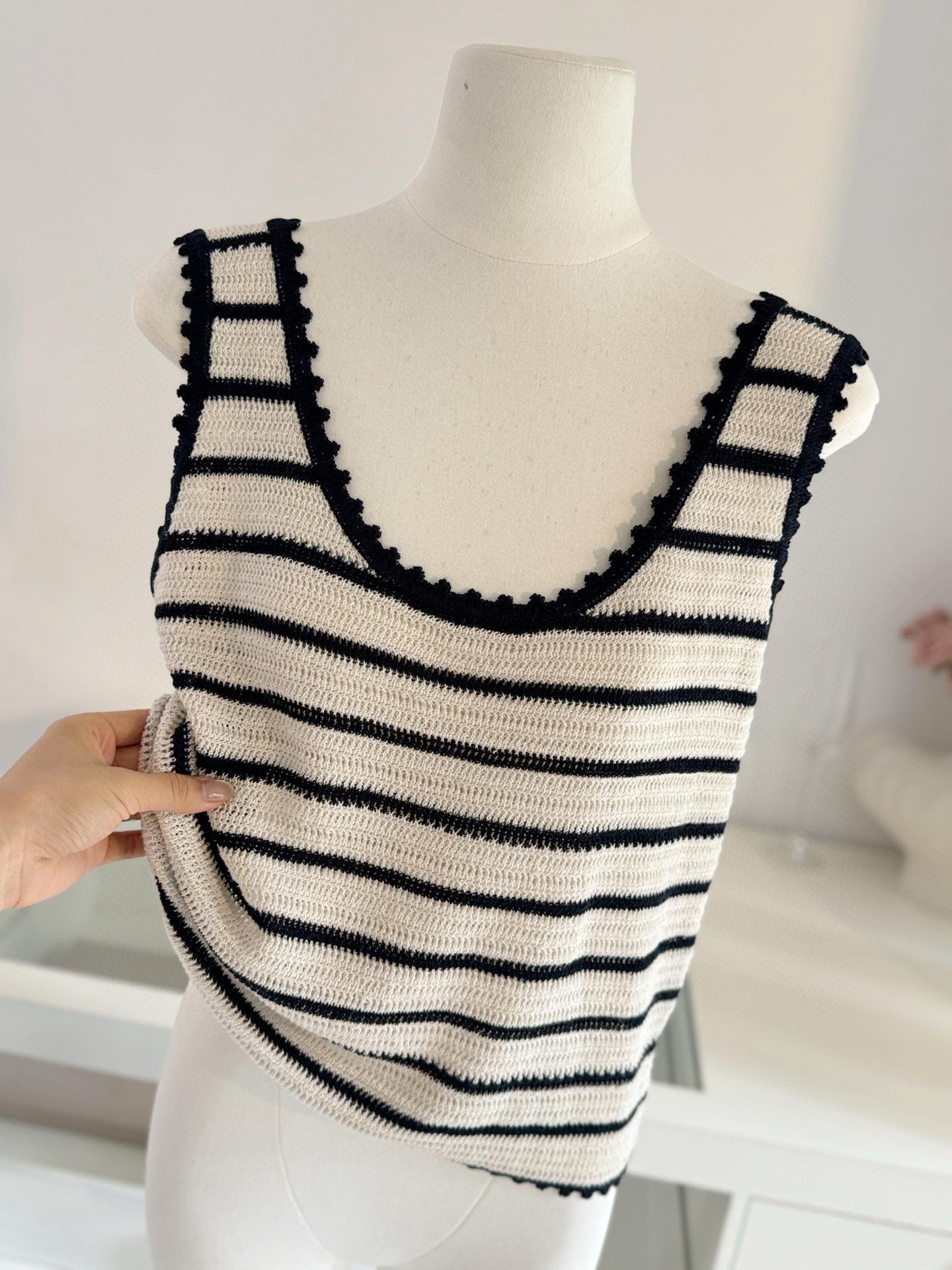 Blusa Top de Punto sin Mangas a Rayas Ligeras para Mujer Verano Nuevo Estilo