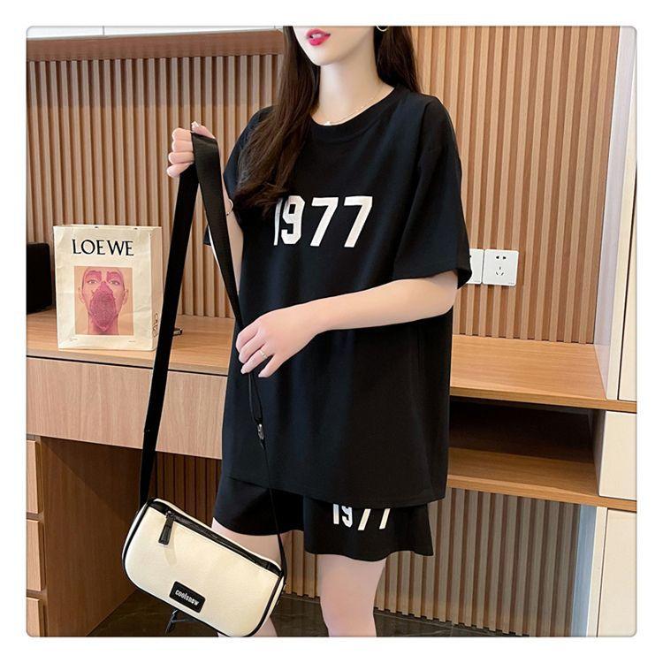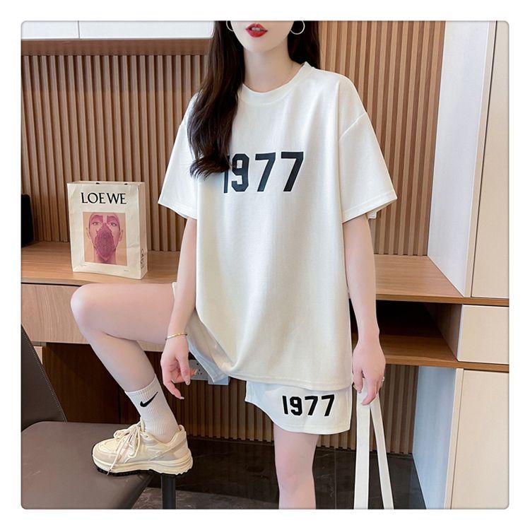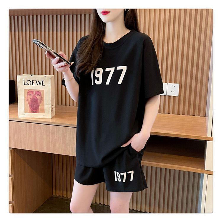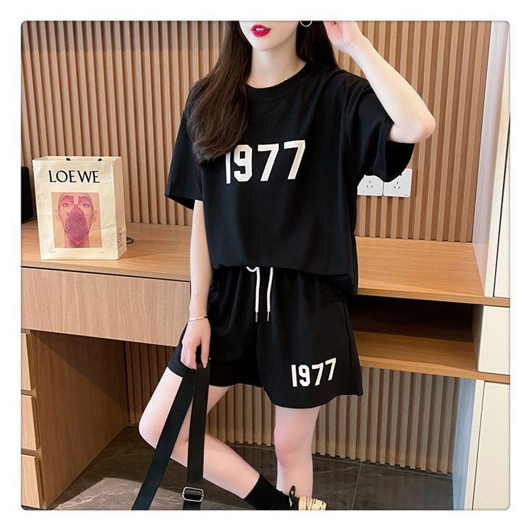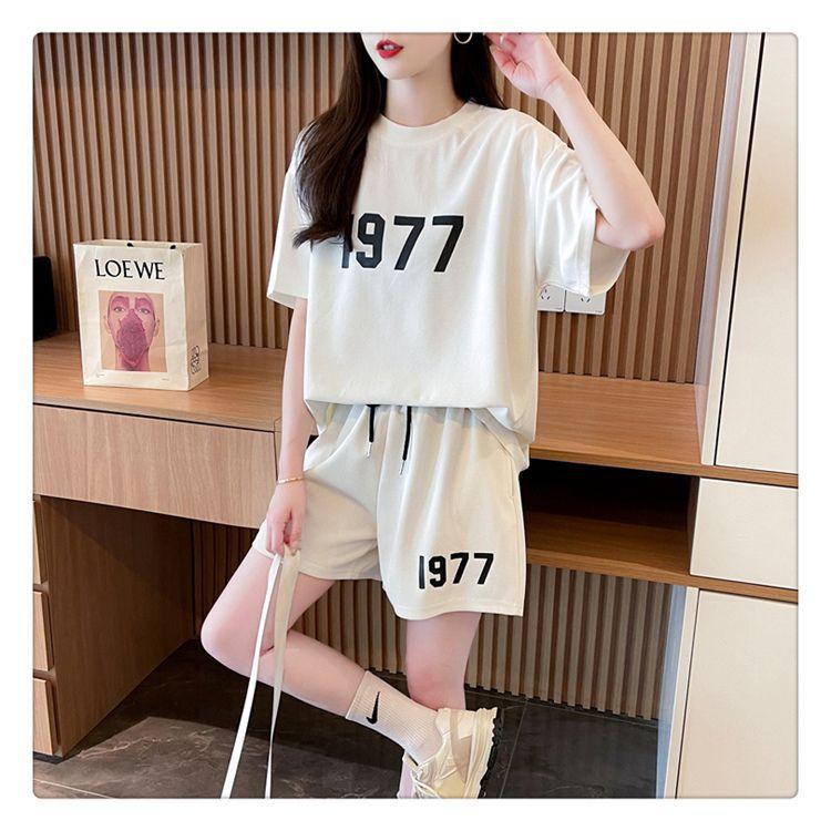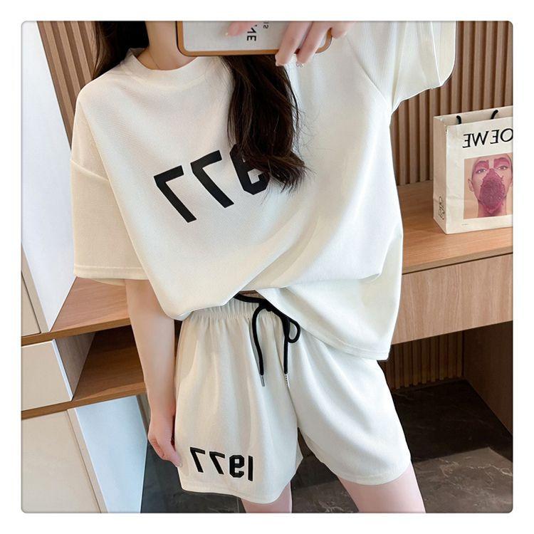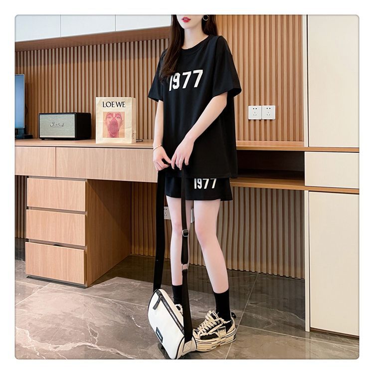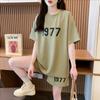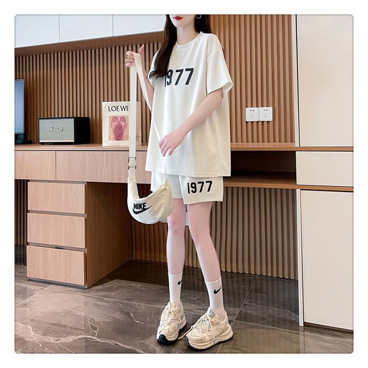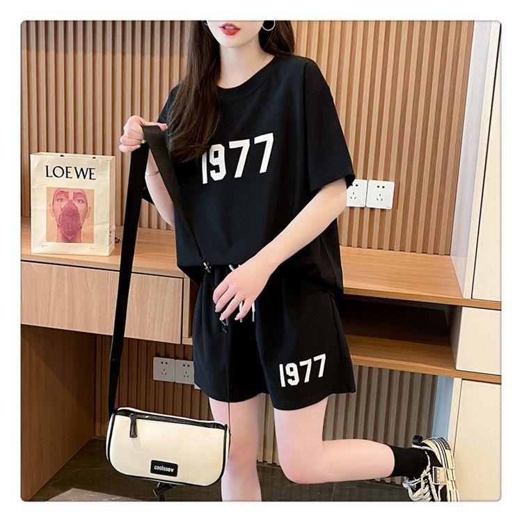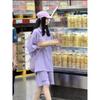 Traje de camiseta de algodón puro de estilo deportivo casual holgado para mujer 2025 Nuevo verano Versátil camiseta de manga corta shorts conjunto de dos piezas