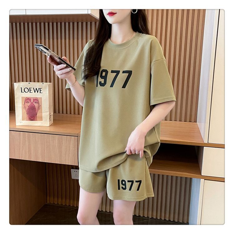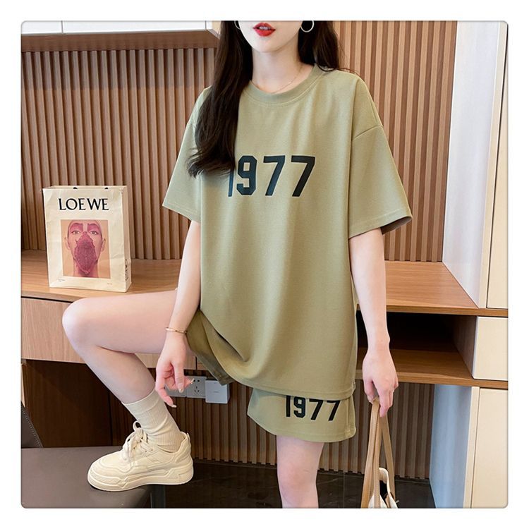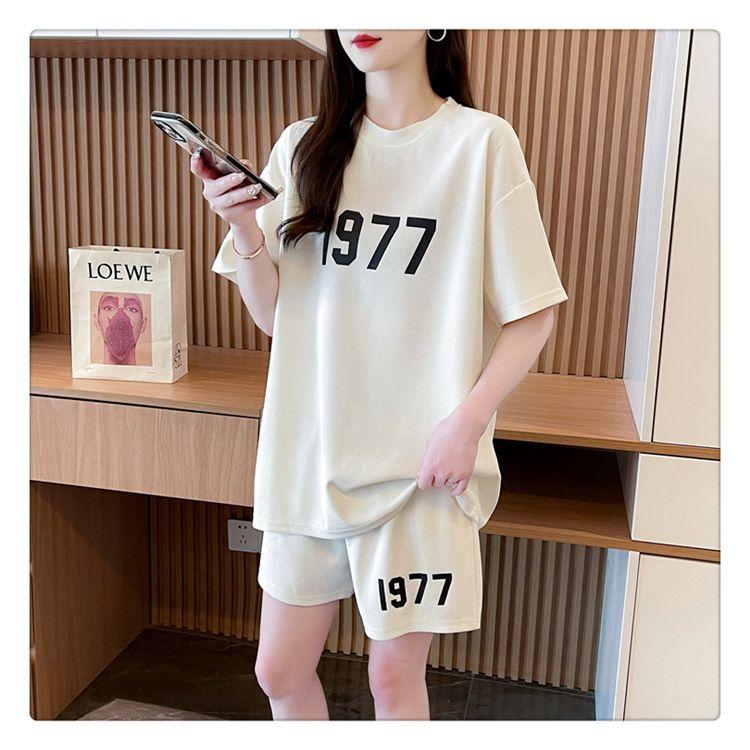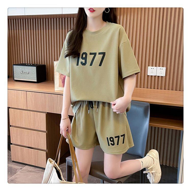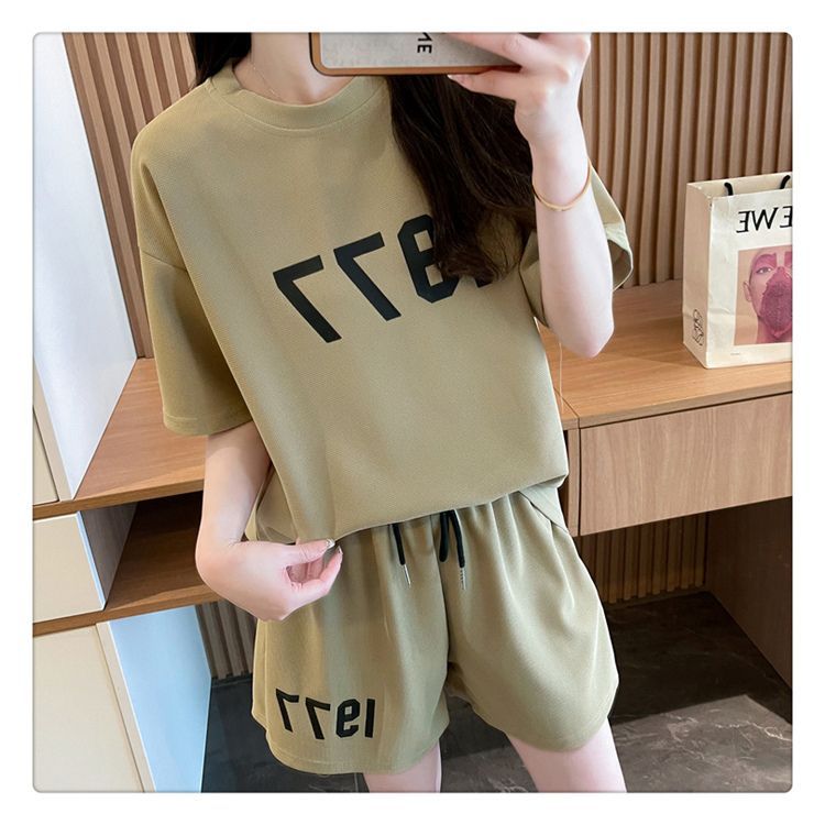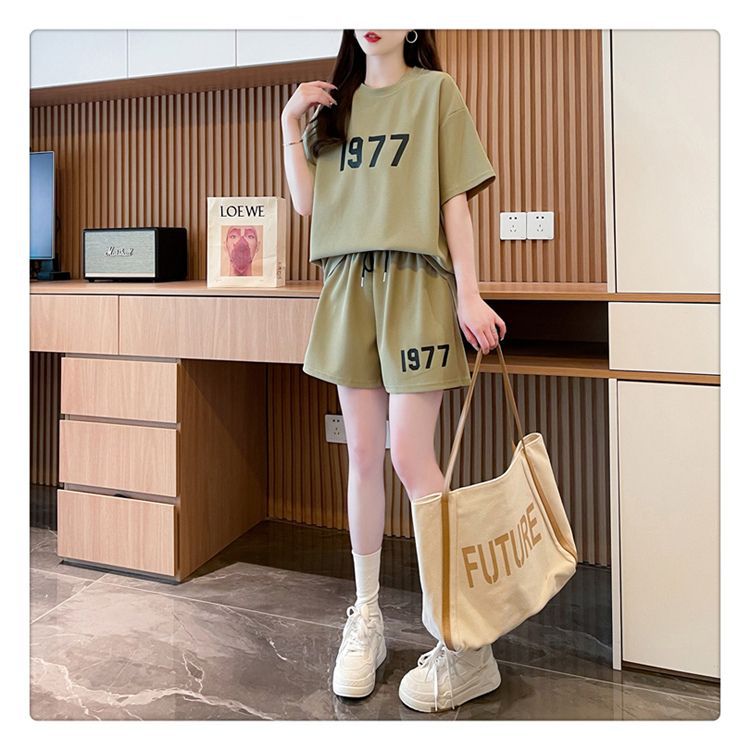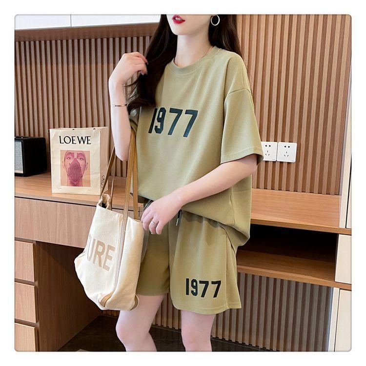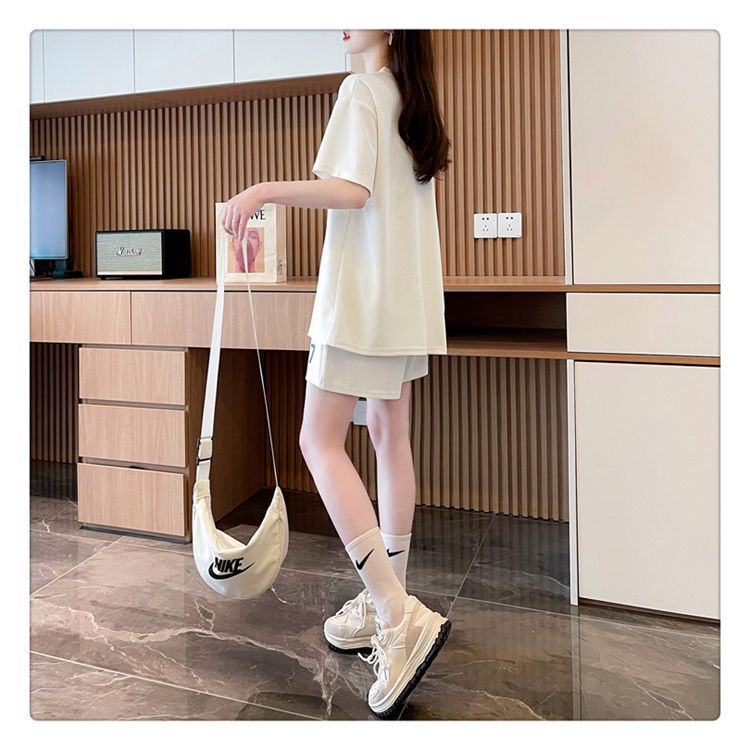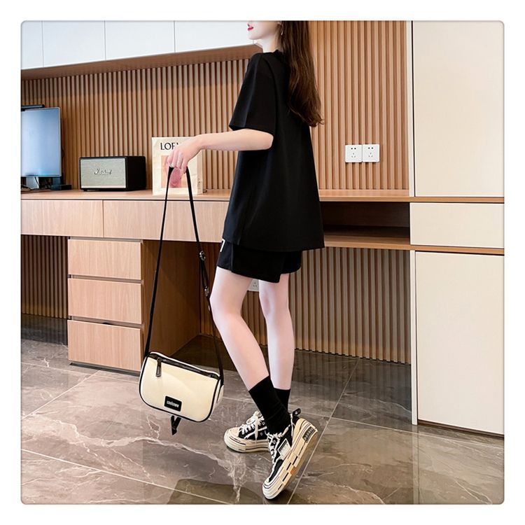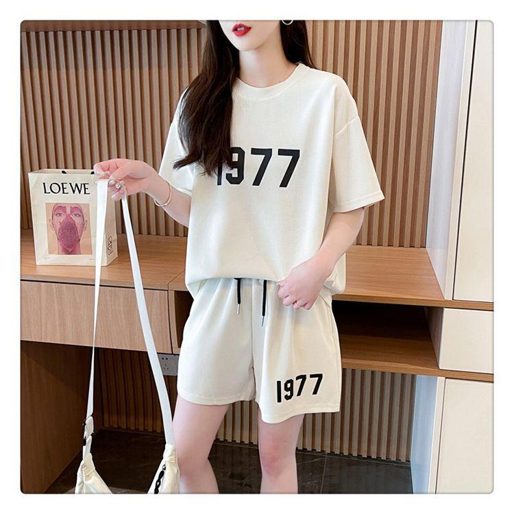 Traje de camiseta de algodón puro de estilo deportivo casual holgado para mujer 2025 Nuevo verano Versátil camiseta de manga corta shorts conjunto de dos piezas