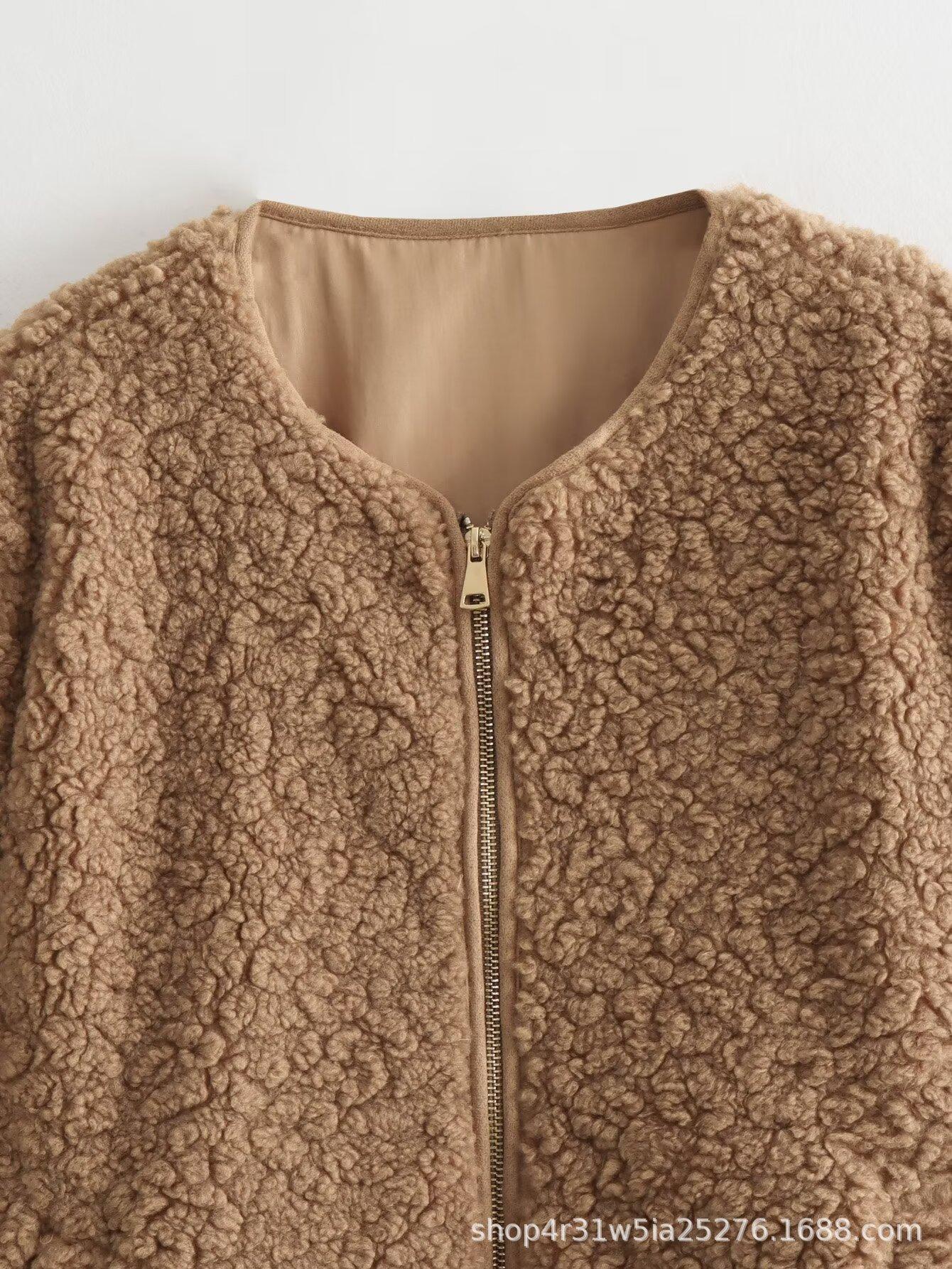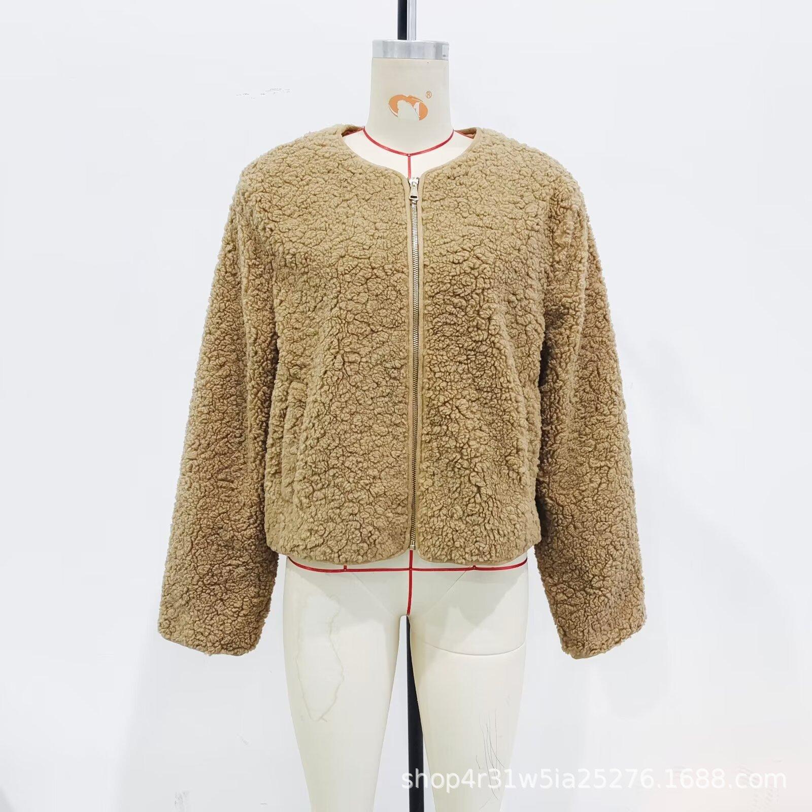 Estilo Europeo y Americano Amazon Venta al por Mayor 2024 Otoño e Invierno Nueva Chaqueta de Moda Corta Slim de Lana para Mujer
