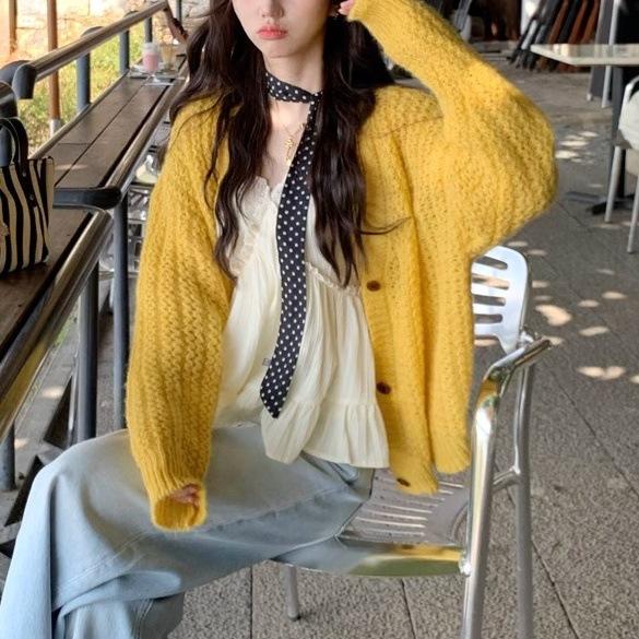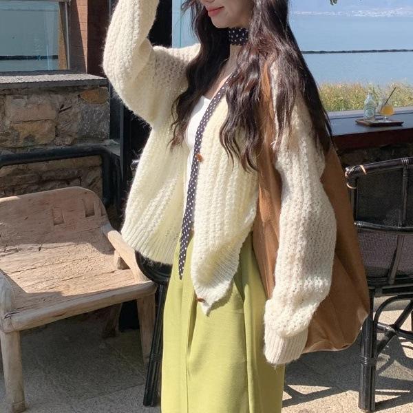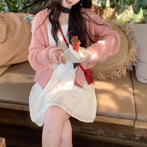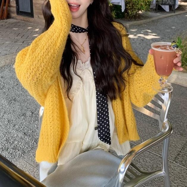 Cárdigan de Punto Calado Fino de Estilo Dulce Francés para Mujer Primavera y Otoño Nuevo Estilo Chaqueta de Moda Holgada y Ajustada Ropa Exterior
