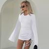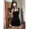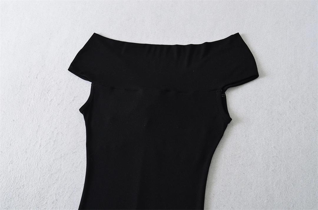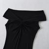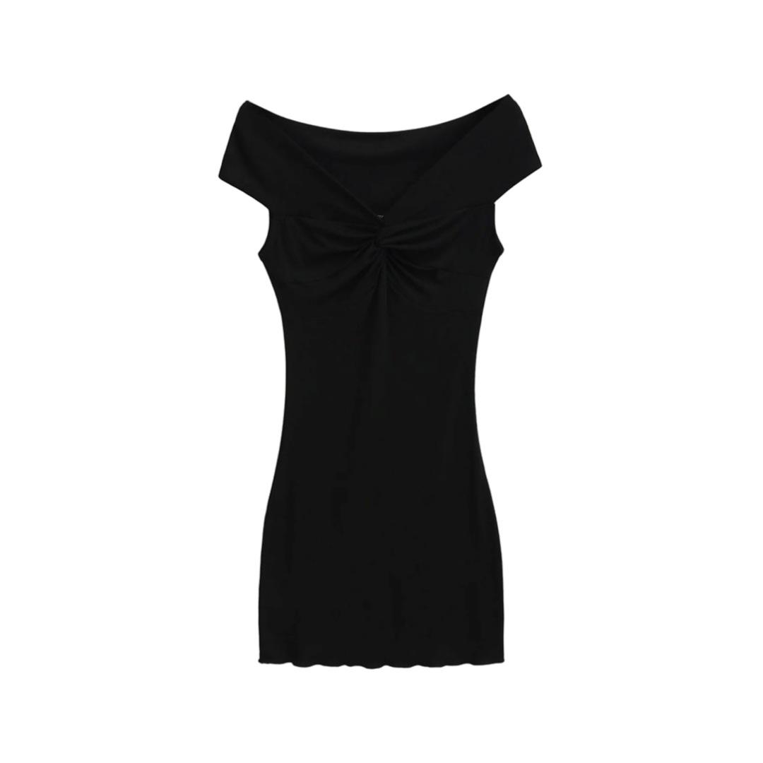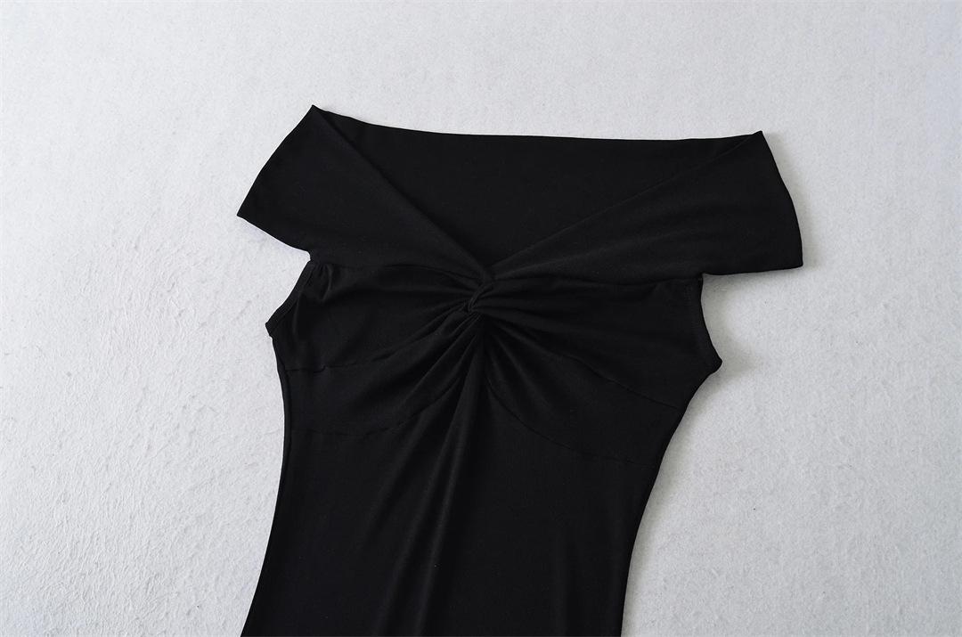 Vestido Sexy Europeo y Americano con Hombros Descubiertos y Torcido de Manga Corta para Mujer, Puro Lujurioso Sexy Ajustado con Falda Corta Ajustada a las Caderas Color Puro